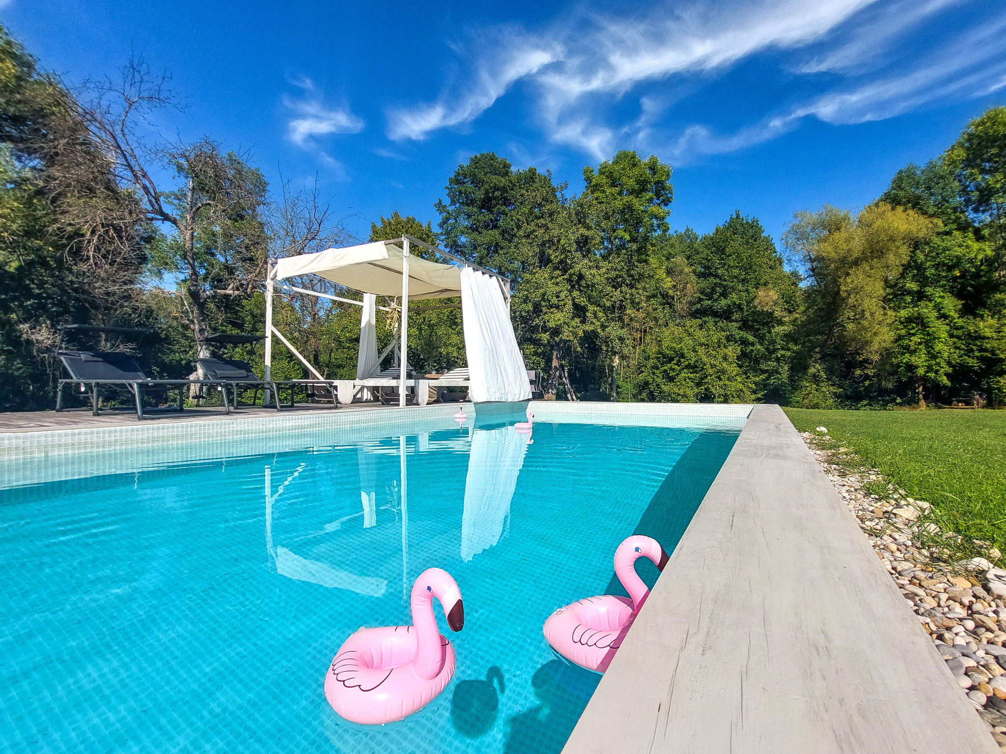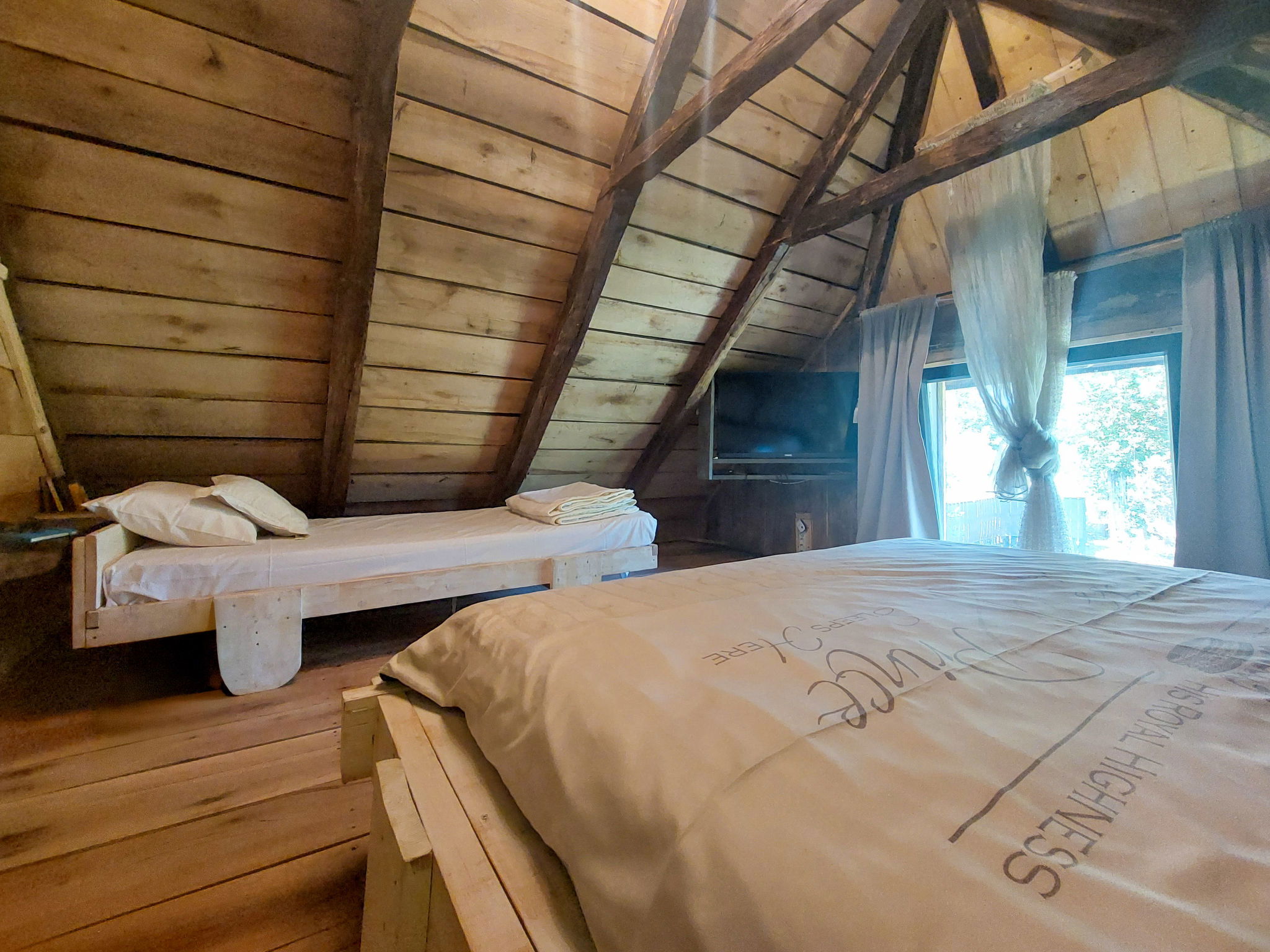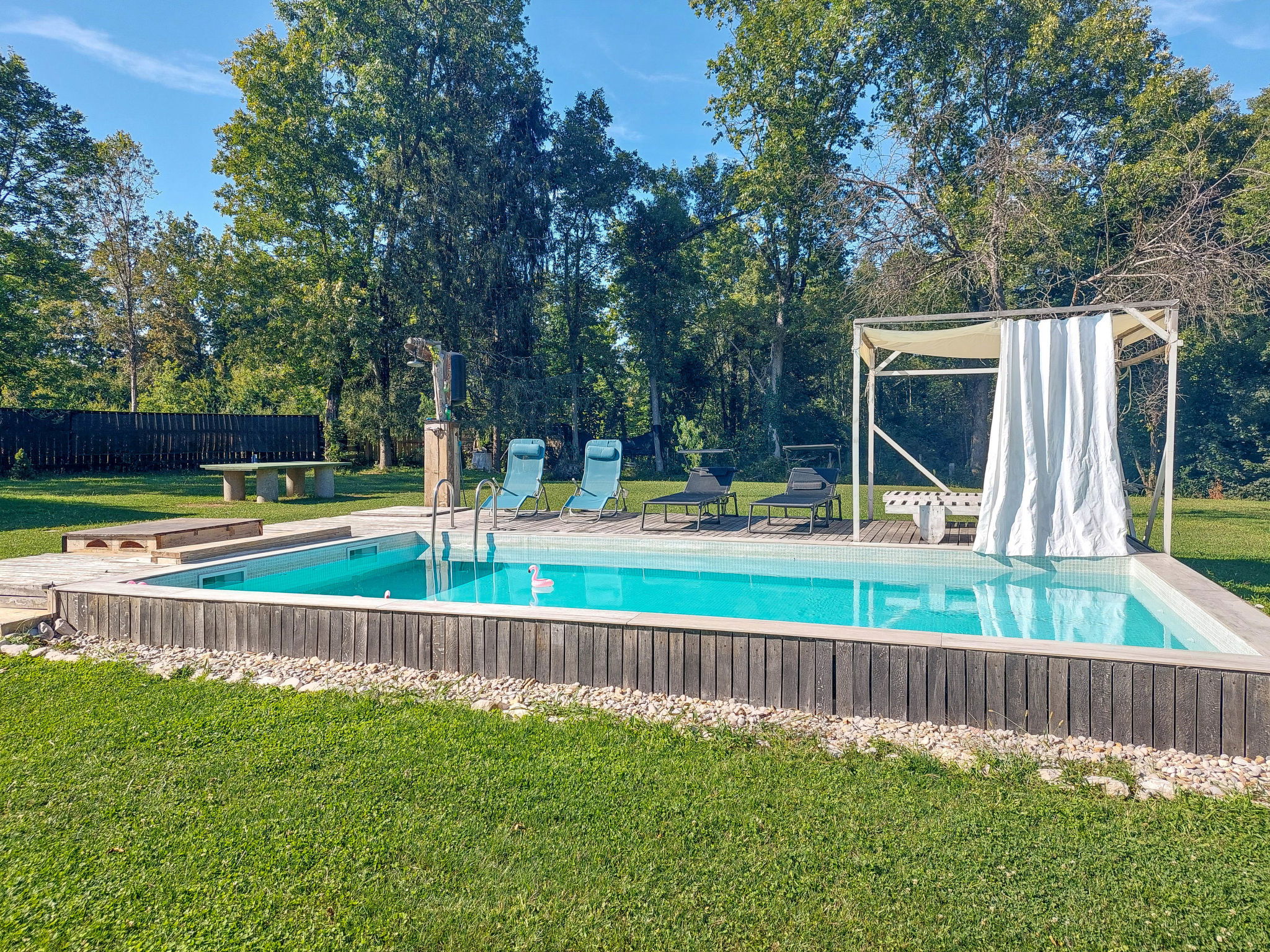 Cosy single-family house "Utinja", 2 storeys in 2024, surrounded by trees and meadows. In the hamlet Skakavac 14.5 km from the centre of Karlovac, 120 m from the sea, 12 km from the river, in the countryside. Private: property 8'000 m2, garden 2'000 m2 with wildlife garden and trees, swimming pool angular (7 x 4 m, depth 140 cm, seasonal availability: 01.May. - 01.Oct.) with internal staircase. Outdoor shower, table tennis, terrace (20 m2), garden furniture, barbecue. In the house: WiFi, sauna (extra). Billiard table, washing machine. Parking (for 4 cars) at the house on the premises. Grocery 950 m, supermarket 10 km, restaurant 1.5 km, bus stop 1 km. Nearby attractions: Rastoke Village 60 km, Baraćeve Caves, Kayaking on the River Mrežnica 55 km. Well-known lakes can easily be reached: Plitvička jezera 85 km. Hiking paths: Memorial Park Petrova Gora 45 km.