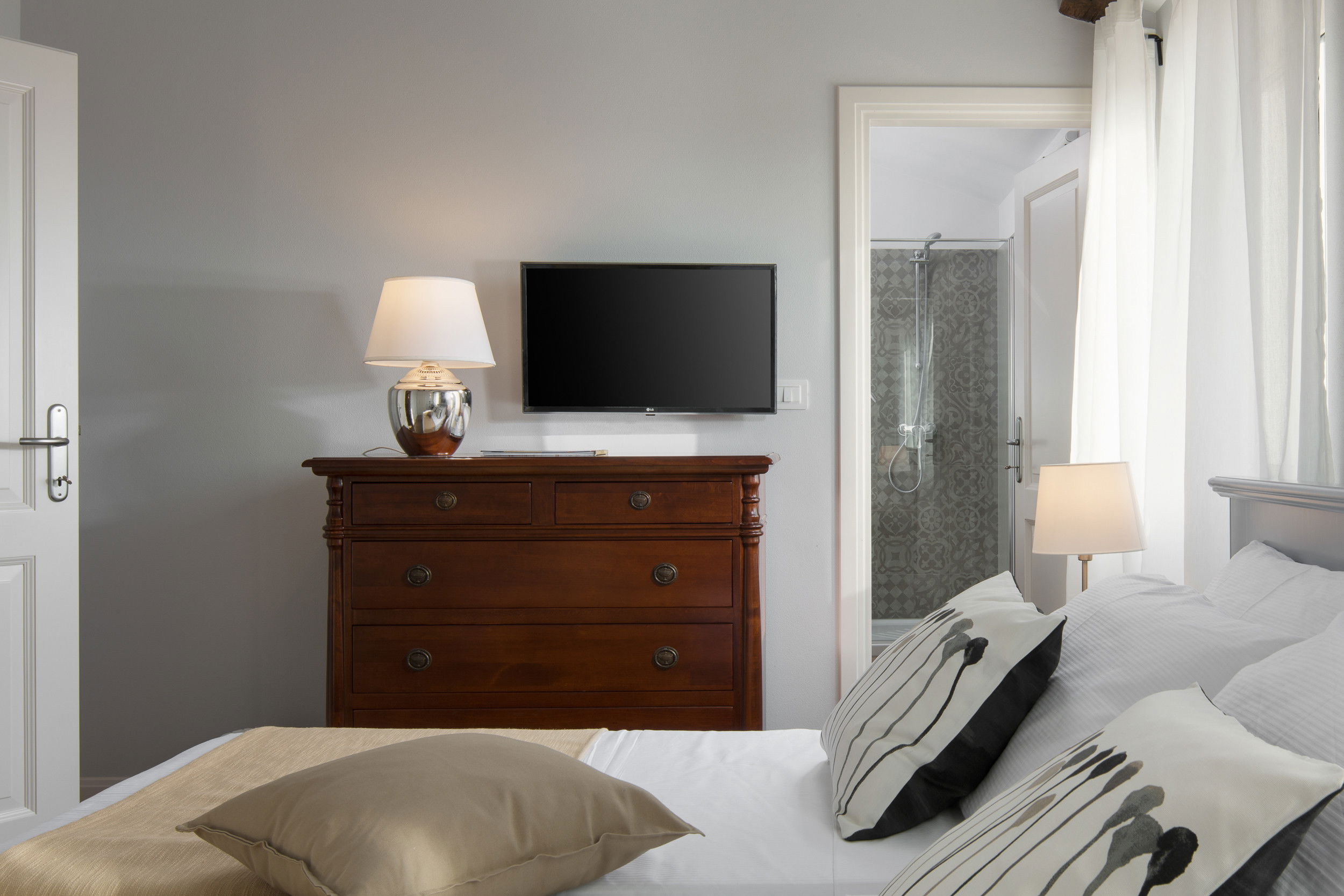 The wellness room offers relaxation for body and soul thanks to the jacuzzi (a hot tub for 4 people) and an infrared sauna, and there is another shower, two deck chairs and a coffee table. This room overlooks the outdoor terrace and pool, and also contains a TV.
