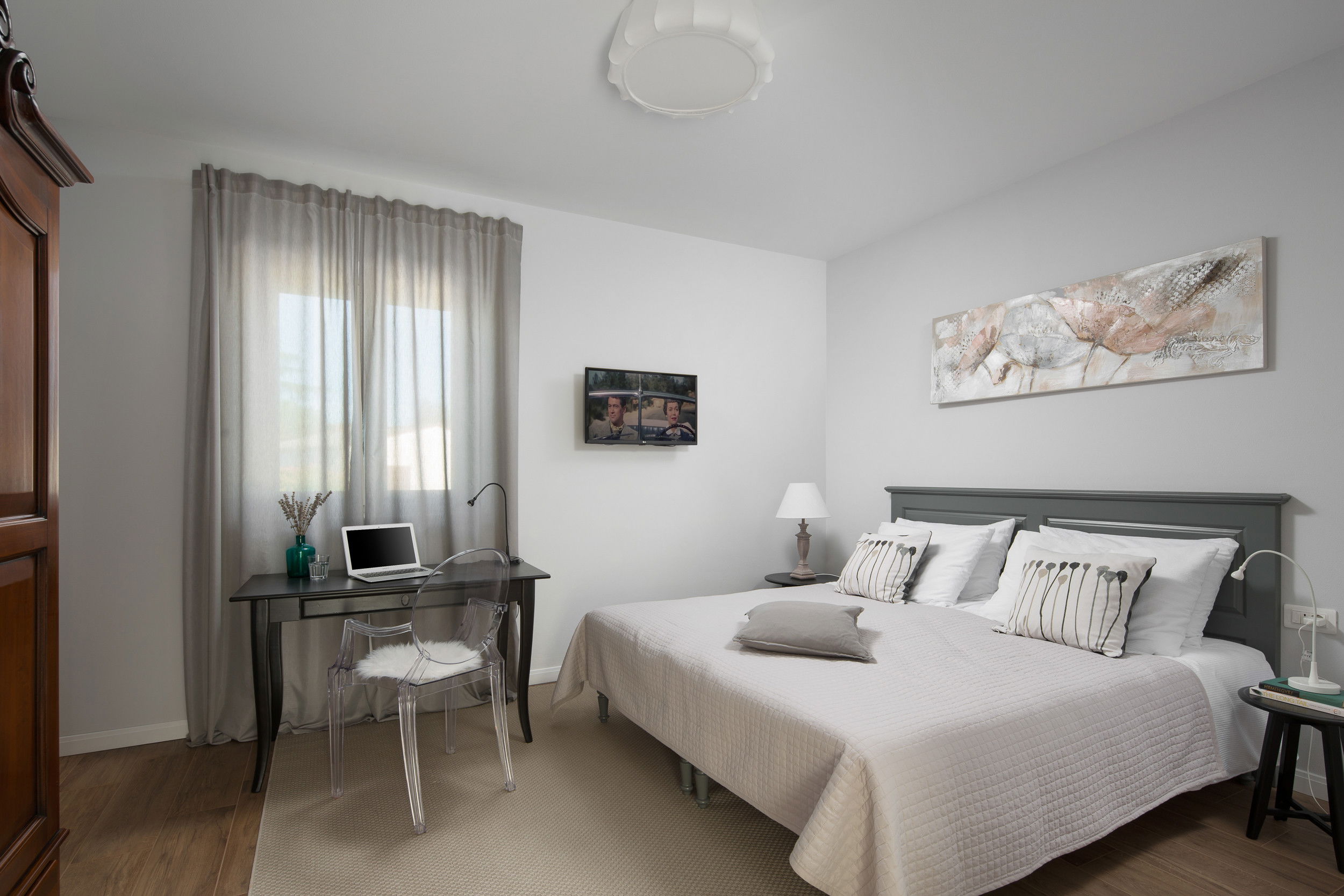 Villa Ovi will provide you with everything you need to spend a peaceful and enjoyable vacation with family and friends. It offers accommodation for a maximum of 8 people, and you have 350 m2 of living space at your disposal. The villa is set on a spacious 3.300 m² plot, fully fenced for complete privacy. Nestled in a peaceful natural setting, it offers the perfect escape from the hustle and bustle of the city. Surrounded by greenery, the villa provides a sense of freedom and harmony with nature, making it an ideal place to relax and enjoy tranquility. In the villa you will be comfortably accommodated in 4 bedrooms with double beds and en-suite bathrooms. Three bathrooms are with shower and in the fourth upper master room that opens onto the terrace, there is a bathroom with a bathtub and a sliding glass door.