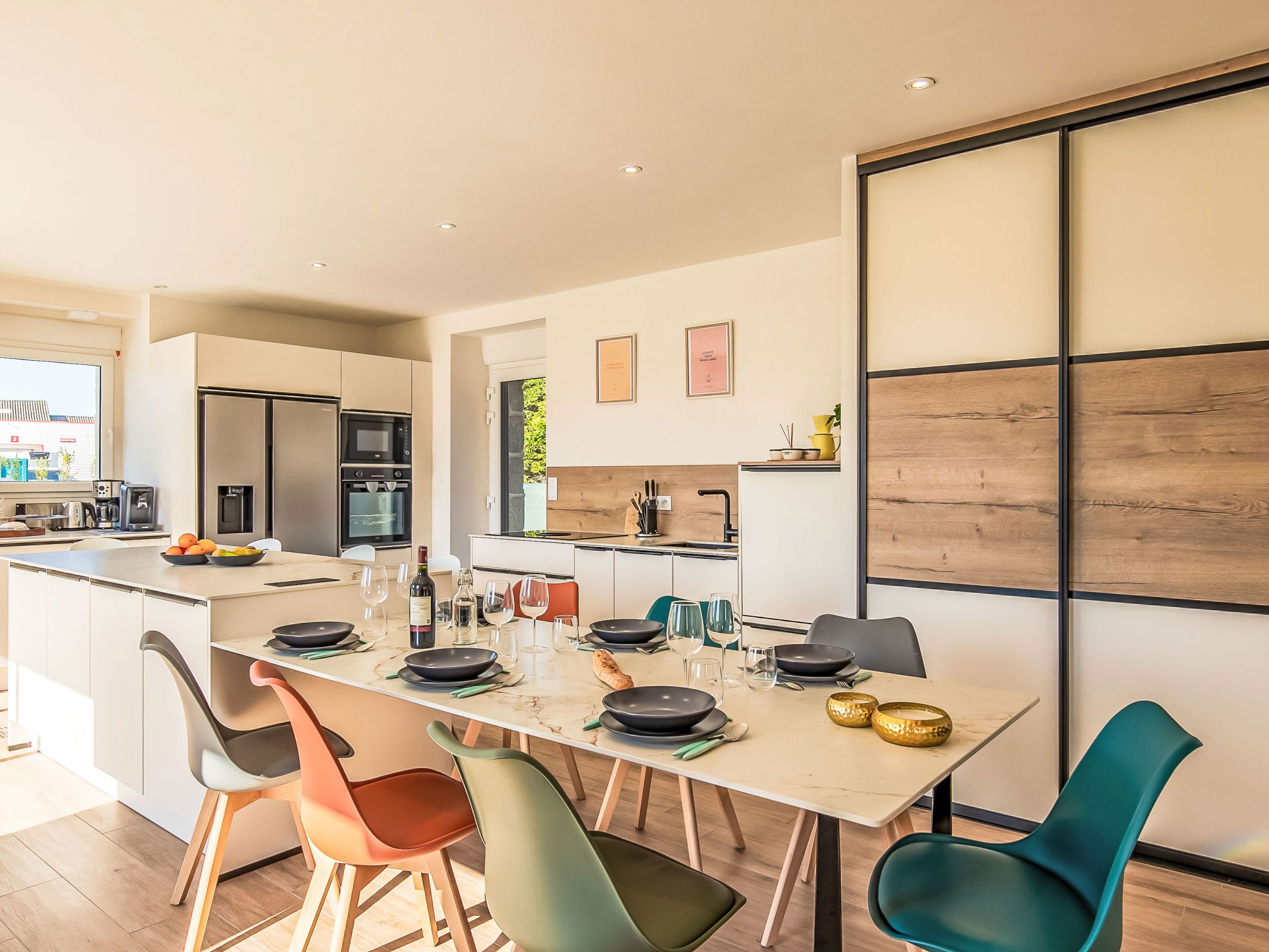 "La Maison de Parrain", 6-room house 130 m2 on 2 levels. Spacious and bright, very comfortable and tasteful furnishings: large living room 35 m2 with TV (flat screen). Exit to the garden, to the terrace. 1 large room 16 m2 with shower and TV (flat screen). Exit to the terrace, to the swimming pool. Large, open kitchen 35 m2 (oven, dishwasher, 4 induction hot plates, toaster, kettle, microwave, freezer, electric coffee machine, cooking island) with dining table. Exit to the terrace. Sep. WC. Upper floor: 1 room 15 m2, with sloping ceilings with 2 beds (90 cm, length 200 cm), TV (flat screen). 1 room 16 m2 with 1 french bed (160 cm, length 200 cm) with corner bath and TV. Shower, sep. WC, double hand-basin. Facilities: washing machine, dryer, iron, children's high chair, baby cot for up to 2 year olds, hair dryer, baby changing unit. Internet (WiFi, free). Please note: non-smoking house. Maximum 1 small pet/ dog allowed. Smoke alarm. Offer by a private individual according to Art. 155, IV of CGI.