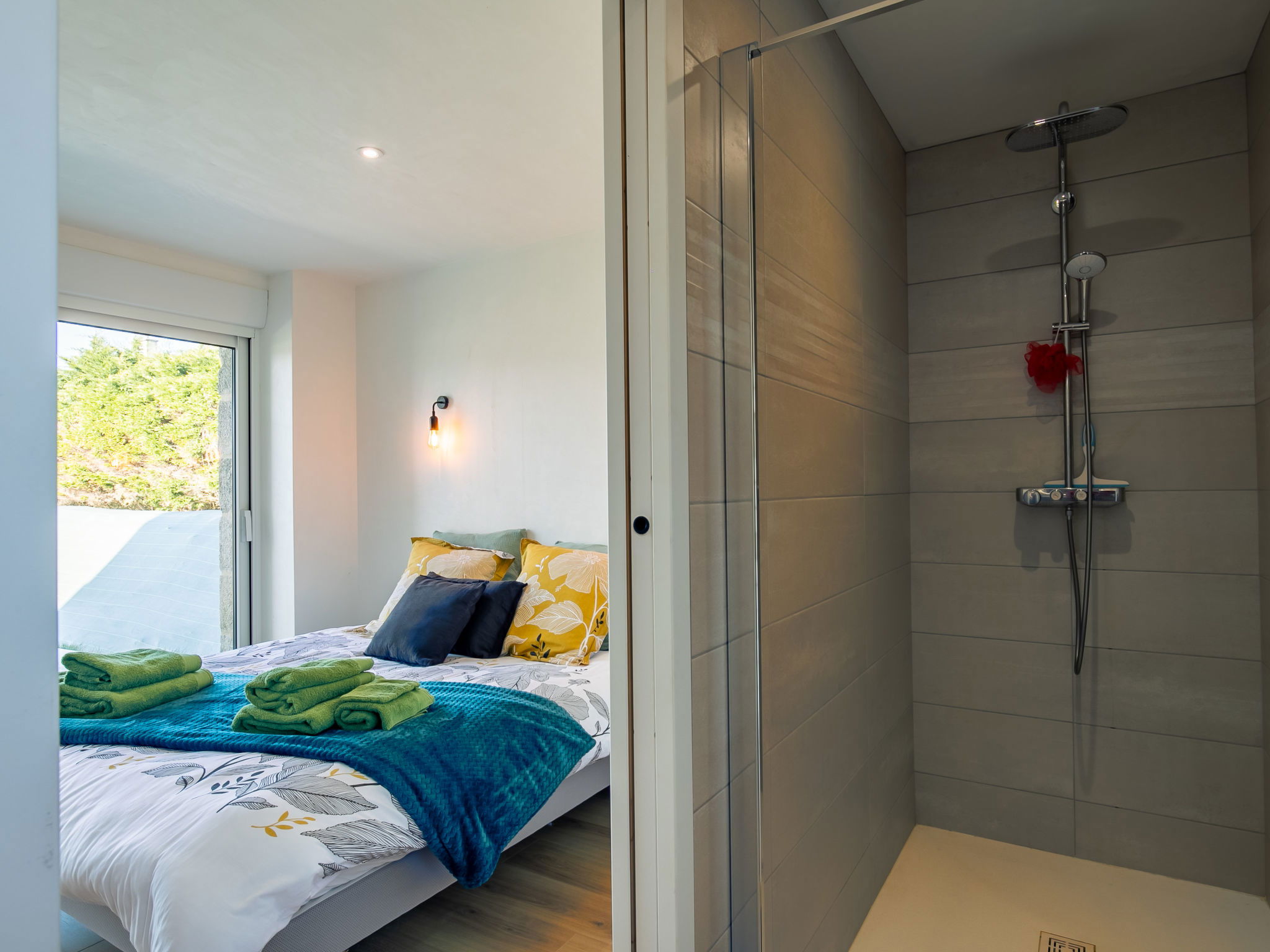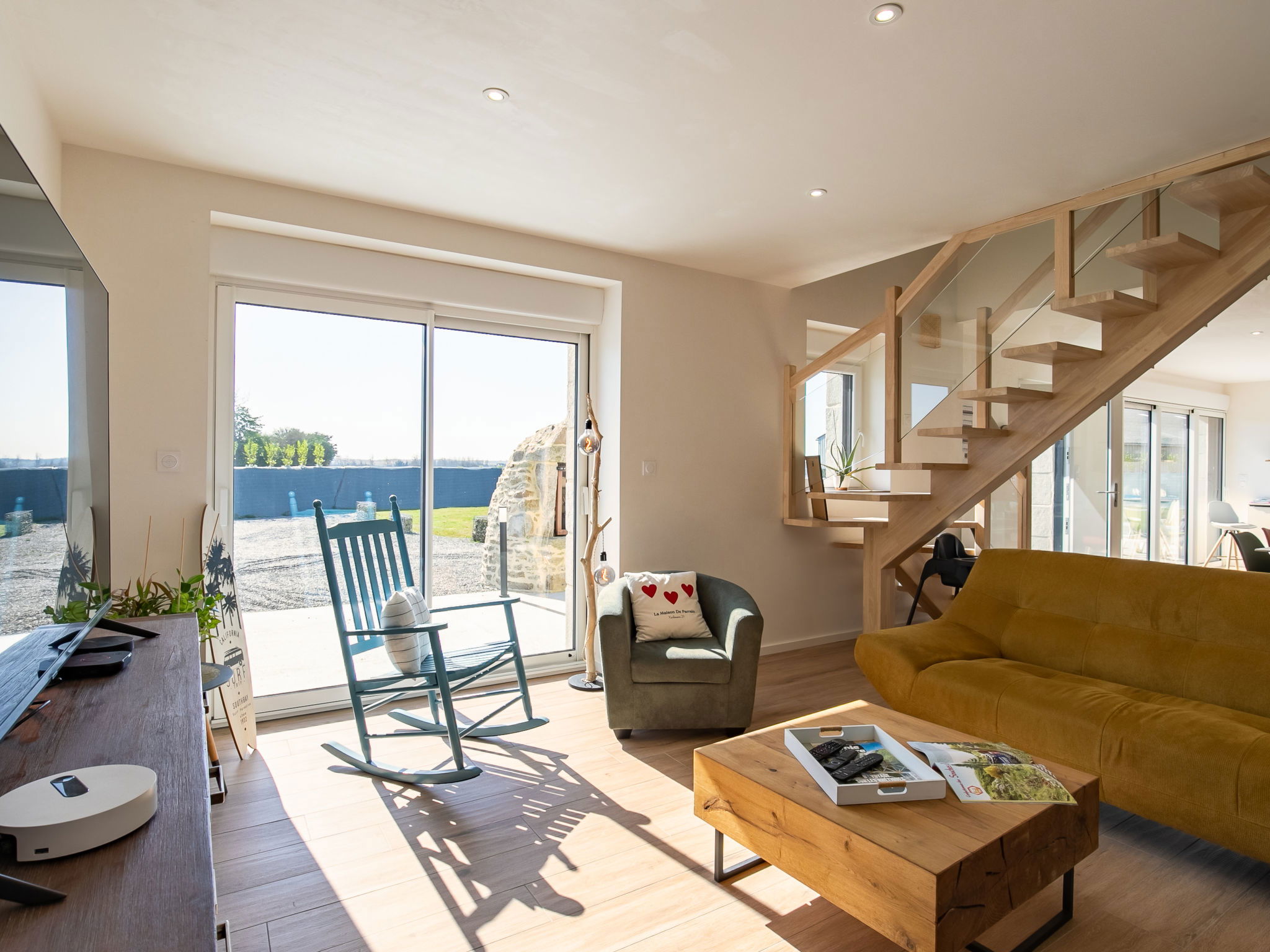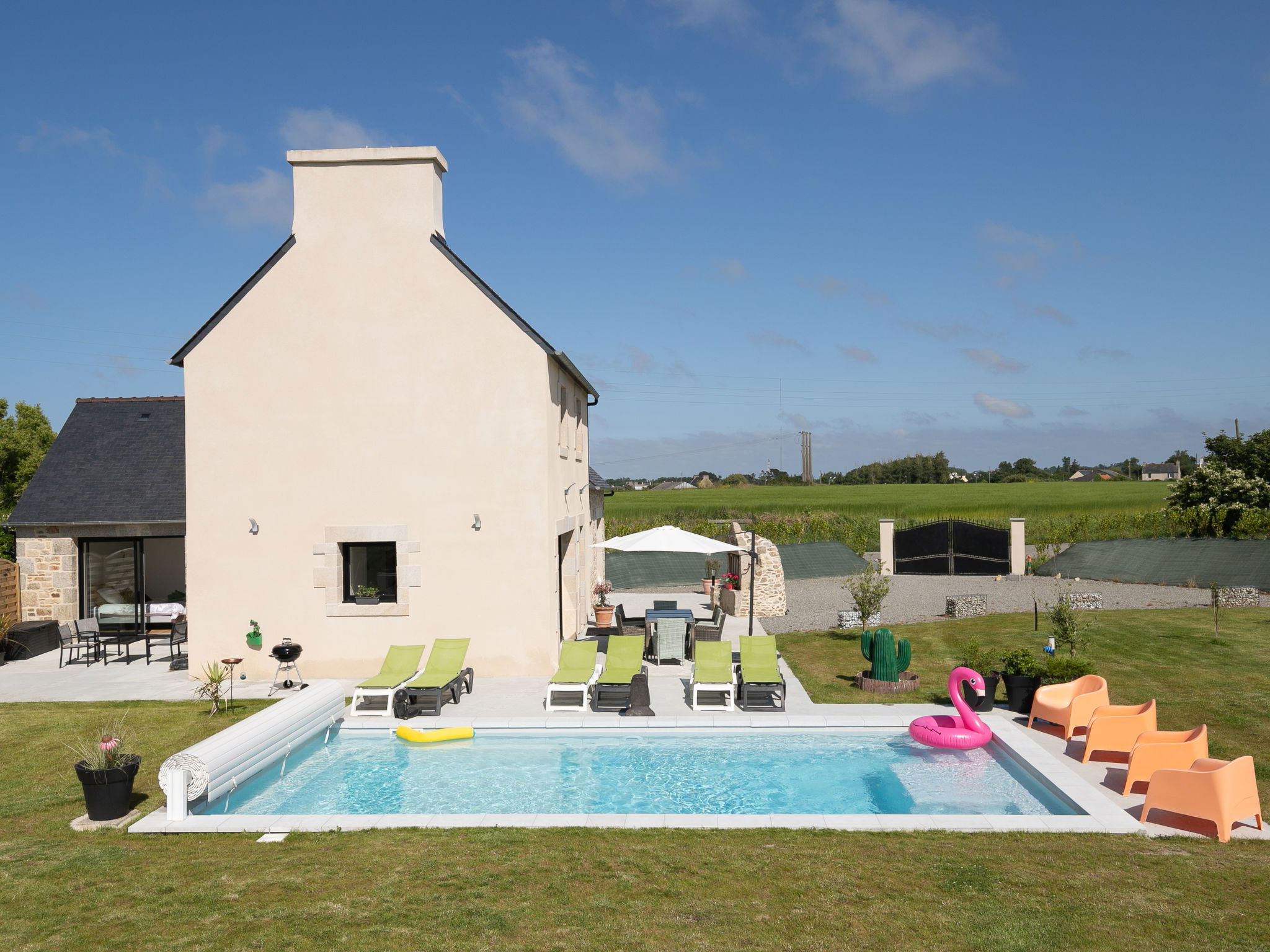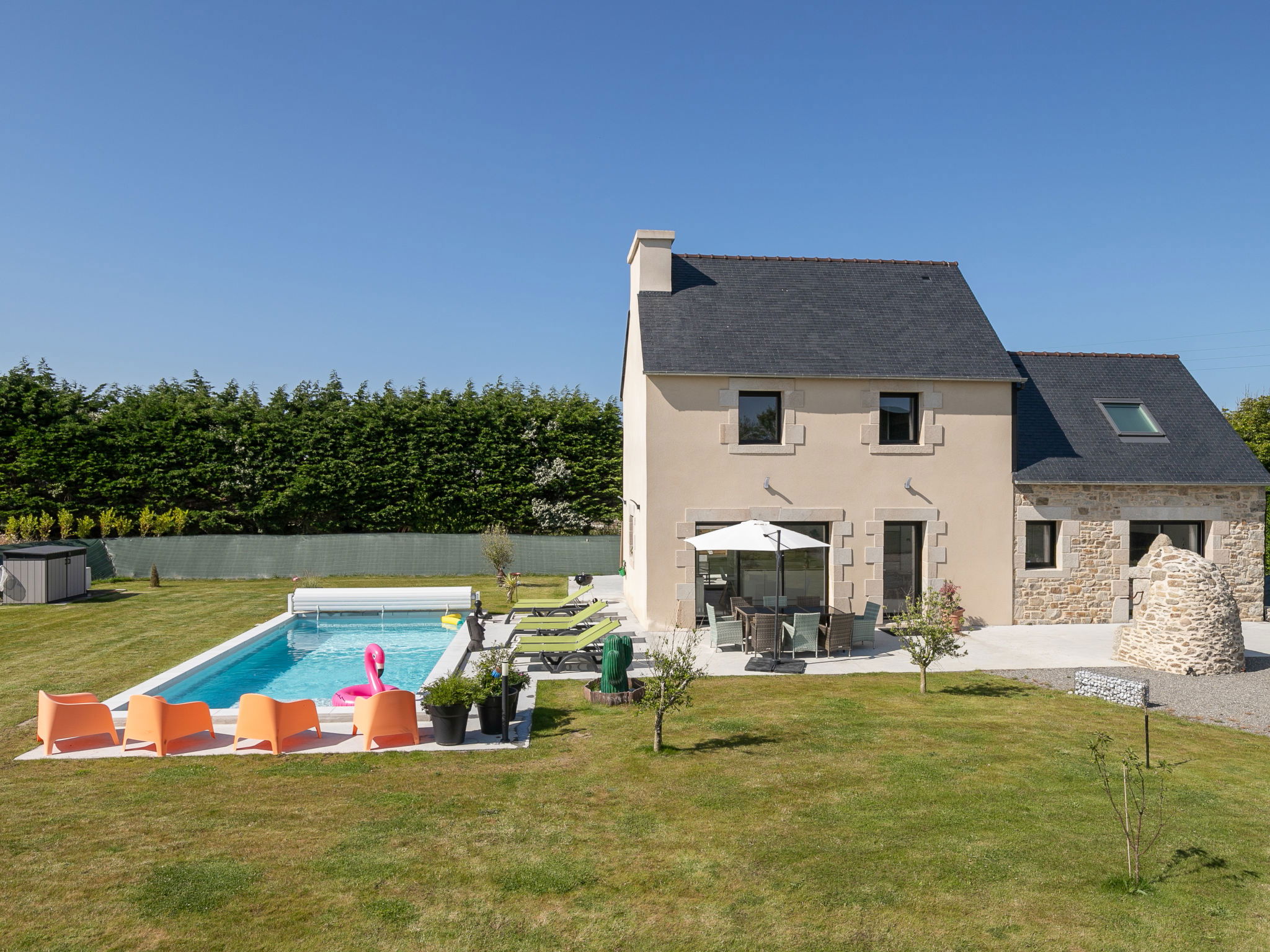 Very beautiful, comfortable single-family house "La Maison de Parrain", built in 2024. In the district of Kerliver 2.5 km from the centre of Kerlouan, 2.5 km from the centre of Guisseny, 1.8 km from the sea, 1.8 km from the beach. Private: property 800 m2, well-kept garden with lawn and wildlife garden, swimming pool angular, heated, with privacy, secured (4 x 9 m, 21 m2, depth 140 cm, seasonal availability: 01.May. and 30.Sep.) with shutter cover. Terrace (95 m2), garden furniture, barbecue, pool maintenance by the owner/gardener. Parking (for 2 cars) on the premises. Shop 2.5 km, grocery 2.5 km, supermarket 2.1 km, shopping centre 13 km, restaurant 2.5 km, bar 2.5 km, bakery 2.5 km, bus stop "Le Petit Paris" 640 m, sandy beach "Plage de Boutrouilles" 1.8 km, thermal baths "Thalasso Roscoff" 40 km. Sports harbour 6 km, golf course (18 hole) 40 km, surf school 2 km, sailing school 6 km, indoor tennis centre 3.2 km, walking paths from the house 1.5 km. Nearby attractions: Meneham, ancien village des pêcheurs 5.5 km, Dunes de Keremma, réserve ornithologique 10 km, Landéda, Pays des Abers 20 km, Le Conquet, Pointe de St.Mathieu 55 km, Brest, Oceanopolis 35 km, Roscoff, Jardin exotique, Île de Batz 40 km.