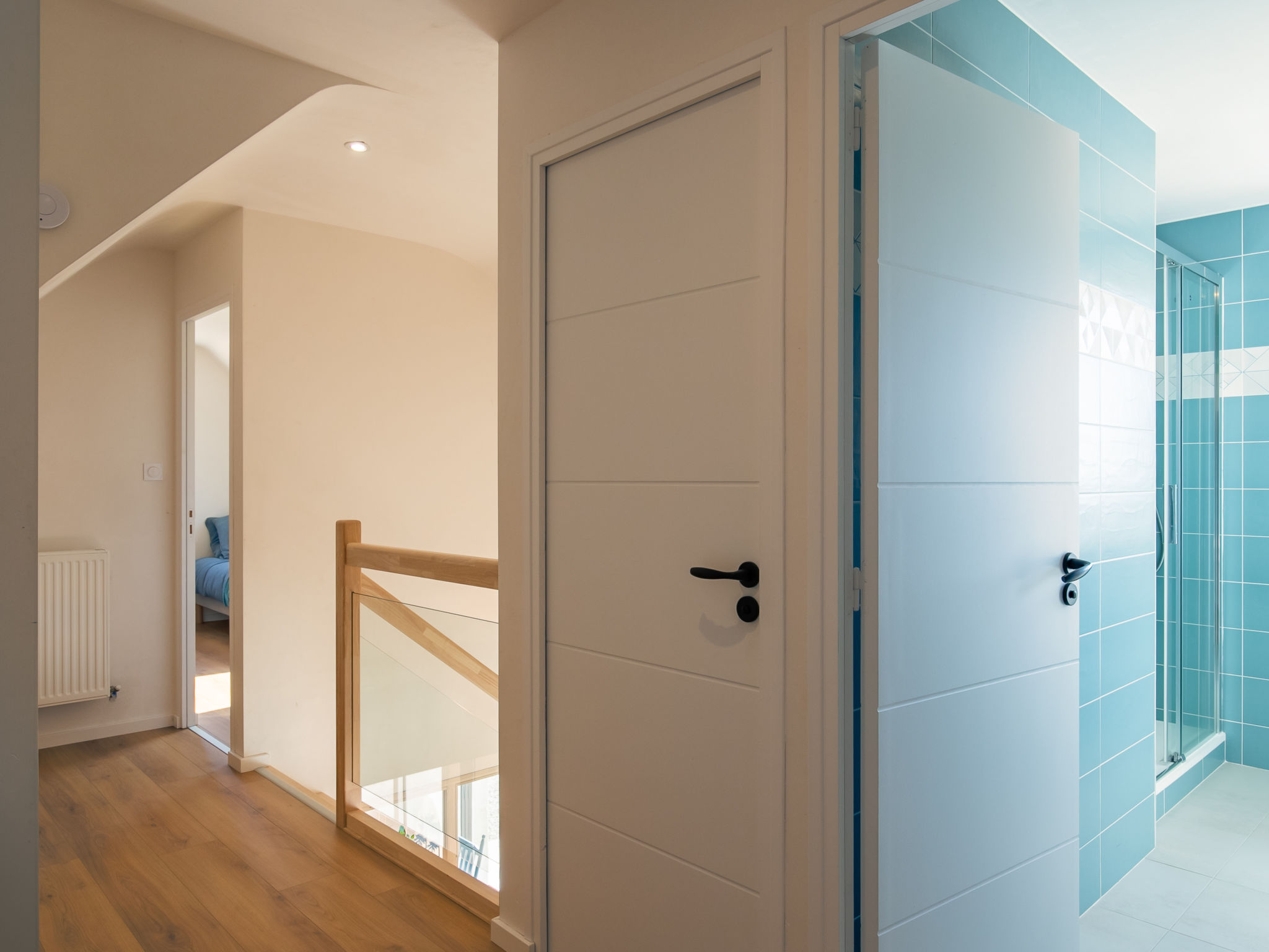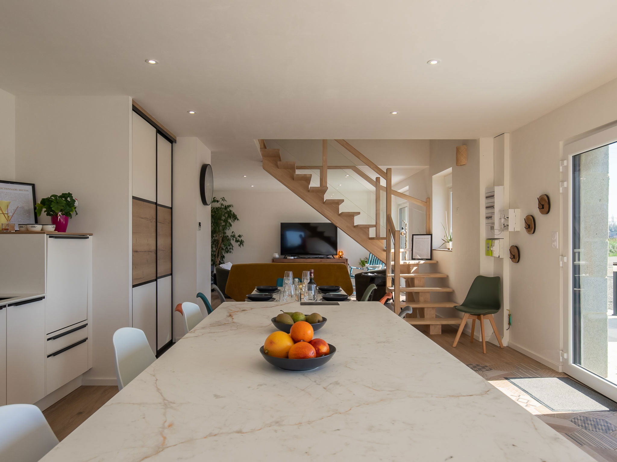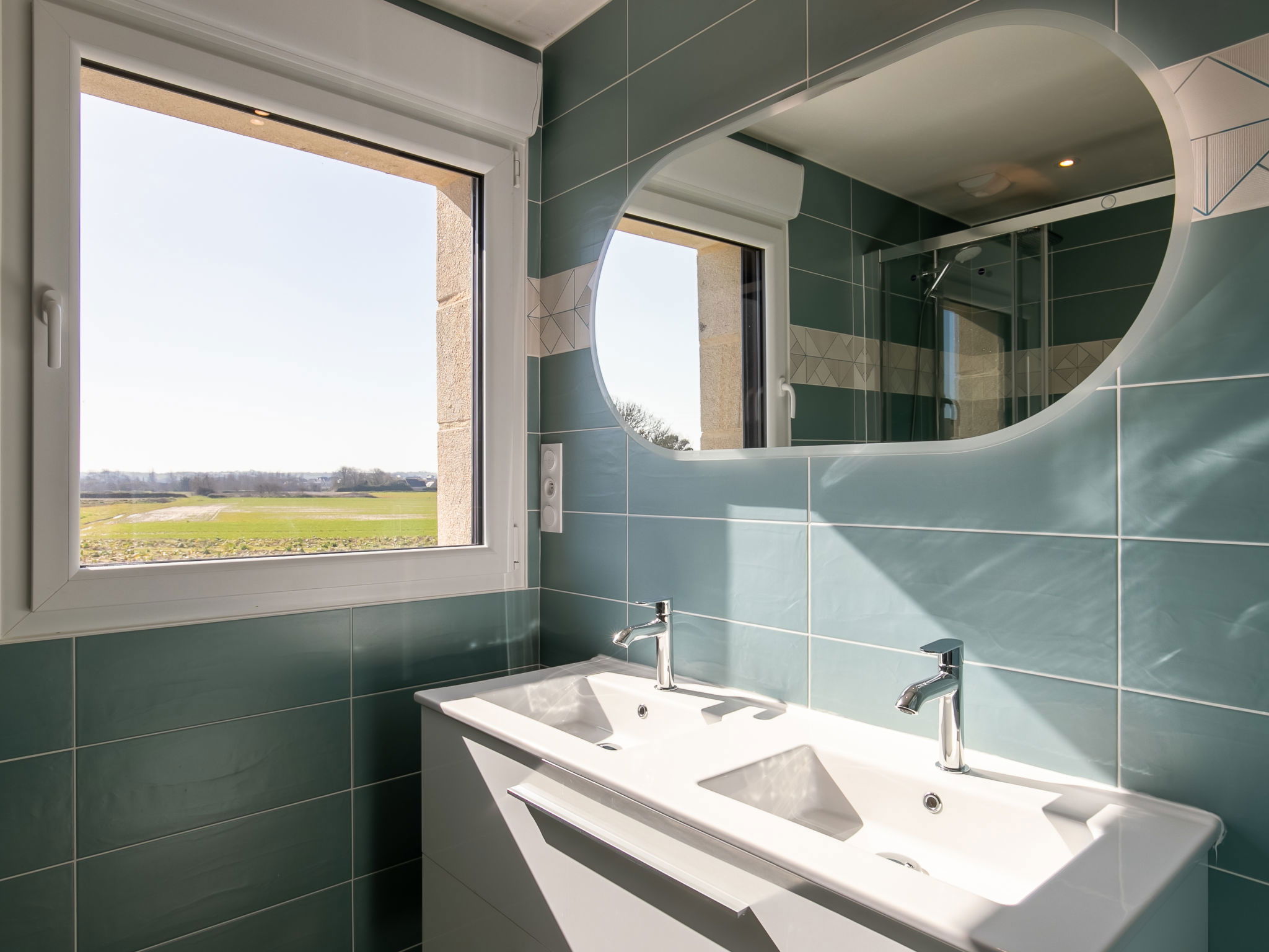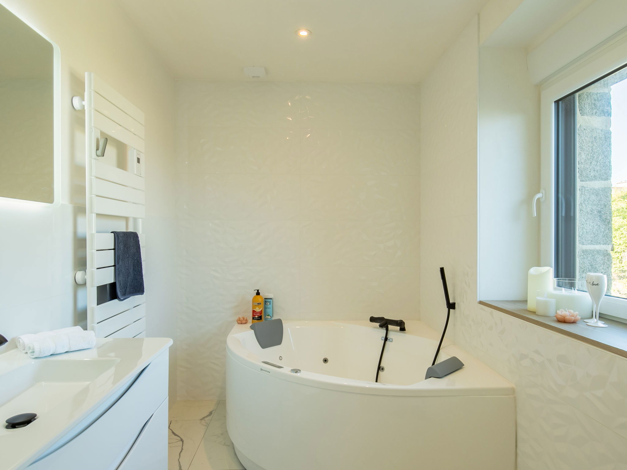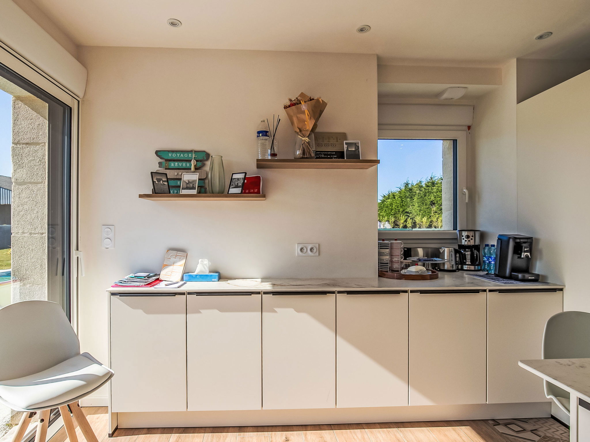 Very beautiful, comfortable single-family house "La Maison de Parrain", built in 2024. In the district of Kerliver 2.5 km from the centre of Kerlouan, 2.5 km from the centre of Guisseny, 1.8 km from the sea, 1.8 km from the beach. Private: property 800 m2, well-kept garden with lawn and wildlife garden, swimming pool angular, heated, with privacy, secured (4 x 9 m, 21 m2, depth 140 cm, seasonal availability: 01.May. and 30.Sep.) with shutter cover. Terrace (95 m2), garden furniture, barbecue, pool maintenance by the owner/gardener. Parking (for 2 cars) on the premises. Shop 2.5 km, grocery 2.5 km, supermarket 2.1 km, shopping centre 13 km, restaurant 2.5 km, bar 2.5 km, bakery 2.5 km, bus stop "Le Petit Paris" 640 m, sandy beach "Plage de Boutrouilles" 1.8 km, thermal baths "Thalasso Roscoff" 40 km. Sports harbour 6 km, golf course (18 hole) 40 km, surf school 2 km, sailing school 6 km, indoor tennis centre 3.2 km, walking paths from the house 1.5 km. Nearby attractions: Meneham, ancien village des pêcheurs 5.5 km, Dunes de Keremma, réserve ornithologique 10 km, Landéda, Pays des Abers 20 km, Le Conquet, Pointe de St.Mathieu 55 km, Brest, Oceanopolis 35 km, Roscoff, Jardin exotique, Île de Batz 40 km.