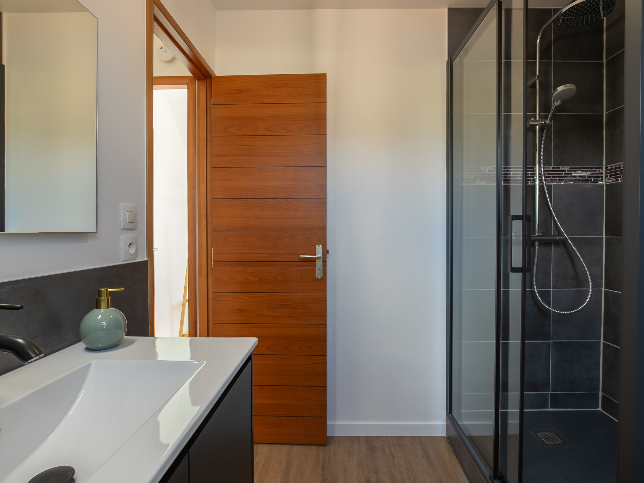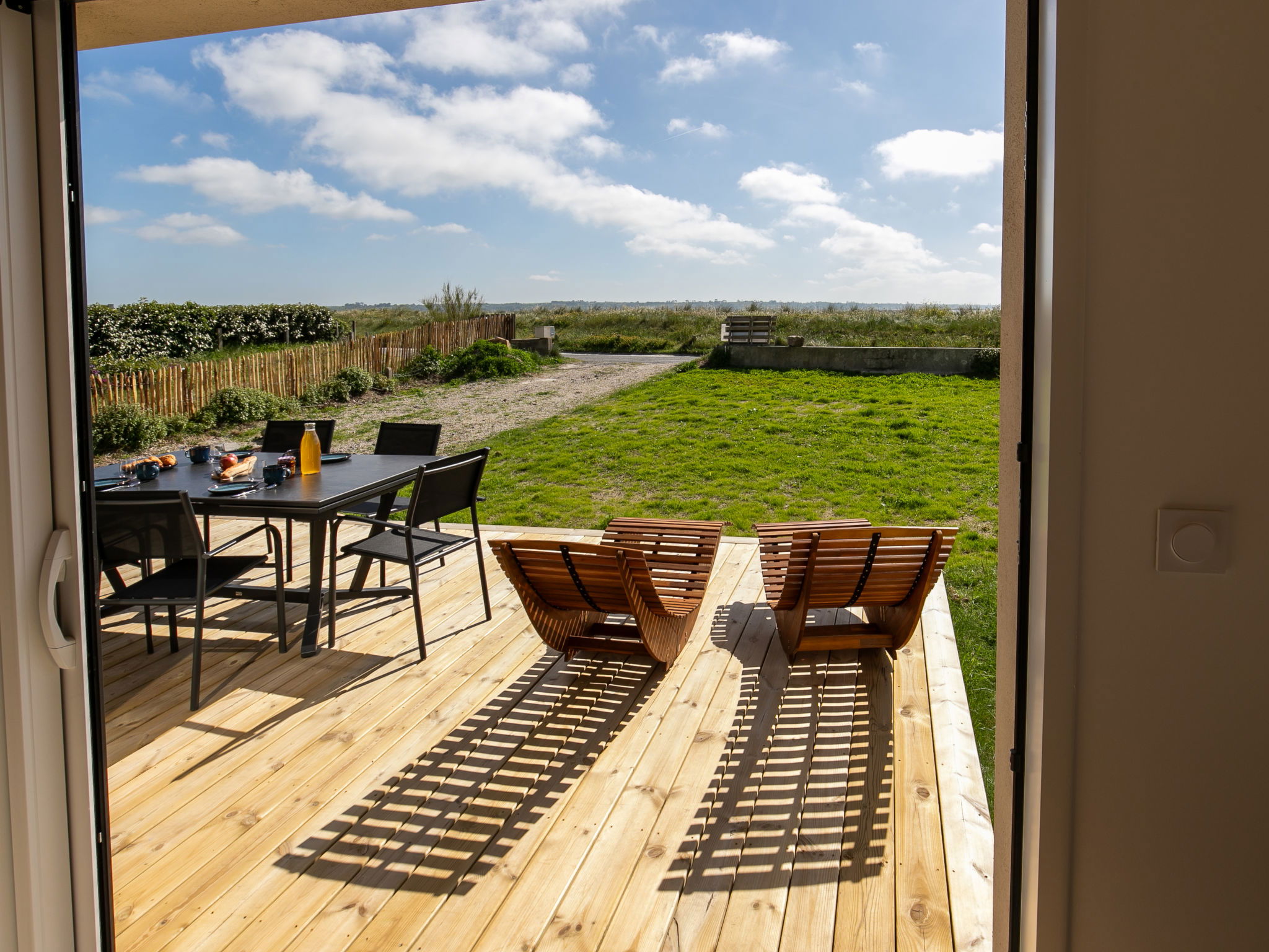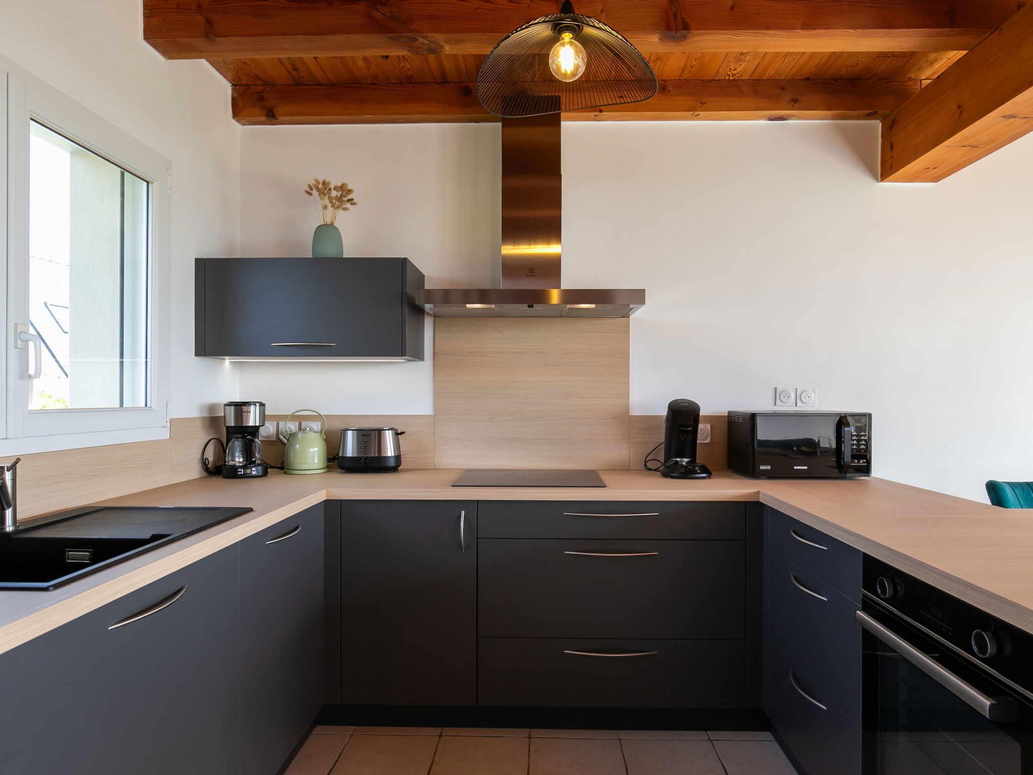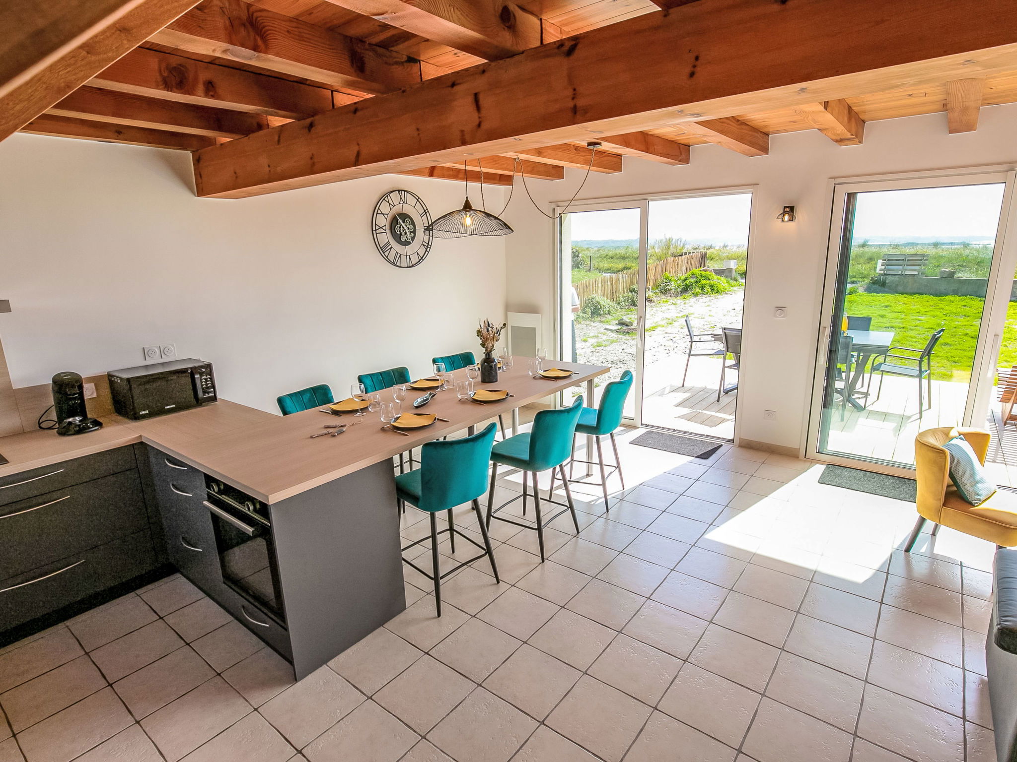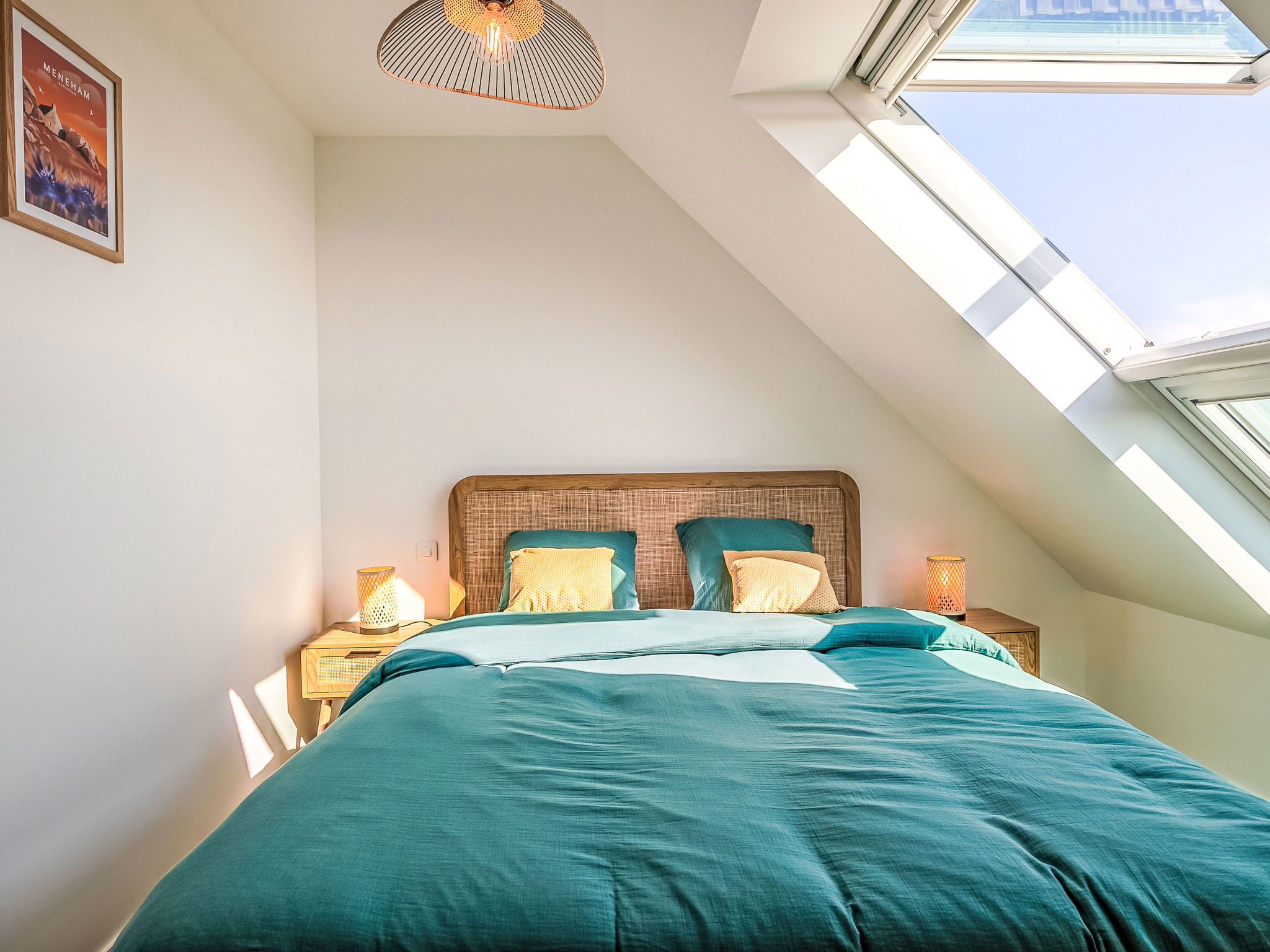 "Les reflets bleus", 4-room house 80 m2 on 2 levels. Bright, fully renovated in 2025, comfortable and tasteful furnishings: open living room 45 m2 with TV and flat screen. Exit to the terrace. Open kitchen (oven, dishwasher, 3 induction hot plates, toaster, kettle, microwave, freezer, electric coffee machine, Capsules for coffee machine (Senseo) extra) with dining table. Shower/WC. Upper floor: 1 room with 1 french bed (160 cm, length 200 cm). 1 room with 1 french bed (140 cm, length 190 cm). 1 room with 1 pull-out bed (2 x 90 cm, length 190 cm). Shower/WC. Electric heating. Terrace 20 m2, south-west facing position. Terrace furniture, deck chairs (2). Beautiful view of the sea. Facilities: washing machine, dryer, baby cot for up to 2 year olds, hair dryer. Internet (WiFi, free). Please note: non-smoking house. Maximum 1 pet/ dog allowed. Smoke alarm. Offer by a private individual according to Art. 155, IV of CGI.