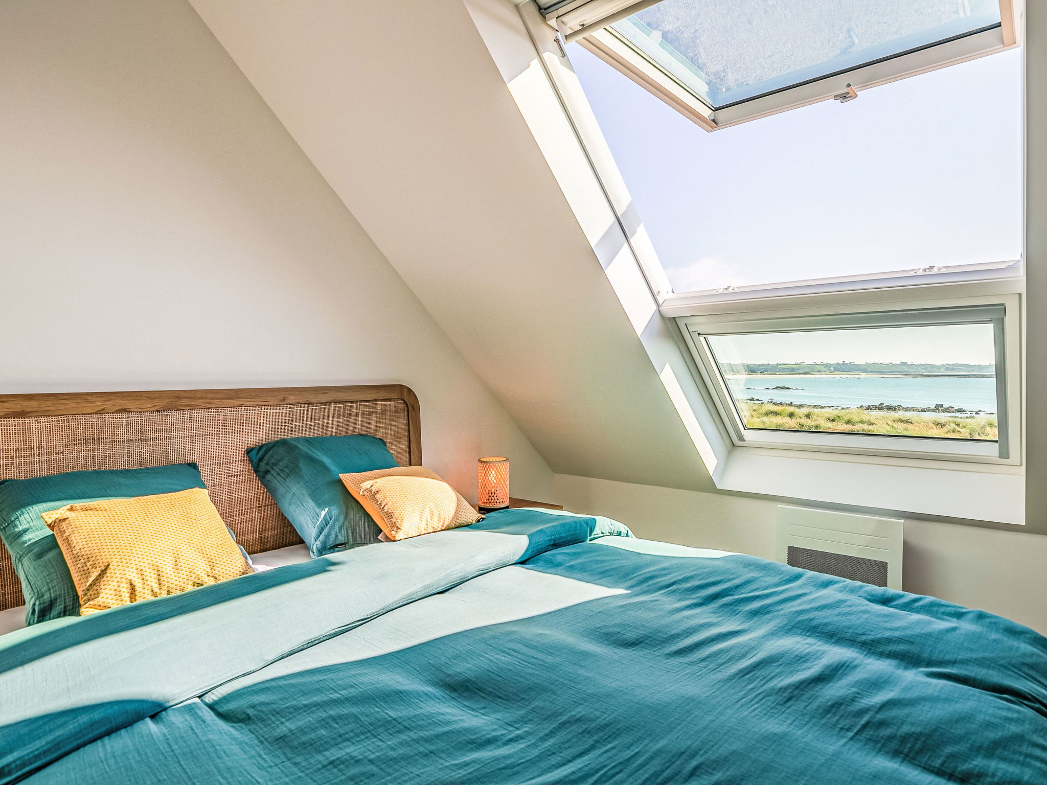 Beautiful, comfortable single-family house "Les reflets bleus". Neiz Vran 5.6 km from the centre of Kerlouan, 5.2 km from the centre of Guisseny, 50 m from the sea, 50 m from the beach. Private: property 300 m2, well-kept garden (not fenced) with lawn, parking on the premises. Shop 5.6 km, grocery 5.2 km, supermarket 5.2 km, restaurant 5.6 km, bar 5.2 km, bakery 5.2 km, bus stop 3.2 km, sandy beach "Plage du Fanal" 50 m, indoor swimming pool 16 km, thermal baths "Thalasso Roscoff" 40 km. Golf course (18 hole) 35 km, surf school 2.3 km, sailing school 11 km, walking paths from the house 30 m. Nearby attractions: Meneham 5 km, Reserve ornithologique Dunes de Keremma 12 km, Lesneven 15 km, Oceanopolis, Brest 36 km, Roscoff, Jardin exotique, Île de Batz 40 km, Lannilis, Pays des Abers 18 km. Hiking paths: GR34, sentier des douaniers 30 m.