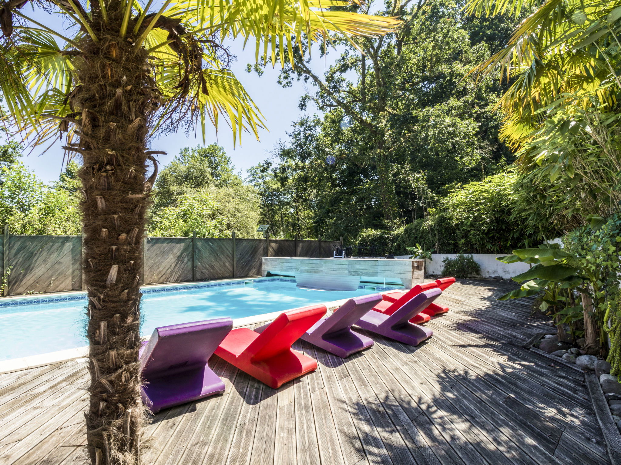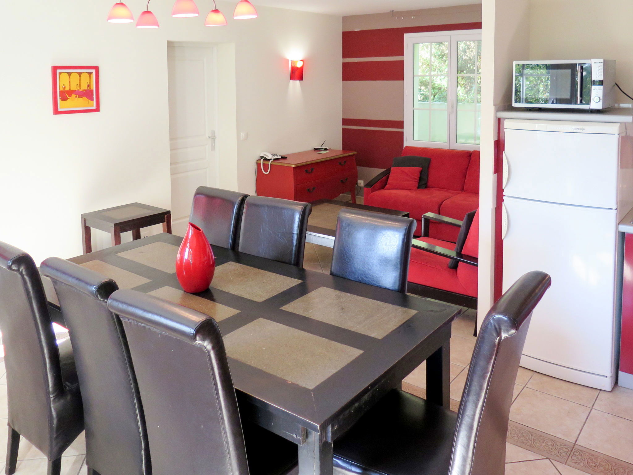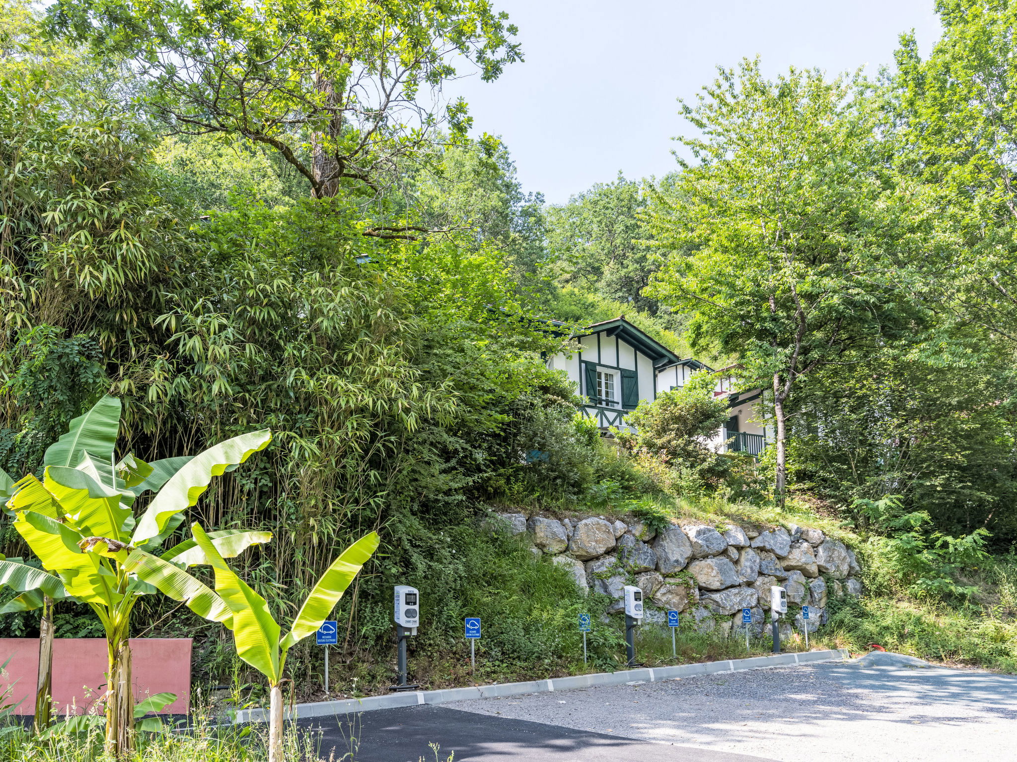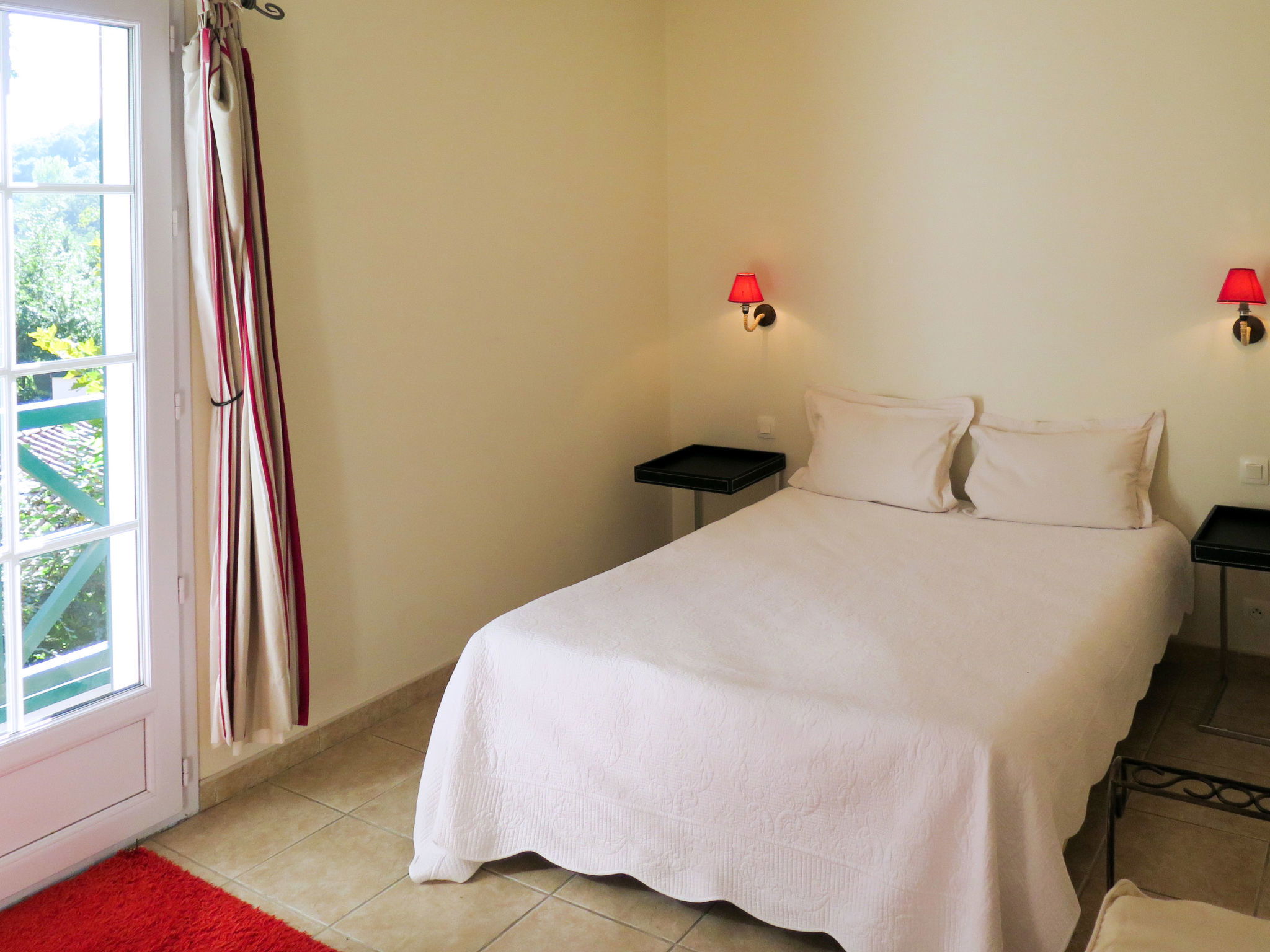 Resort "Collines Iduki", 2 storeys. 36 apartments in the residence. 500 m from the centre of La Bastide-Clairence, 8.5 km from the centre of Hasparren, 25 km from the centre of Bayonne, on a slope, 35 km from the sea, 35 km from the beach, 100 m from the river. For shared use: property 3 ha with plants and trees, natural garden, swimming pool heated (12 x 6 m, depth 80 - 120 cm, seasonal availability: 01.May. - 30.Sep.). Outdoor shower, table tennis, terrace. In the complex: reception, restaurant, table football, washing machine, tumble dryer (for shared use, extra). Parking (limited number of spaces). E-charging station. Grocery 500 m, supermarket 9 km, restaurant 500 m, bus stop "Bourg" 5 km, sandy beach "Biarritz, Anglet" 35 km. Nearby attractions: Joyeuse River (canoe possible) 100 m. Please note: the photograph shows a typical example.
