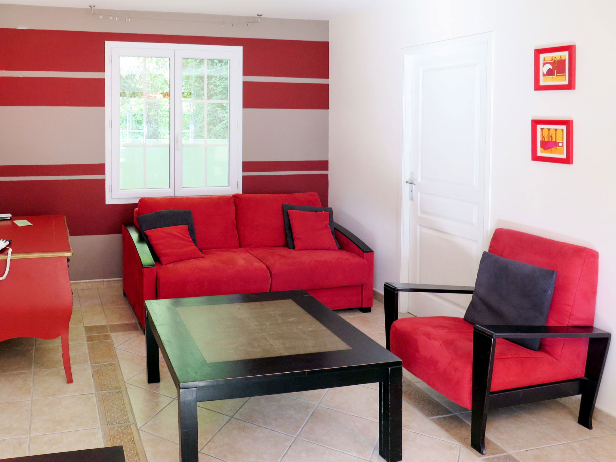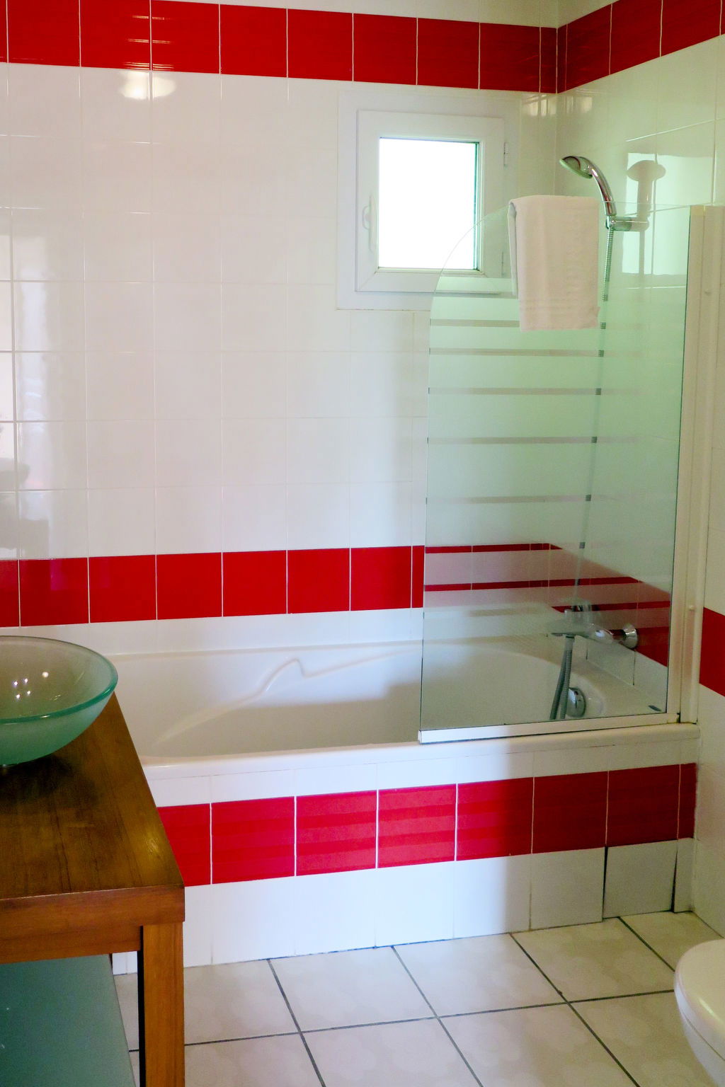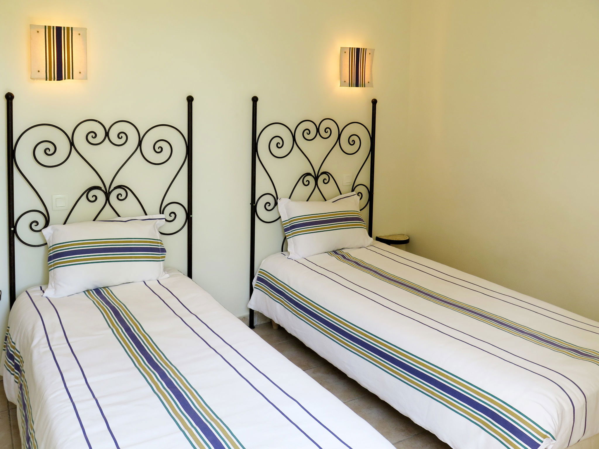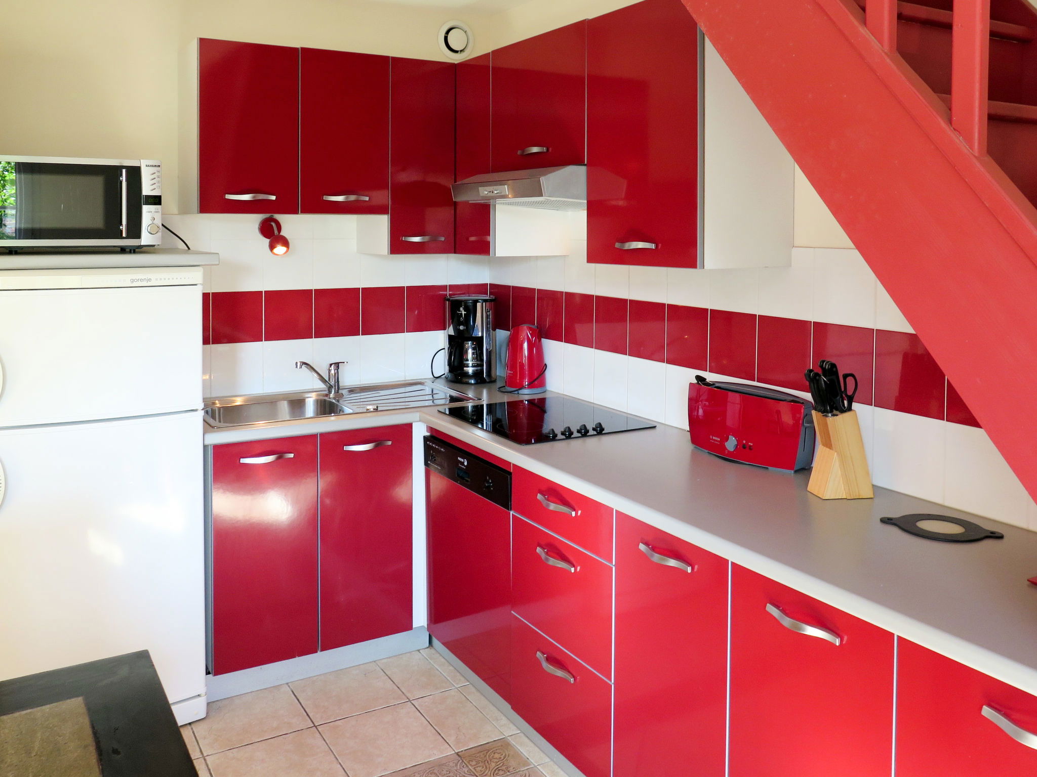 "Collines Iduki", 4-room terraced house 70 m2 on 2 levels. Beautiful and cosy furnishings: living/sleeping room with 1 double sofabed (160 cm, length 200 cm), dining table and satellite TV. Exit to the terrace. 1 room with 1 french bed (160 cm, length 200 cm), shower. Kitchenette (dishwasher, 4 ceramic glass hob hotplates, toaster, kettle, freezer, electric coffee machine, Capsules for coffee machine (Nespresso) extra, combination microwave). Shower/WC. Upper floor: (steep stair), 1 room with 1 french bed (160 cm, length 200 cm). Exit to the balcony. 1 room with 2 beds (80 cm, length 190 cm). Bath/WC. Electric heating. Balcony, terrace roofed. Terrace furniture, balcony furniture. Facilities: children's high chair, baby cot. Internet (WiFi, free). Please note: non-smokers only. Maximum 1 pet/ dog allowed. Smoke alarm.