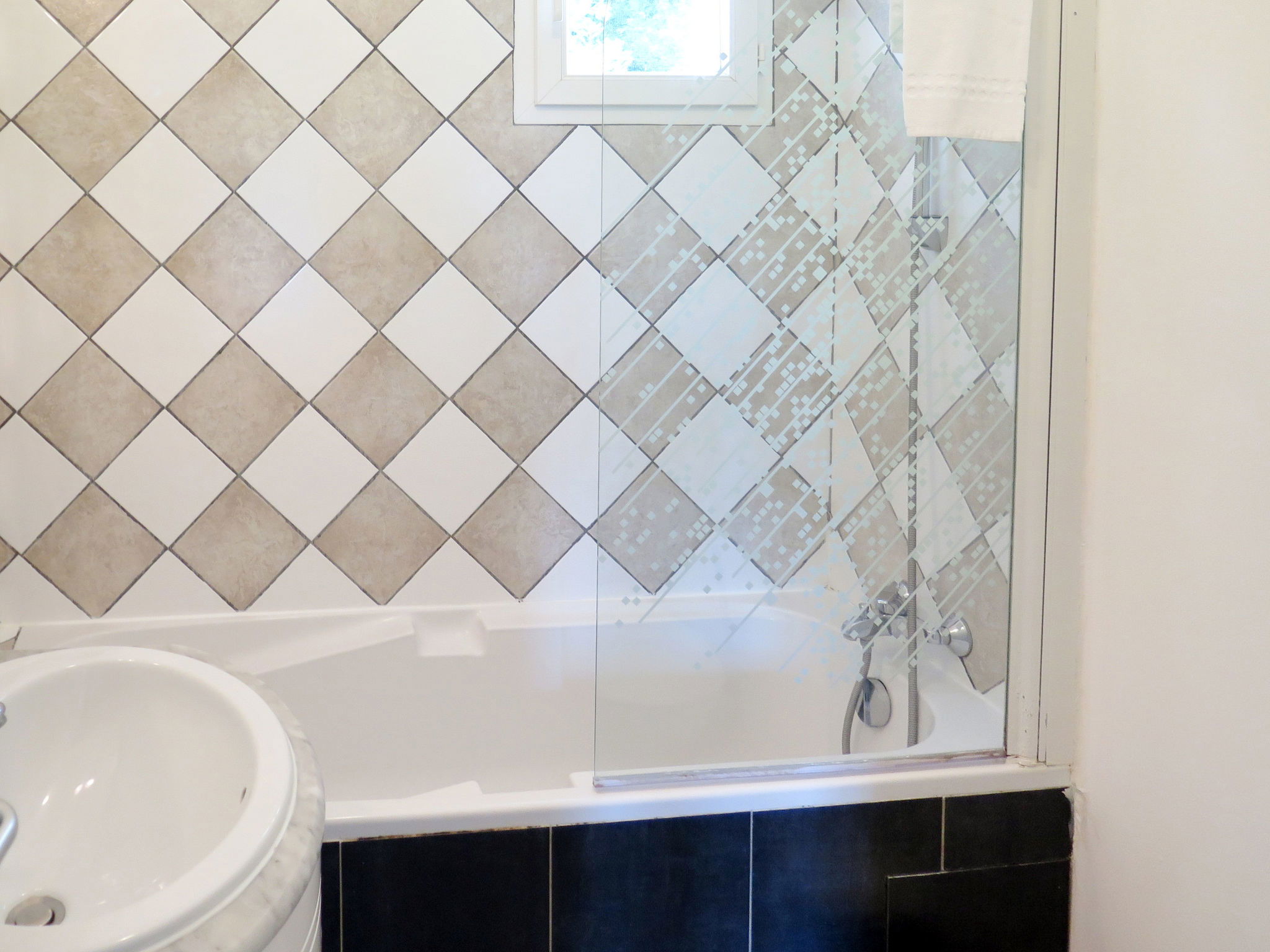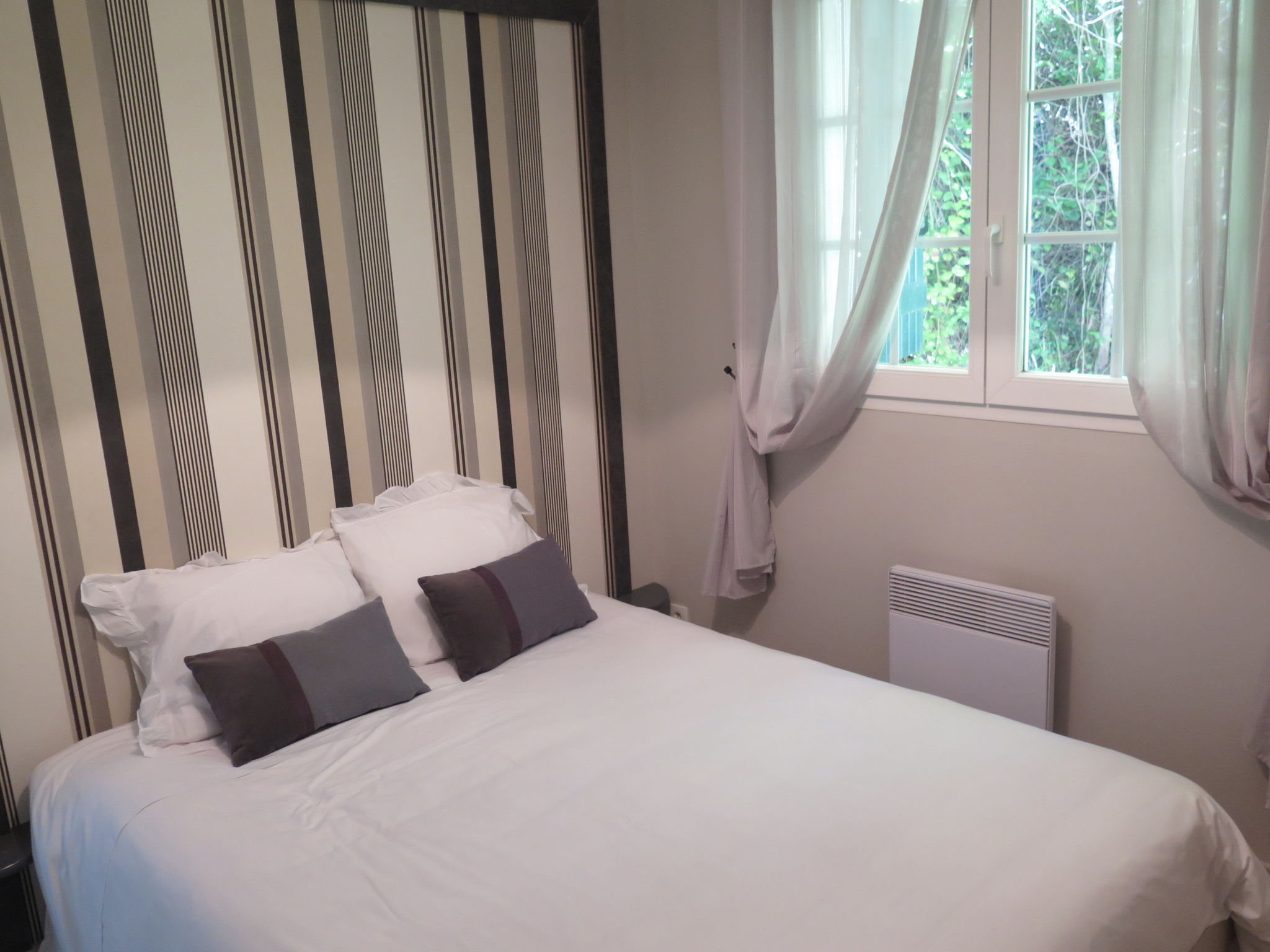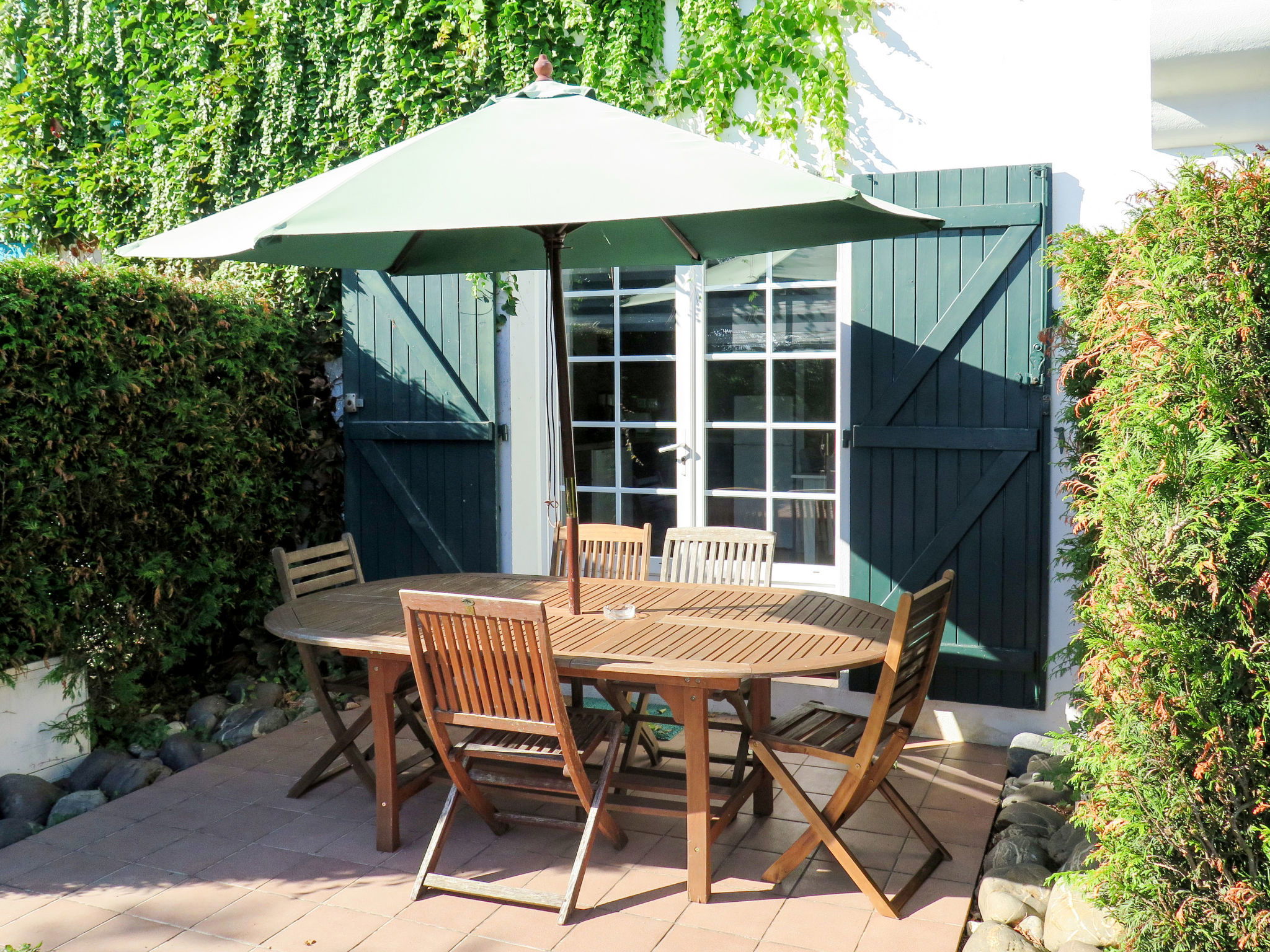 "Collines Iduki", 3-room terraced house 45 m2 on 2 levels. Beautiful and cosy furnishings: living/sleeping room with 1 double sofabed (160 cm, length 200 cm), dining table and satellite TV. Exit to the terrace. Kitchenette (dishwasher, 4 ceramic glass hob hotplates, toaster, kettle, freezer, electric coffee machine, Capsules for coffee machine (Nespresso) extra, combination microwave). Shower/WC. Upper floor: 1 room with 1 french bed (160 cm, length 200 cm). 1 room with 2 beds (80 cm, length 190 cm). Bath/WC. Electric heating. Terrace. Terrace furniture. Facilities: children's high chair, baby cot. Internet (WiFi, free). Please note: non-smokers only. Maximum 1 pet/ dog allowed. Smoke alarm.