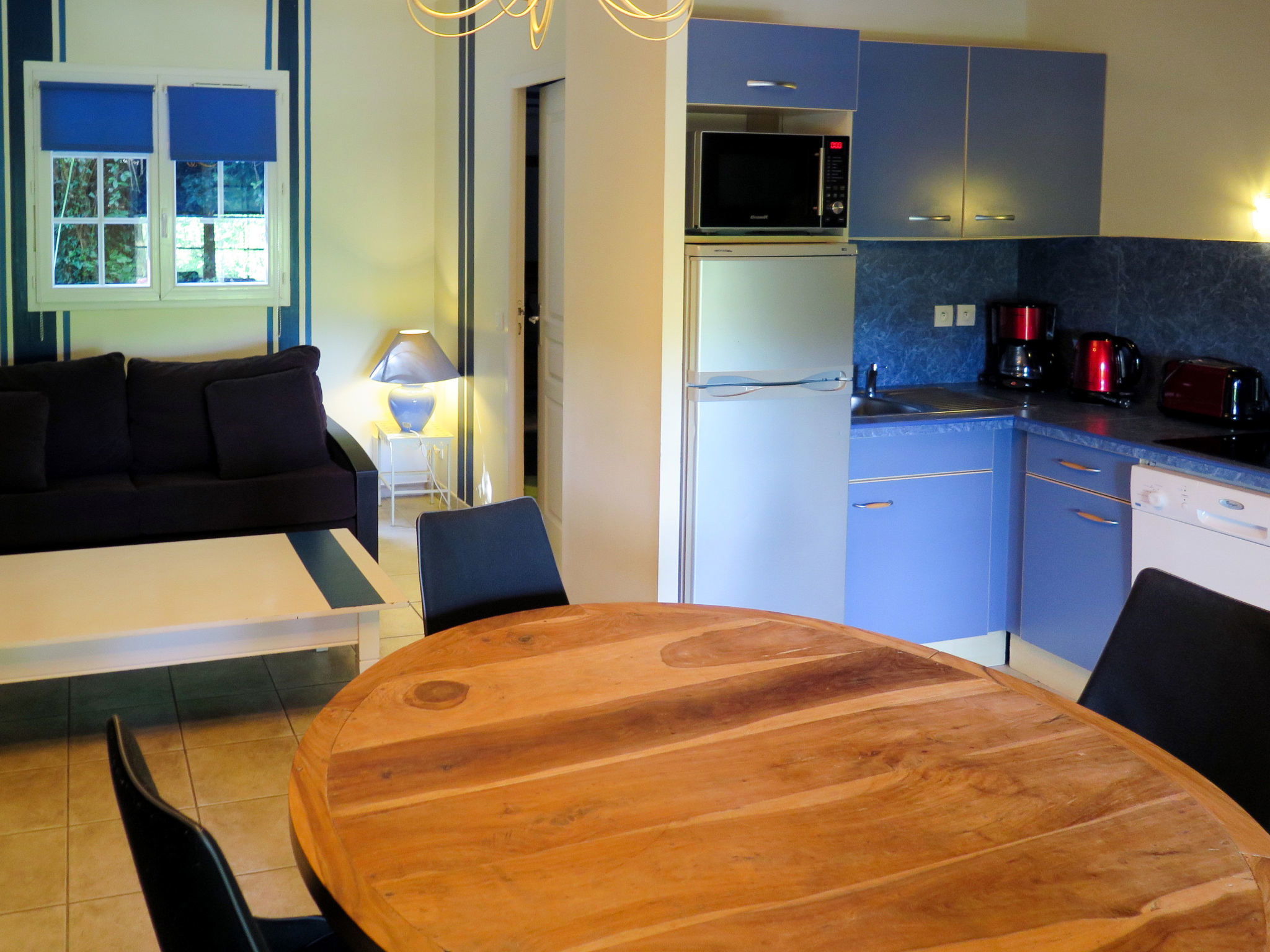 Resort "Collines Iduki", 2 storeys. 36 apartments in the residence. 500 m from the centre of La Bastide-Clairence, 8.5 km from the centre of Hasparren, 25 km from the centre of Bayonne, on a slope, 35 km from the sea, 35 km from the beach, 100 m from the river. For shared use: property 3 ha with plants and trees, natural garden, swimming pool heated (12 x 6 m, depth 80 - 120 cm, seasonal availability: 01.May. - 30.Sep.). Outdoor shower, table tennis, terrace. In the complex: reception, restaurant, table football, washing machine, tumble dryer (for shared use, extra). Parking (limited number of spaces). E-charging station. Grocery 500 m, supermarket 9 km, restaurant 500 m, bus stop "Bourg" 5 km, sandy beach "Biarritz, Anglet" 35 km. Nearby attractions: Joyeuse River (canoe possible) 100 m. Please note: the photograph shows a typical example.