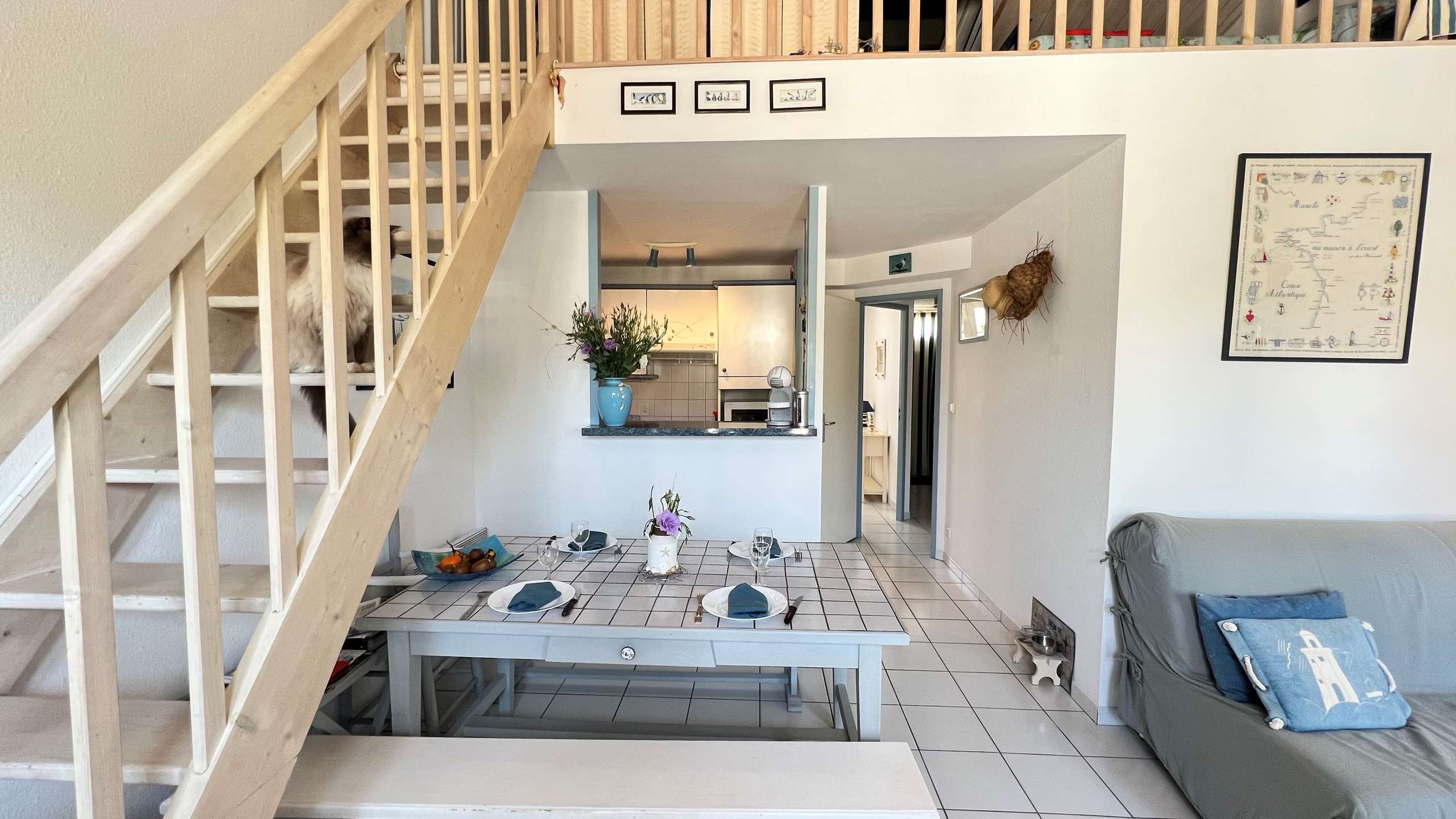 Pretty two-storey house in a secure residence, with swimming pool, tennis court and bowling alley. You will appreciate the private courtyard with its garden furniture. Close to beaches and cycle paths you can leave your car during your stay. PARKING - END OF STAY CLEANING AND LINEN MANDATORY (Bed linen, hand towel, bath mat, tea towels)