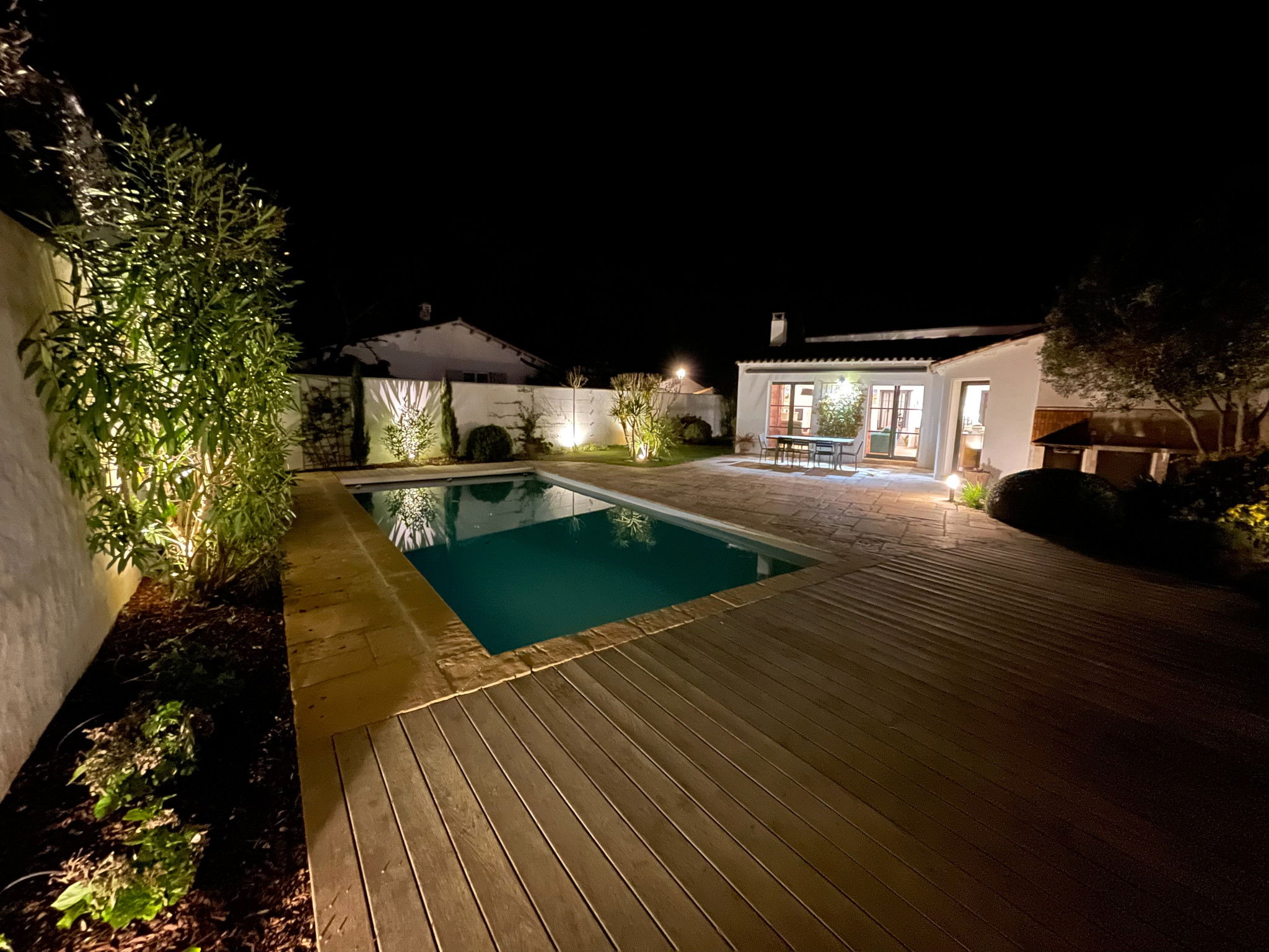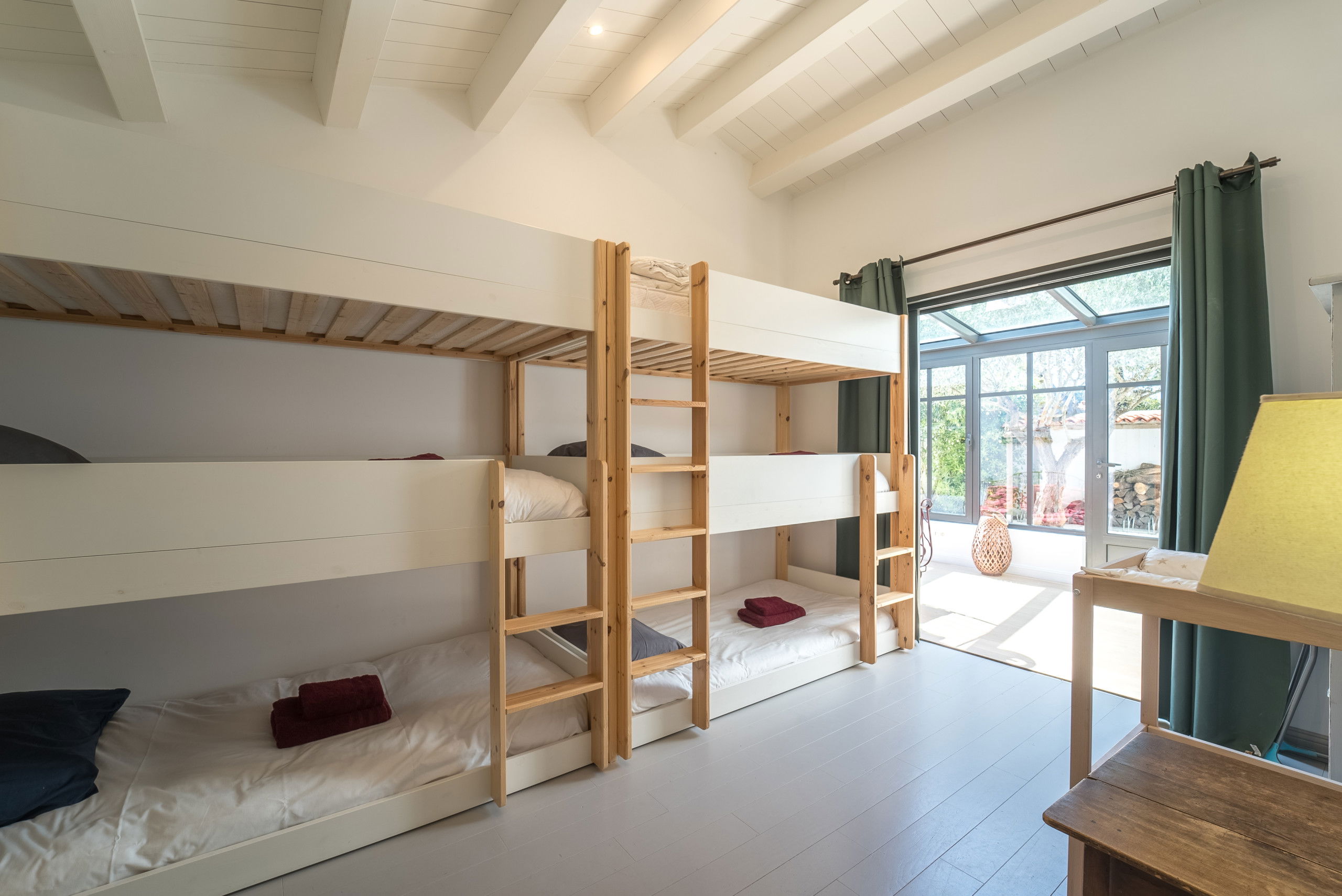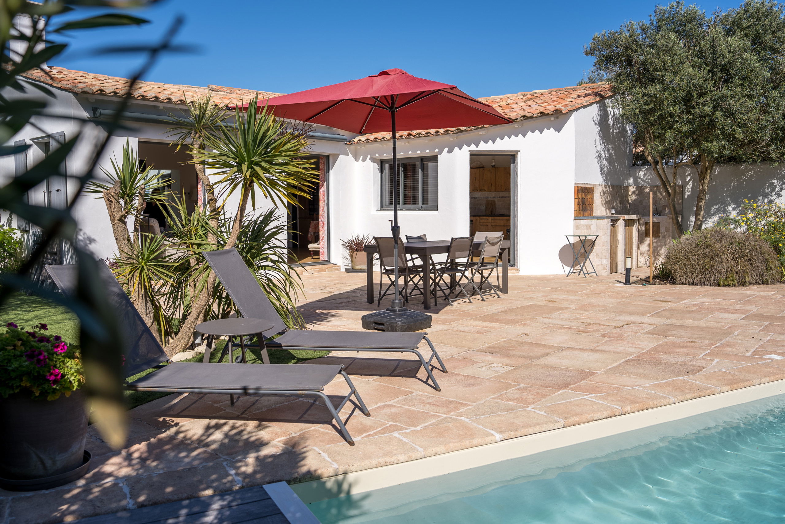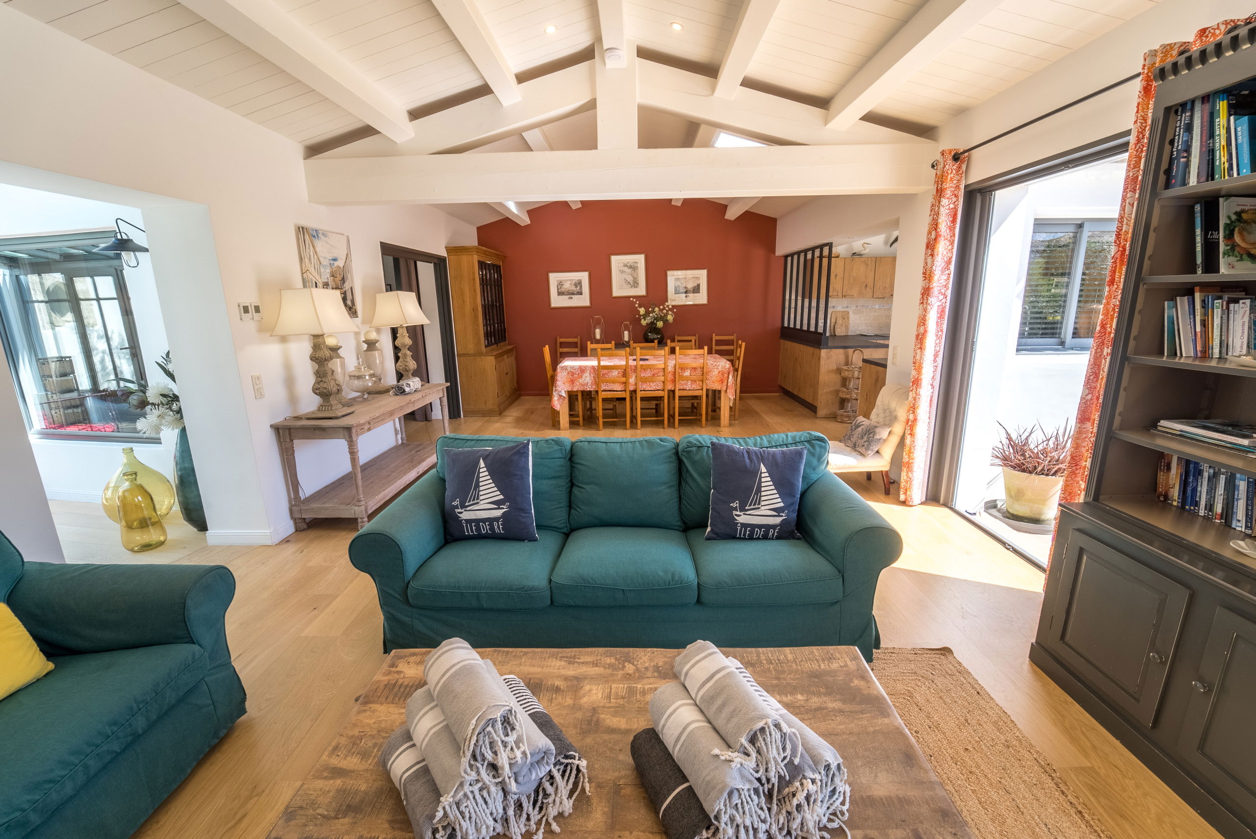 Villa Sylvabelle, located on the Ile de Ré will seduce you for a family rental with its heated swimming pool, its fireplace, its magnificent glass roof and its beautiful volumes.