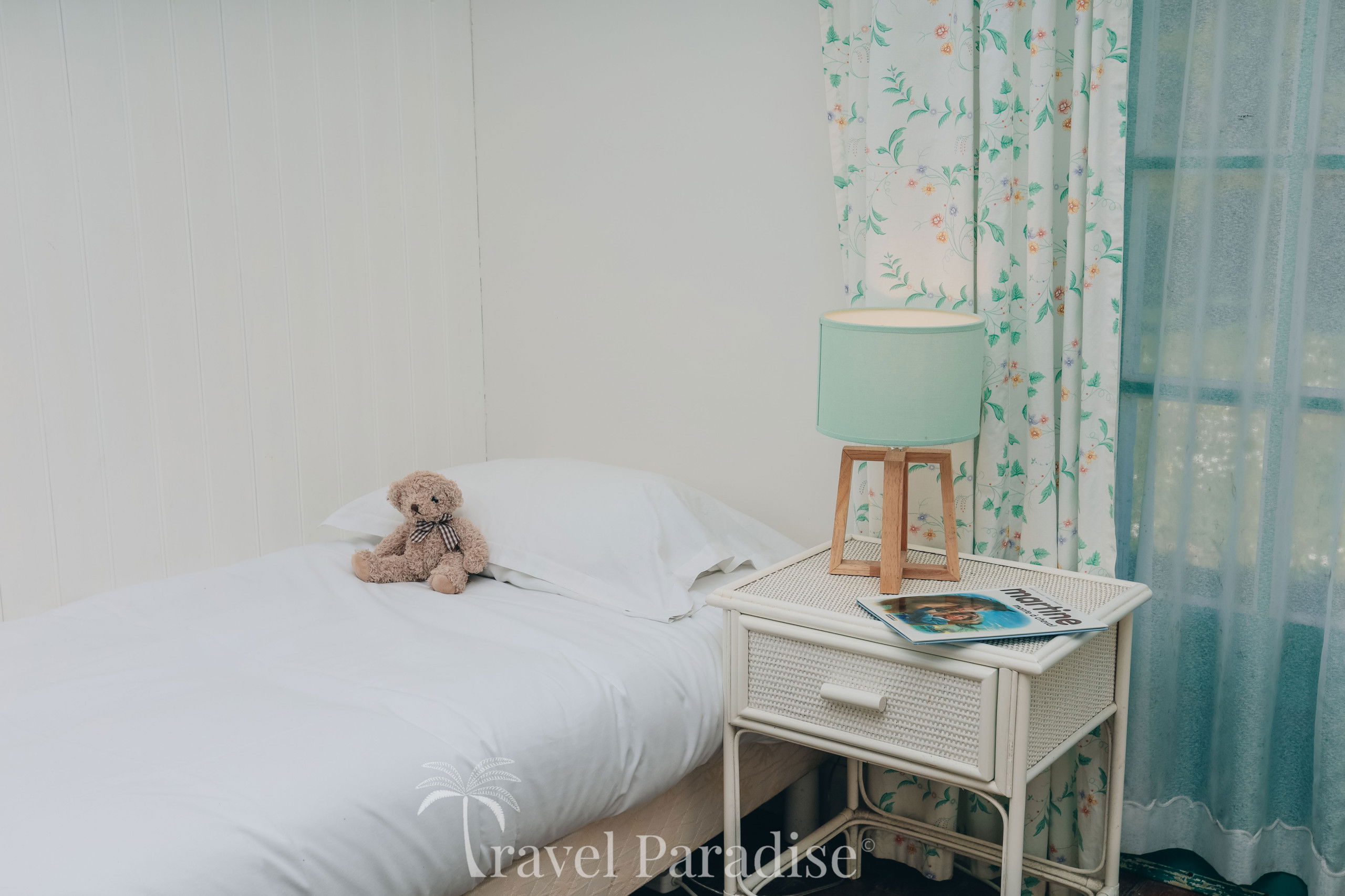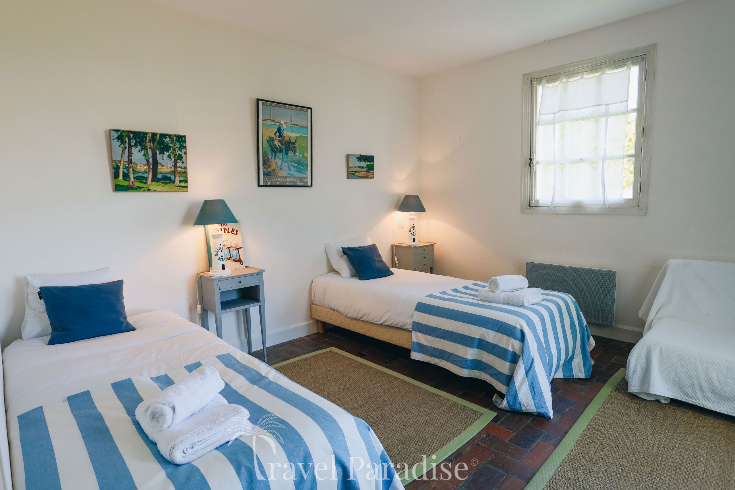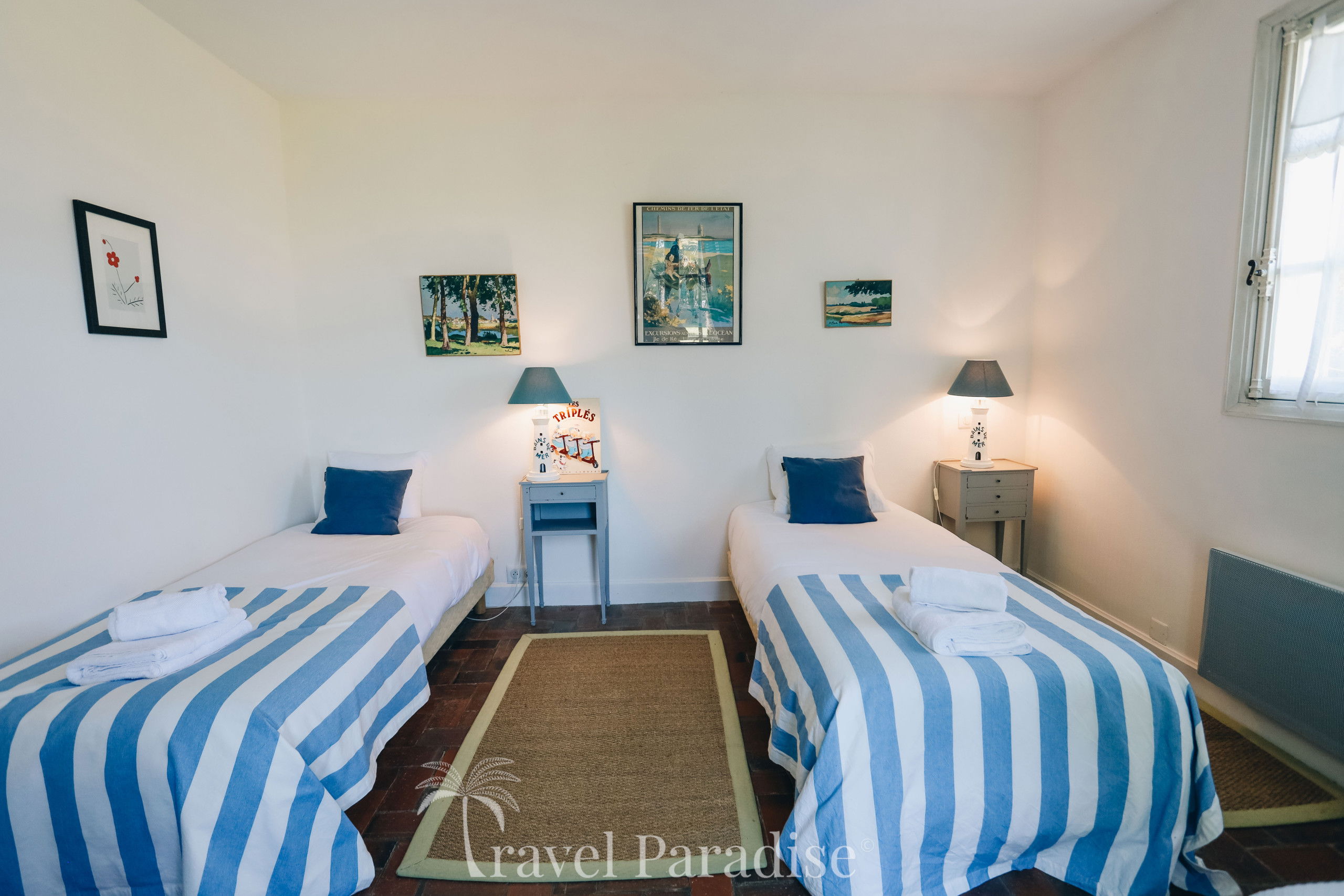 o Bedroom 3 (blue bedroom): 2 single beds 90x200cm (can be joined to form a double bed). Sea view