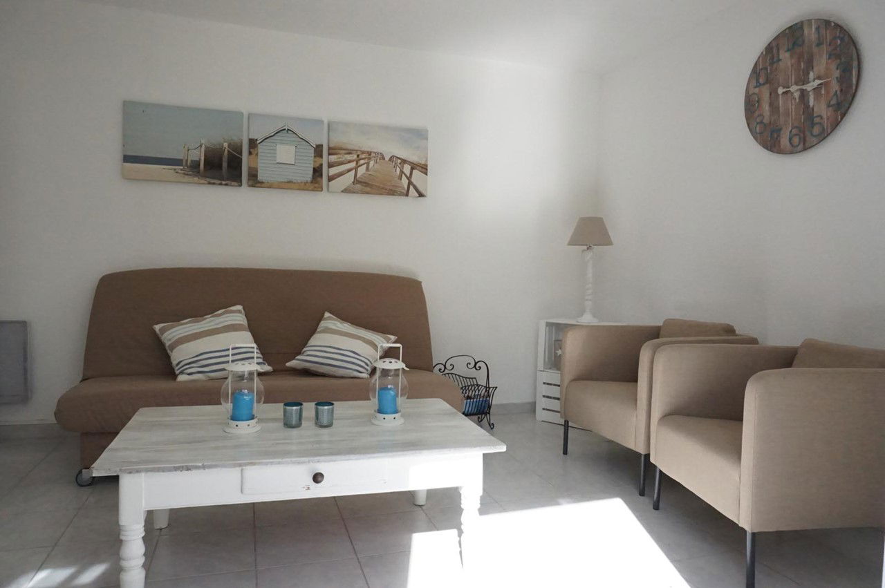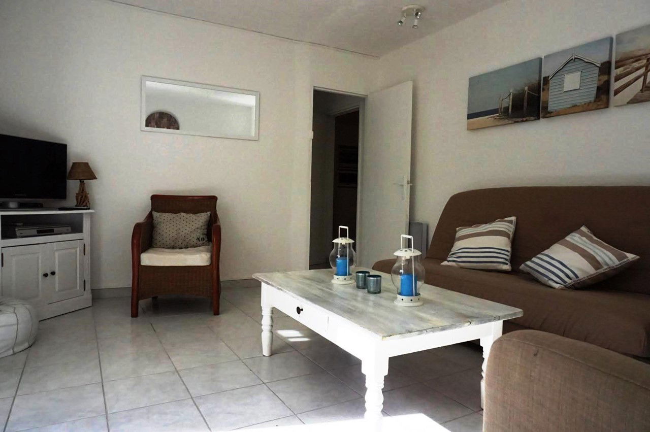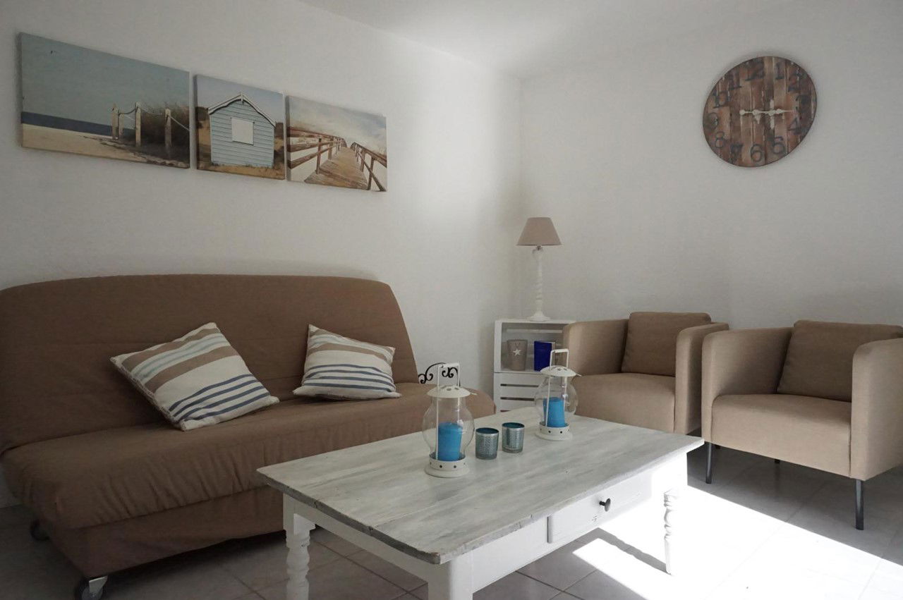 La Guérinière (85) - Résidence Bel Horizon 2-room apartment - approximately 49 m² - up to 4 people Located 100 m from the beach and 400 m from a mini-market, this single-storey apartment consists of a fitted kitchen, a living room with a sofa bed for two people, and a television, a bedroom with two single beds, a bathroom and a separate toilet. The advantages of this rental by the sea: Beautiful south-facing terrace with an awning, garden furniture, deckchairs and barbecue. You benefit from a private garden in the pine forest and access to the beach via the dune. You benefit from the family activities of the residence.