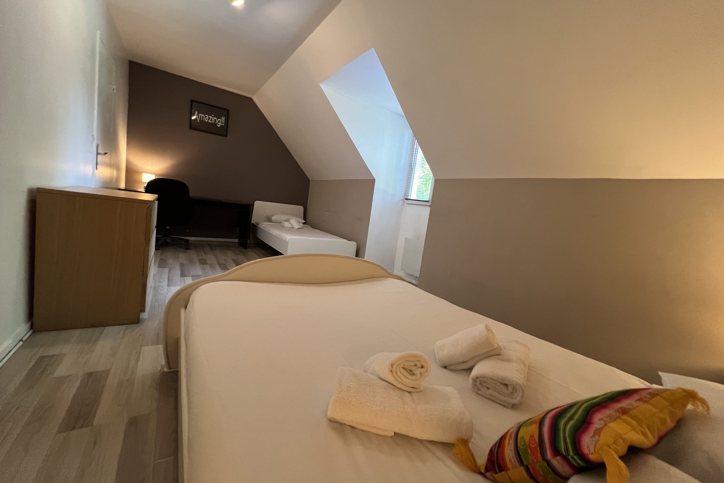 - Bedroom 3: 1 double bed + 1 single bed