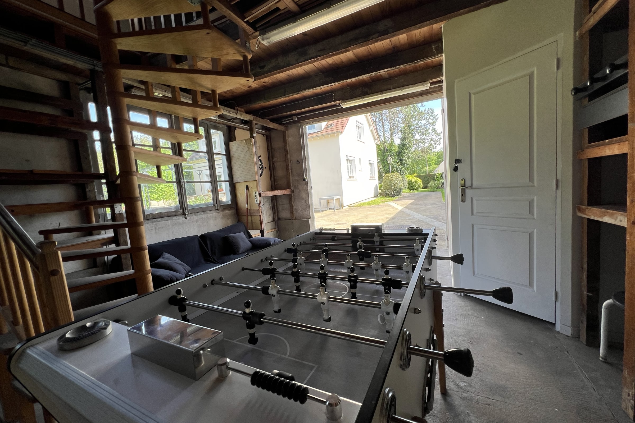Ideal for having fun with family or friends, you will find in the garden, a 50 m2 outbuilding equipped as a games room with a table football, a dart game as well as a sofa and 2 coffee tables.