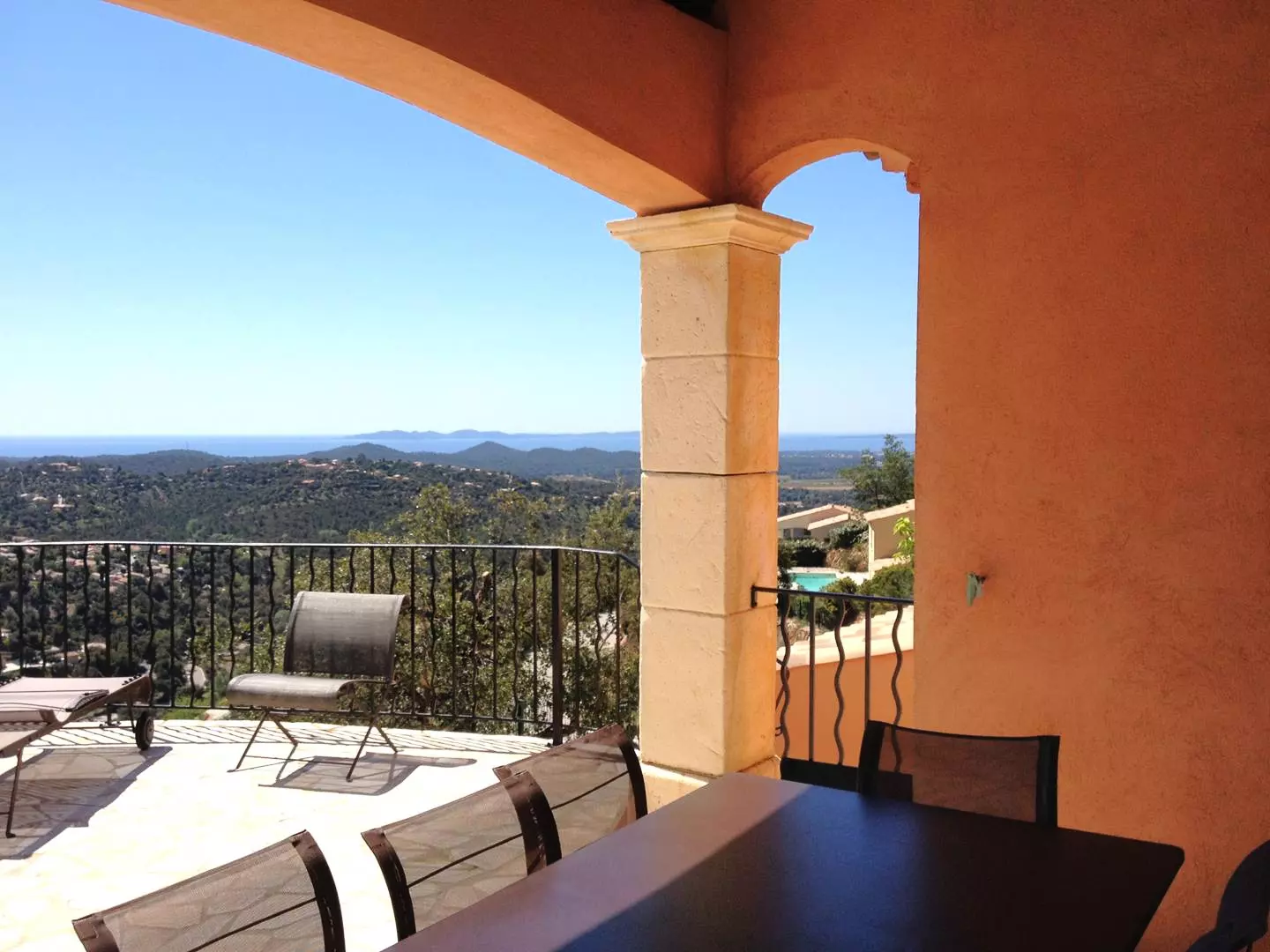 A majestic view of the sea, facing the Island of Porquerolles but also the Maures forests and the greens of the Golf, this is what you can expect when occupying this beautiful neo-Provençal style villa.