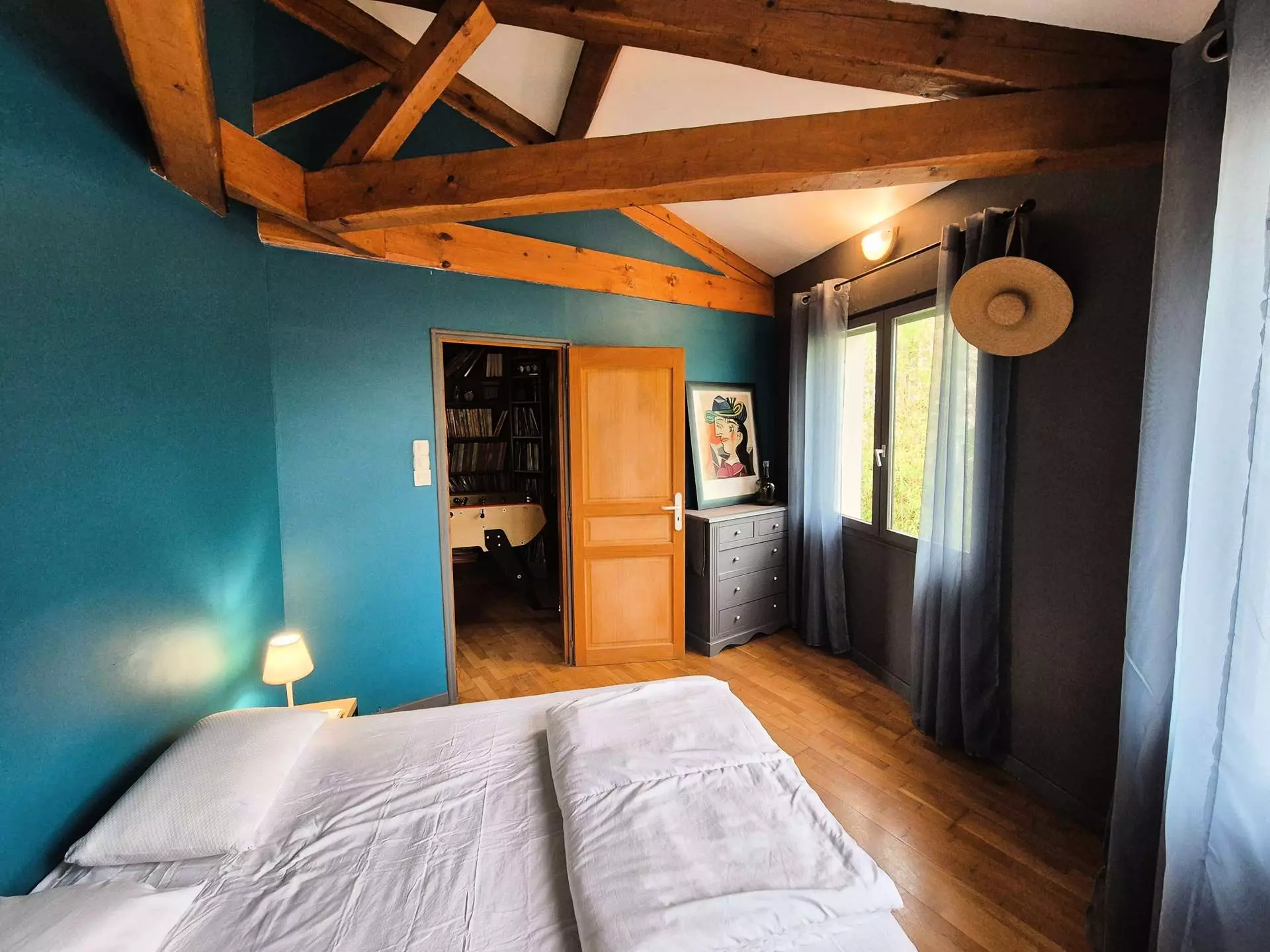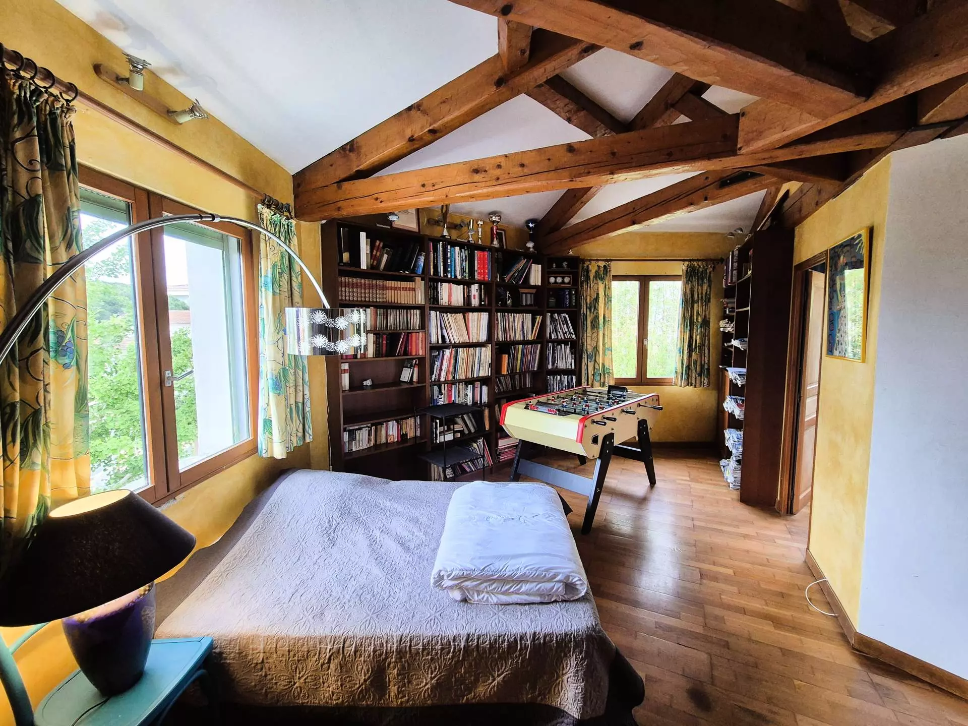 Upstairs: bedroom 3 open to living room (mezzanine) with library.