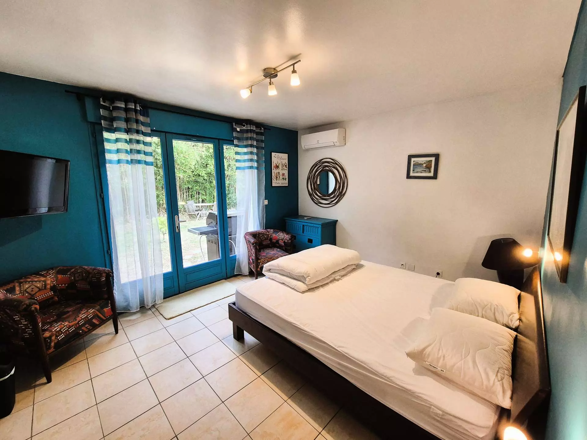 Bedroom 4 with air conditioning, shower room with WC, storage.