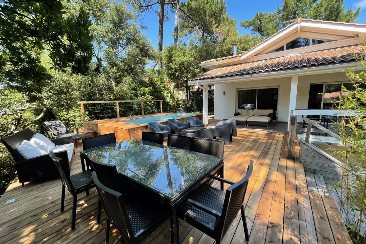 Magnificent new villa with all mod cons in Pyla, for 10 people (5 bedrooms and 4 bathrooms) with swimming pool, 5 minutes from the beach and the center of Moulleau