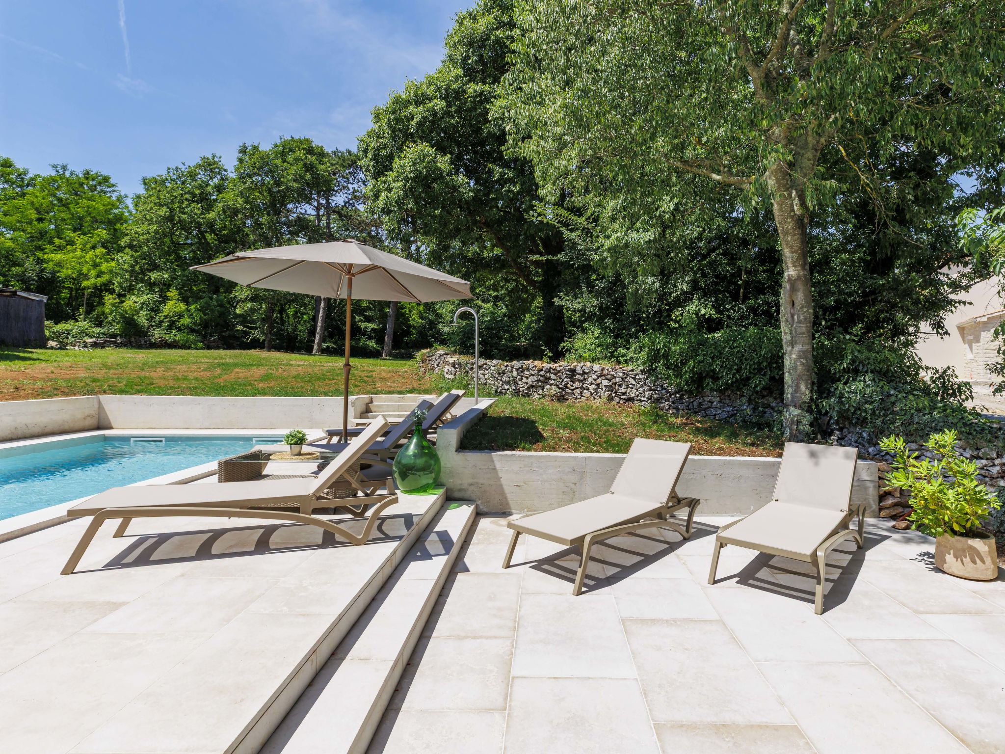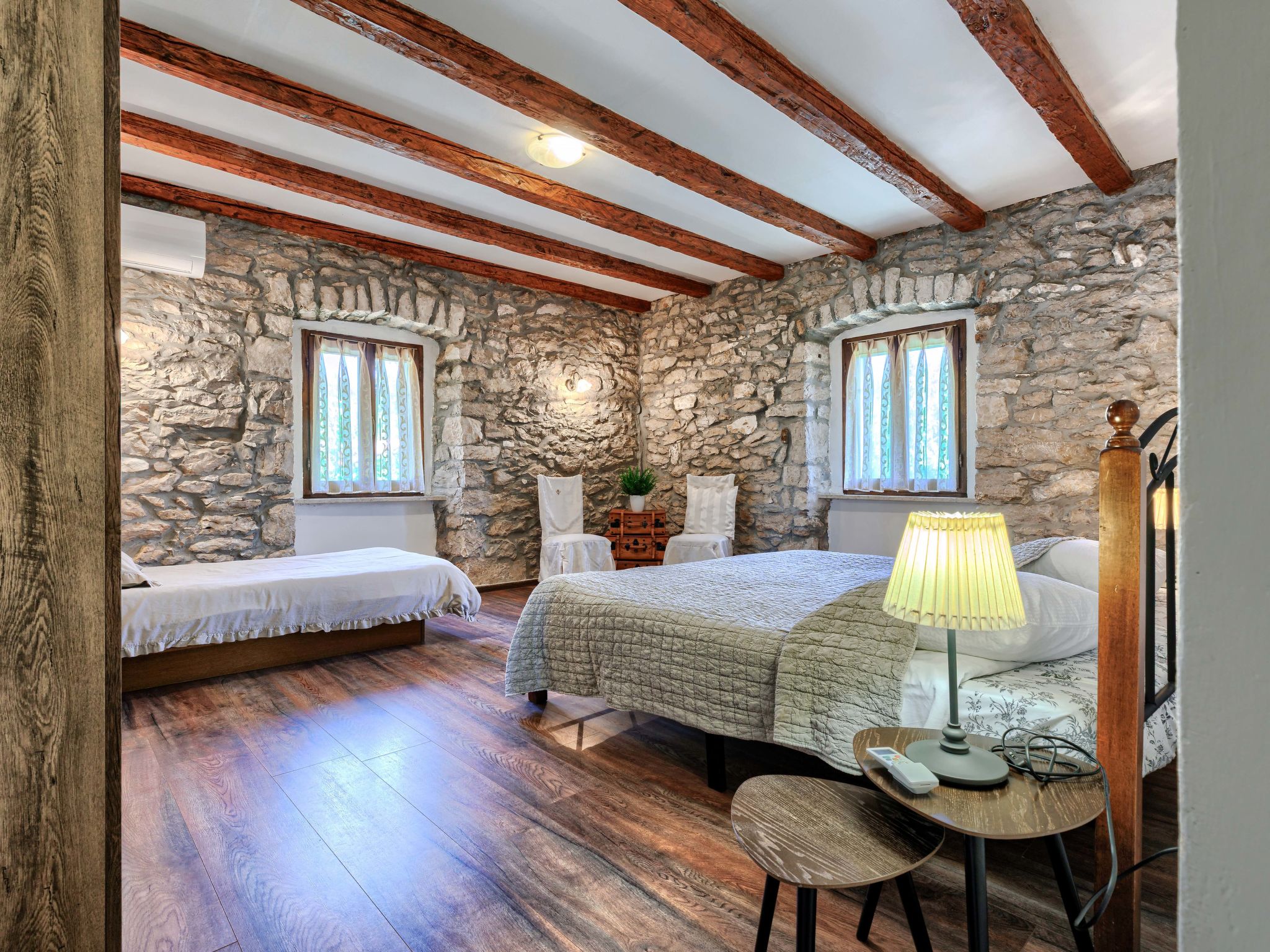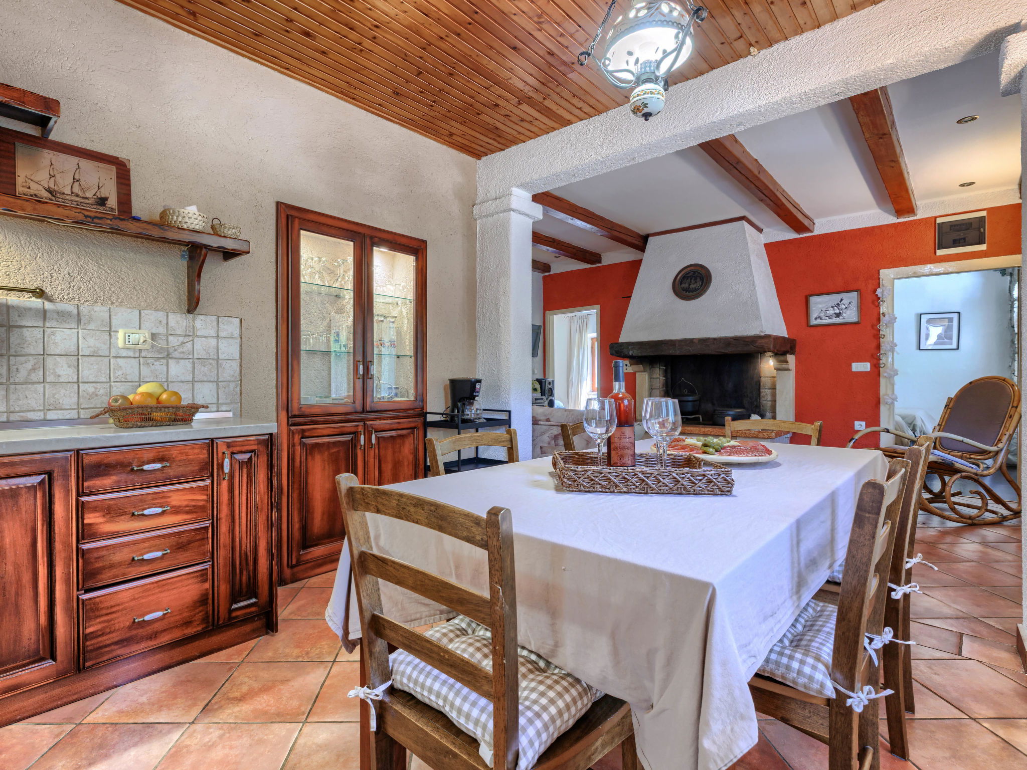 Single-family house "Nino", 2 storeys. In the district of Veljaki 1 km from the centre of Kršan, 12 km from the centre of Labin, 15 km from the centre of Rabac, 15 km from the sea. Private: property 1'200 m2 with lawn and trees, swimming pool angular (25 m2, depth 140 cm, seasonal availability: 01.May. - 04.Oct.). Outdoor shower (swing). In the house: internet access, trampoline, washing machine. Parking at the house on the premises. Shop 1 km, bus stop 5.2 km, pebble beach 15 km. Marina 15 km. Part of the house is closed and unoccupied.