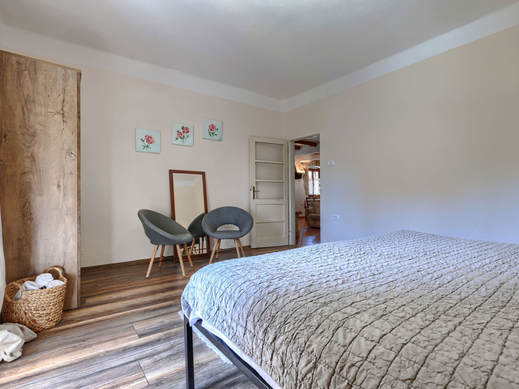 5-room house 130 m2 on 1st floor. Living/dining room with satellite TV and air conditioning. Exit to the terrace. 1 room with 1 sofabed (140 cm, length 200 cm), satellite TV. 1 room with 1 bed, 1 double bed and air conditioning. 1 room with 1 double bed. 1 room with 2 beds. Open kitchen (4 hot plates, oven, dishwasher, electric coffee machine). Shower/WC, sep. WC. Electric heating. Terrace 25 m2 partly roofed. Terrace furniture, barbecue (portable), deck chairs (4). Facilities: iron, children's high chair, baby cot. Internet (WiFi, free). Please note: non-smoking house. Maximum 3 pets/ dogs allowed. Private entrance.