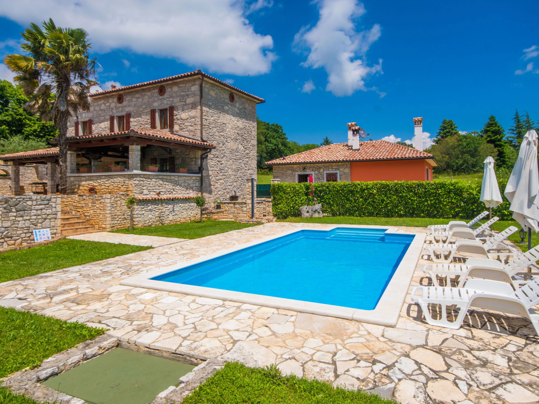 Rustic single-family house "Blašković", 3 storeys. In the hamlet Balarini 9 km from the centre of Labin, 15 km from the centre of Rabac, 15 km from the sea, 15 km from the beach. Private: property 1'200 m2 (fenced), lawn and wildlife garden, swimming pool angular (8 x 4 m, depth 140 cm, seasonal availability: 01.Apr. - 30.Oct.) with internal staircase. Outdoor shower, terrace (70 m2), barbecue, pool maintenance by the owner/gardener. In the house: internet access, washing machine. Parking (for 4 cars) at the house on the premises. Shop 6 km, supermarket 9 km, restaurant 6 km, bus stop "Labin" 9 km, pebble beach 15 km. Please note: airfield 45 km from the property.