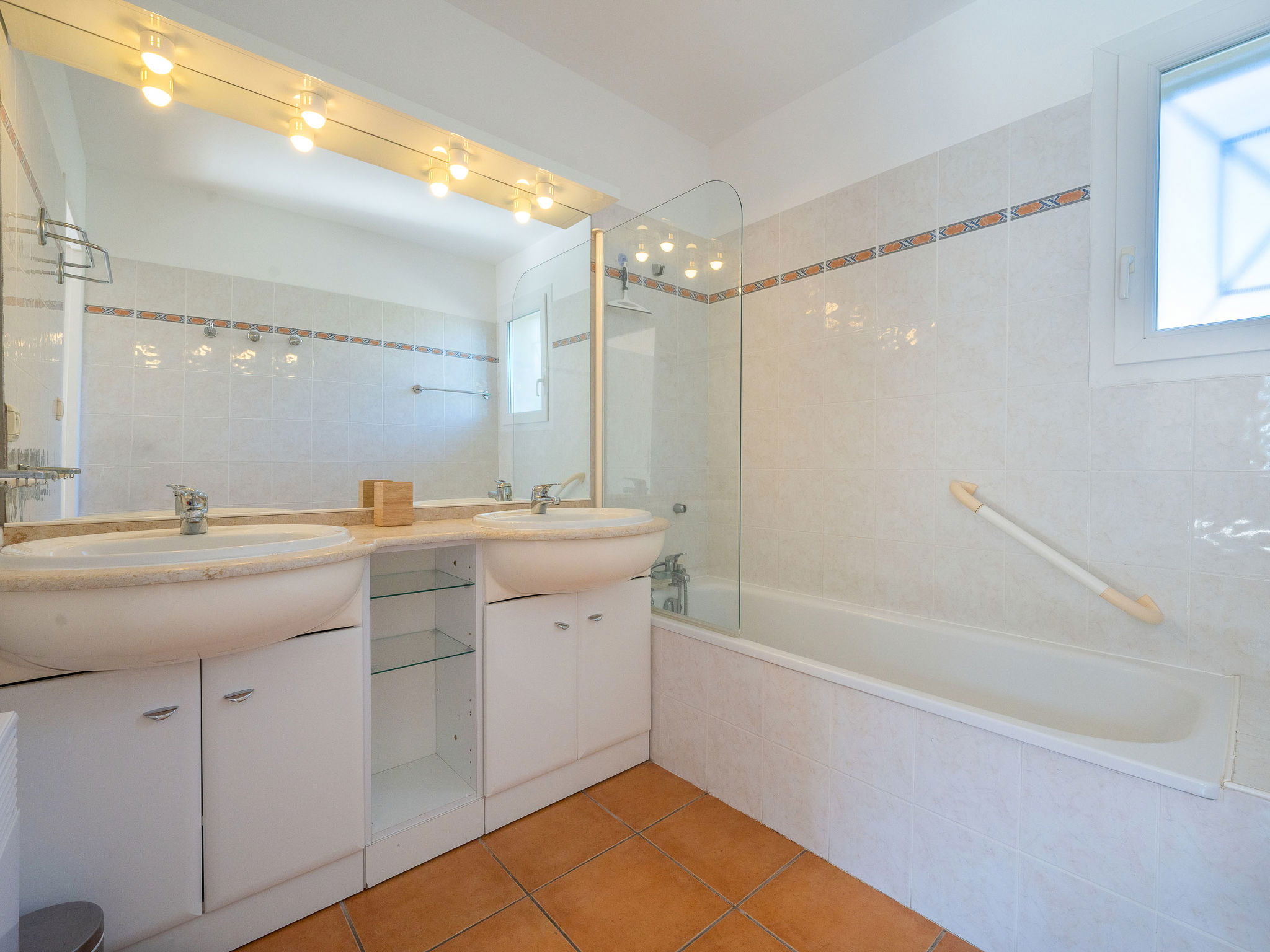4-room villa 95 m2. Comfortable furnishings: living/dining room with TV (flat screen). Exit to the swimming pool. 1 room with 1 french bed (160 cm, length 200 cm). 1 room with 2 beds (80 cm, length 200 cm). 1 room with 2 beds (90 cm, length 200 cm). Kitchen (oven, dishwasher, 4 ceramic glass hob hotplates, toaster, kettle, microwave, electric coffee machine). Bath/shower, shower, 2 sep. WC's. Heating. Terrace 60 m2, roofed, south facing position and, east facing position terrace 50 m2, south facing position and, east facing position. Terrace furniture, deck chairs (6). View of the swimming pool, the garden and the forest. Facilities: washing machine, dryer. Internet (WiFi, free). Parking (fenced). Please note: non-smokers only. Maximum 1 pet/ dog allowed. Smoke alarm. Offer by a private individual according to Art. 155, IV of CGI.