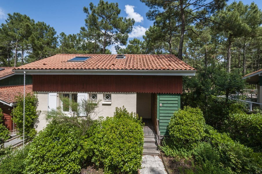 The residence "Golf Loisirs" with free access to the collective pool (open from the 15th of june until the 15th of september). Located close the golf courses, a pretty independent house for 6 people with a living/dining room opening, by bay window, on a beautiful wooden terrace, equipped with garden furniture, offering a superb view on the golf course of Lacanau. A second terrace welcomes you below the garden. You have a kitchen area with a bar opens to the living room, a bedroom equipped with a double bed (140cm), a mezzanine furnished with two single beds and a third sleeping area in the lounge that can be isolated by a sliding door (double sofa bed). The bathroom has a sink and a bath, toilet independent and a shower room on the mezzanine. Your pet is welcome. You have a numbered car park. Join the beach, shops, restaurants, glaciers and surf schools at 2,5 km, golf at 500 m and lake at 3,5 km (Ref 02086M)