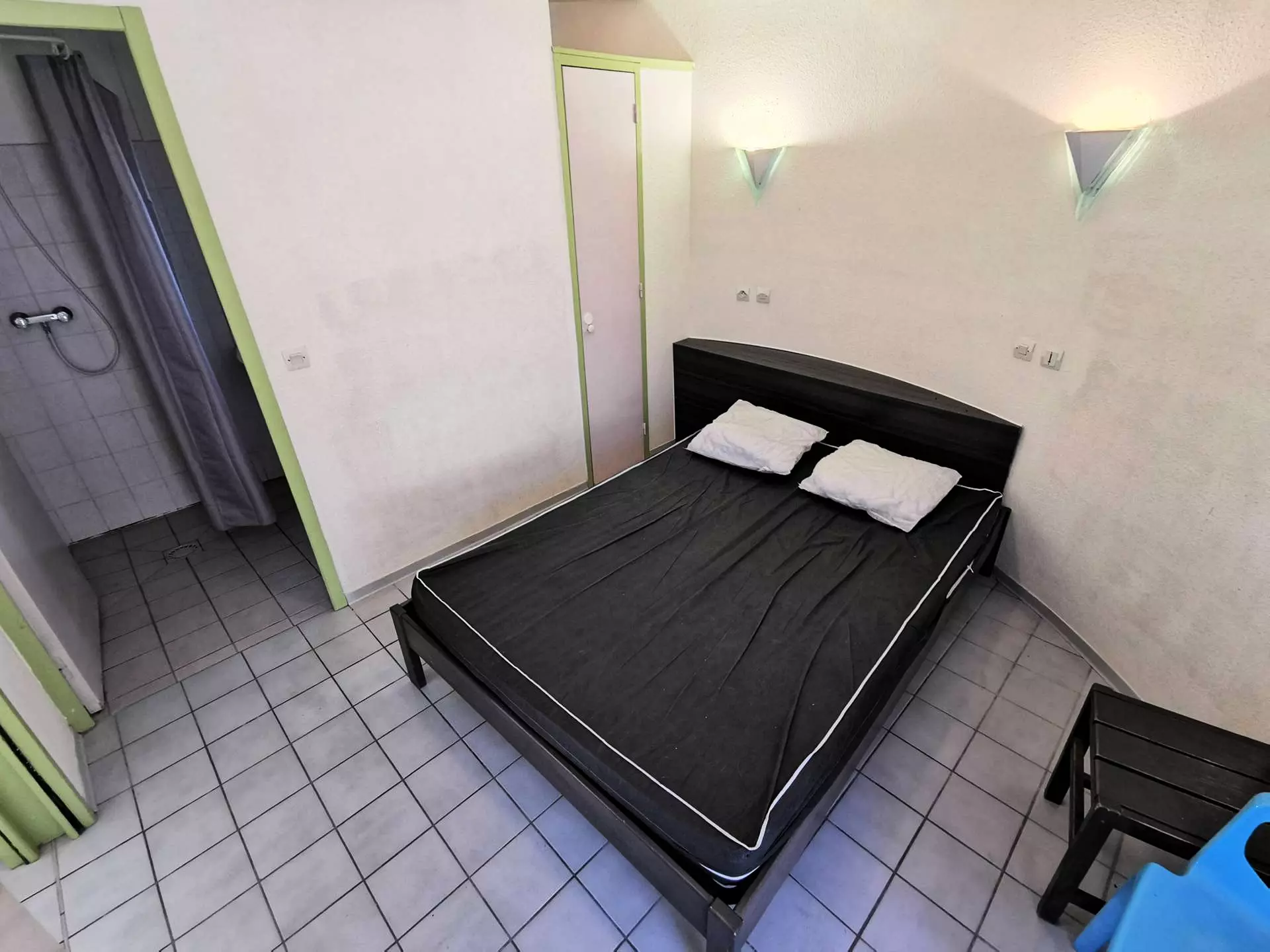 - A bedroom with a double bed
