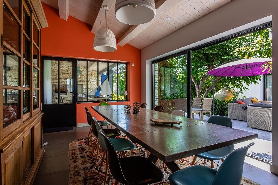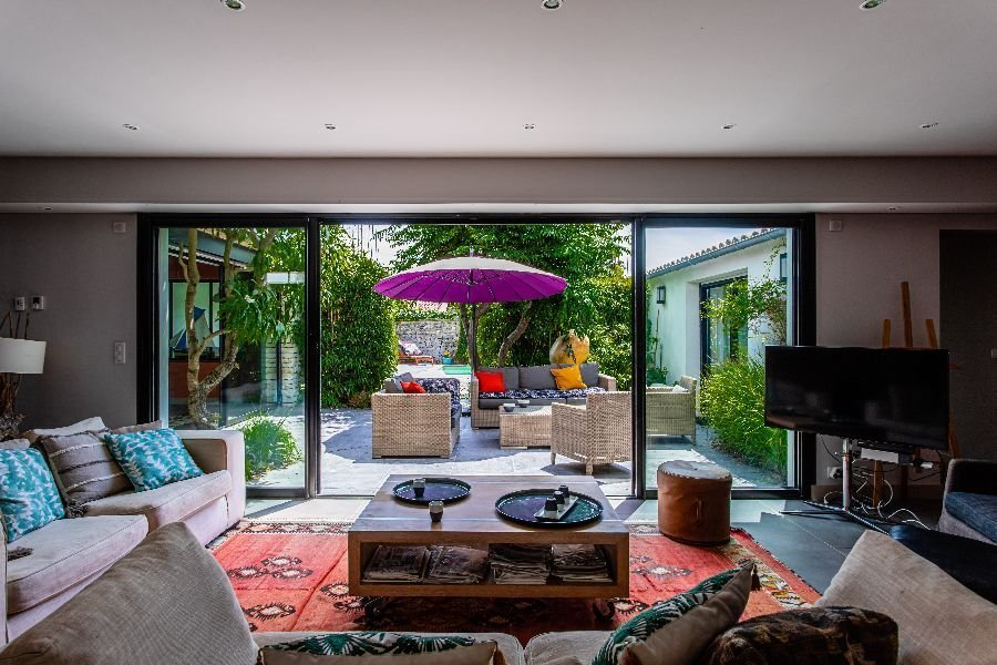 Come and recharge your batteries in this magnificent property, tastefully decorated and furnished, facing south, ideally located a few minutes walk from the Bois-Plage market, Gollandières beach and close to cycle paths. You will appreciate the volumes of the living spaces opening onto the garden with terrace, garden furniture, summer courtyard with gas plancha allowing you to have lunch/dinner outside, and swimming pool area with deckchairs. The swimming pool is heated (from April to October depending on the weather) and secured by an electric cover. This architect-designed villa will seduce you with the quality of the equipment and its comfort, such as the lounge areas inviting conviviality and the fully equipped fitted kitchen. The villa has plenty of storage and a laundry room with washing machine and dryer. The kitchen is very well equipped with induction hob, extractor, oven, microwave, dishwasher, fridge and American fridge-freezer. The sleeping area includes five bedrooms, four shower rooms, a bathroom and 4 toilets. An upright piano and a bicycle garage are at your disposal. You can park your vehicles in the public car parks located nearby. Animals allowed after agreement of the owners