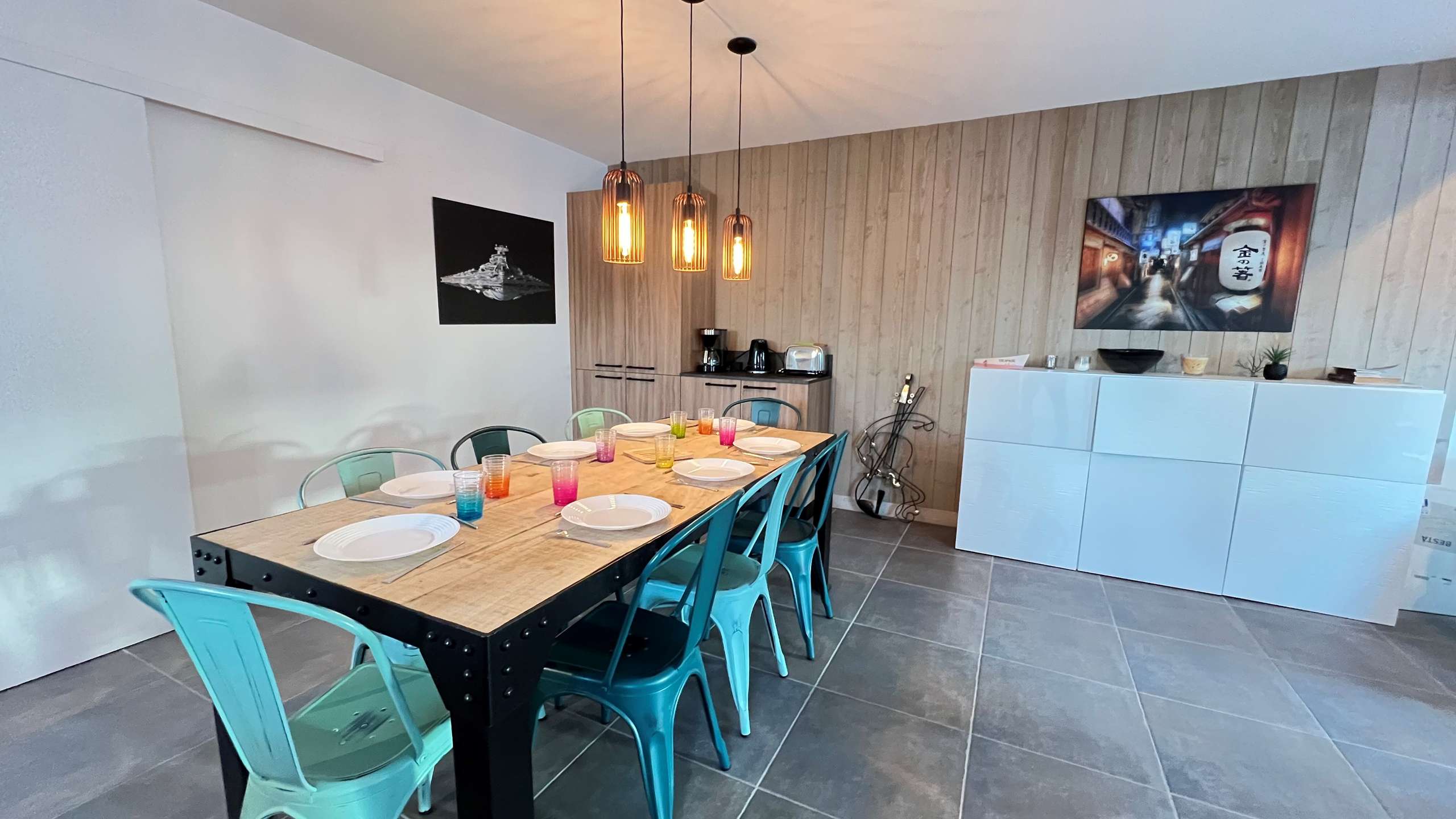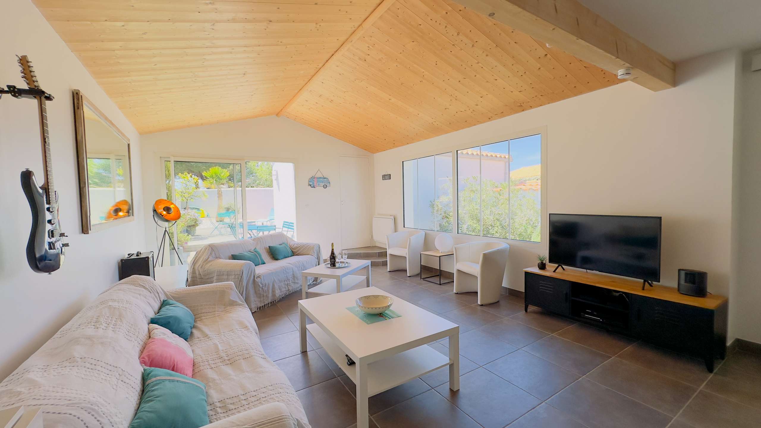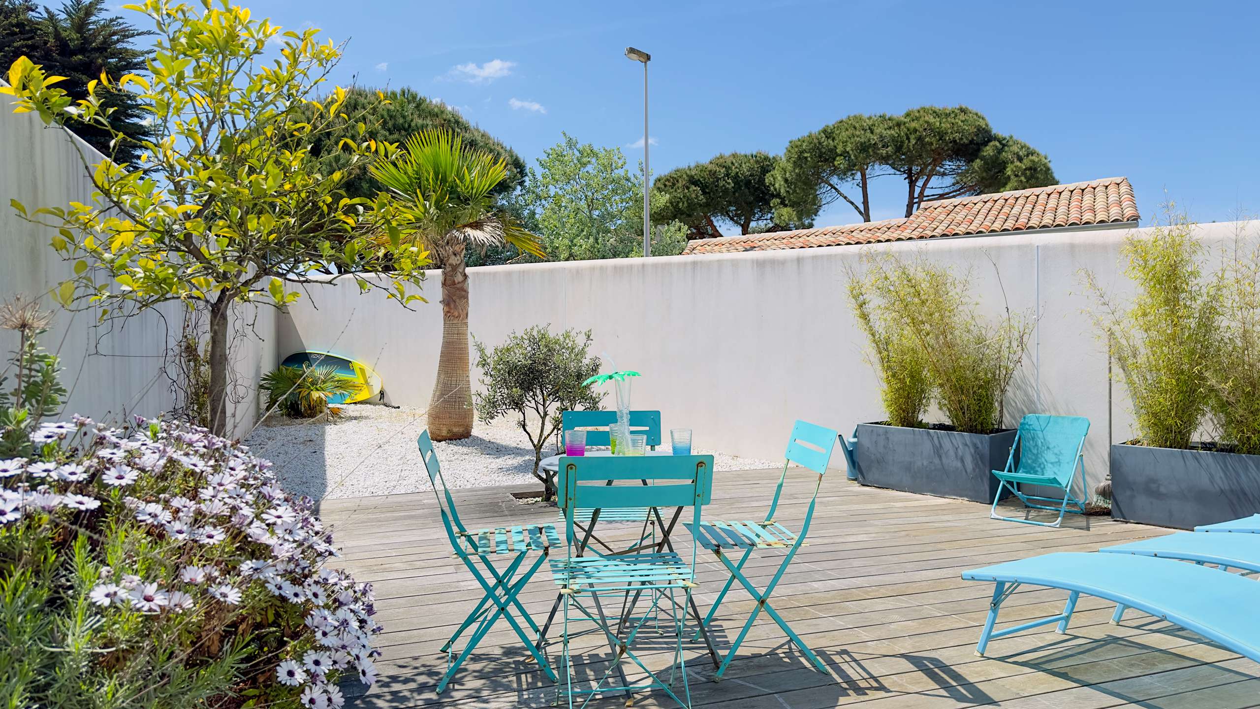 Beautiful villa on one level 150m from the beach with garden and courtyard! The main room is very bright with its kitchen open to the living room (HD TV and WIFI). On the night side, 3 bedrooms and 2 shower rooms in the house and a bedroom with shower room in the annex. Three enclosed courtyards of 220m² with garden furniture, outdoor shower, deckchairs, barbecue, electric awning, parasol. PARKING in front of the house. END OF STAY CLEANING AND MANDATORY LINEN (Sheets, towels, bath mats, tea towels)