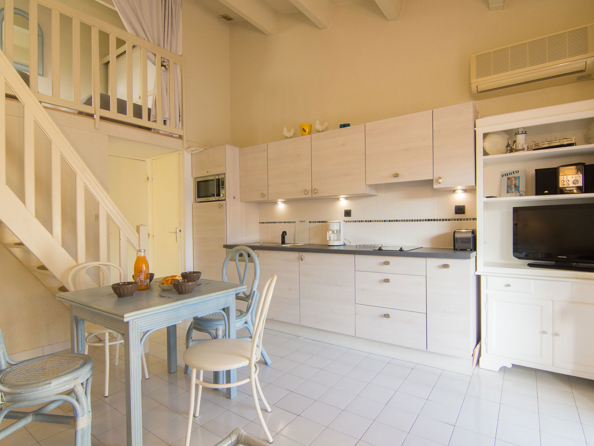 Residence "Les Cristallines". In the district of Richelieu, 400 m from the sea, 400 m from the beach. For shared use: swimming pool (12 x 6 m, depth 80 - 185 cm, seasonal availability: 28.May. - 30.Sep.). Parking at the house. Shop 400 m, grocery 1.4 km, restaurant 100 m, bakery 120 m, bus stop "Corsaires" 180 m, sandy beach "Richelieu" 400 m. Sports harbour 2 km, golf course (27 hole) 700 m, tennis 3 km. Nearby attractions: Aqualand 300 m, Ile des Loisirs 500 m, Musée de l'Ephèbe 2 km, Casino 2 km.