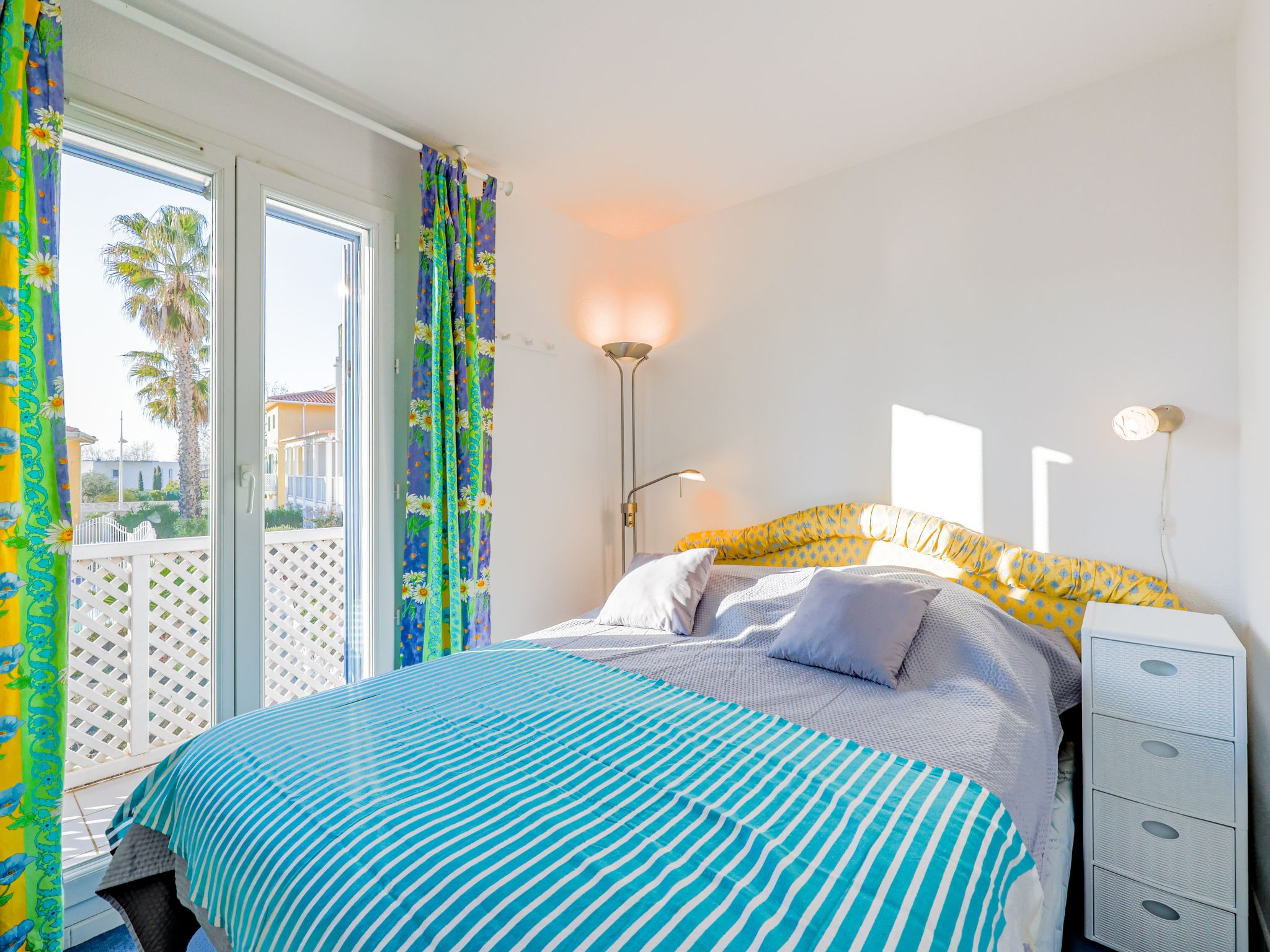 "La Belle Créole", 3-room terraced house 40 m2 on 2 levels. Bright: living/dining room with TV (flat screen). Exit to the terrace. Kitchen (dishwasher, 4 ceramic glass hob hotplates, toaster, microwave, electric coffee machine). Sep. WC. Heating, electric heating. Upper floor: 1 room with 1 french bed (140 cm, length 190 cm). 1 room with 1 x 2 bunk beds (90 cm, length 190 cm). Shower/WC. Terrace. Terrace furniture. View of the swimming pool. Facilities: washing machine. Internet (WiFi, extra). Reserved parking space n 139. Please note: suitable for families. Maximum 1 pet/ dog allowed. Smoke alarm.