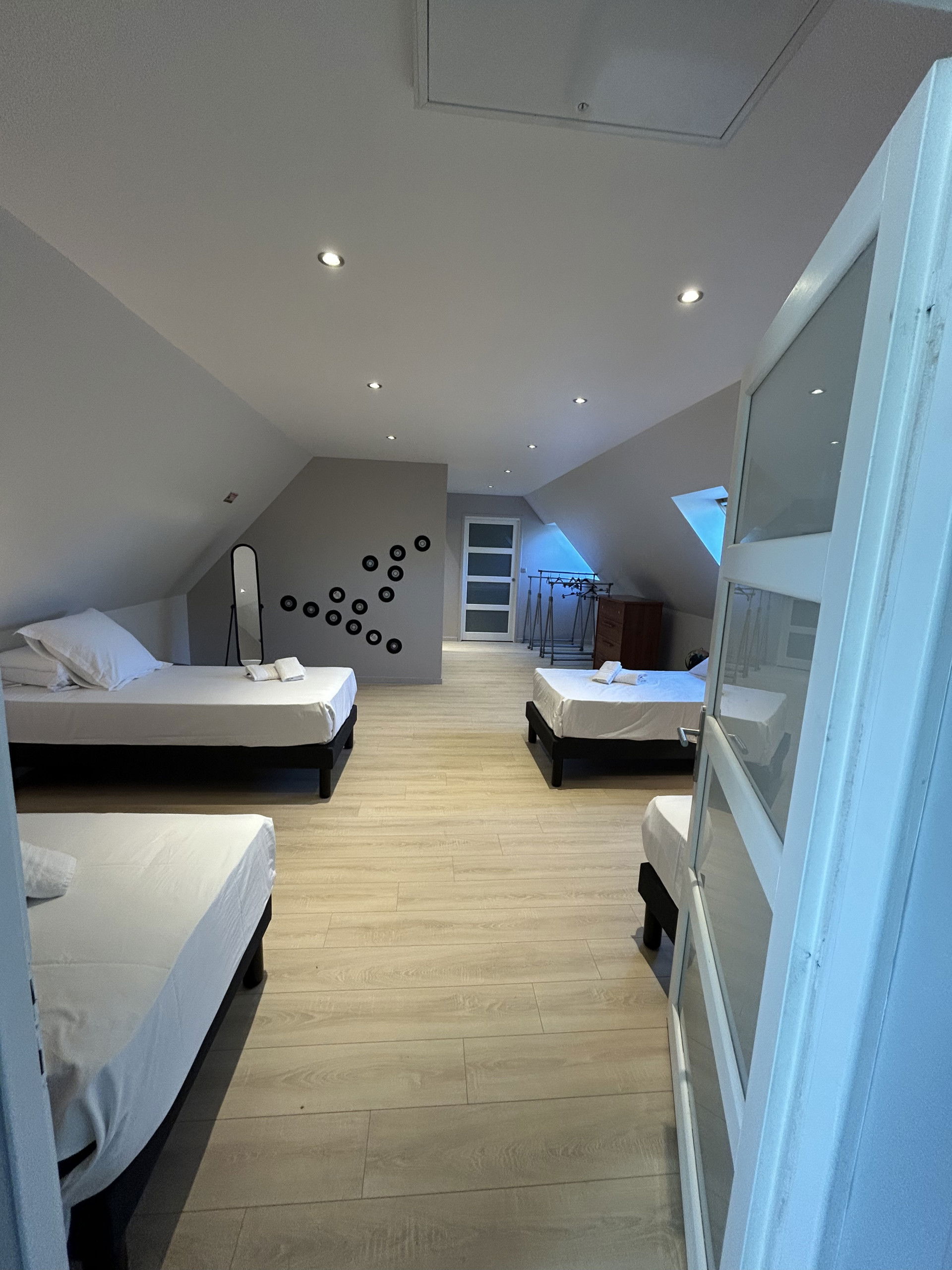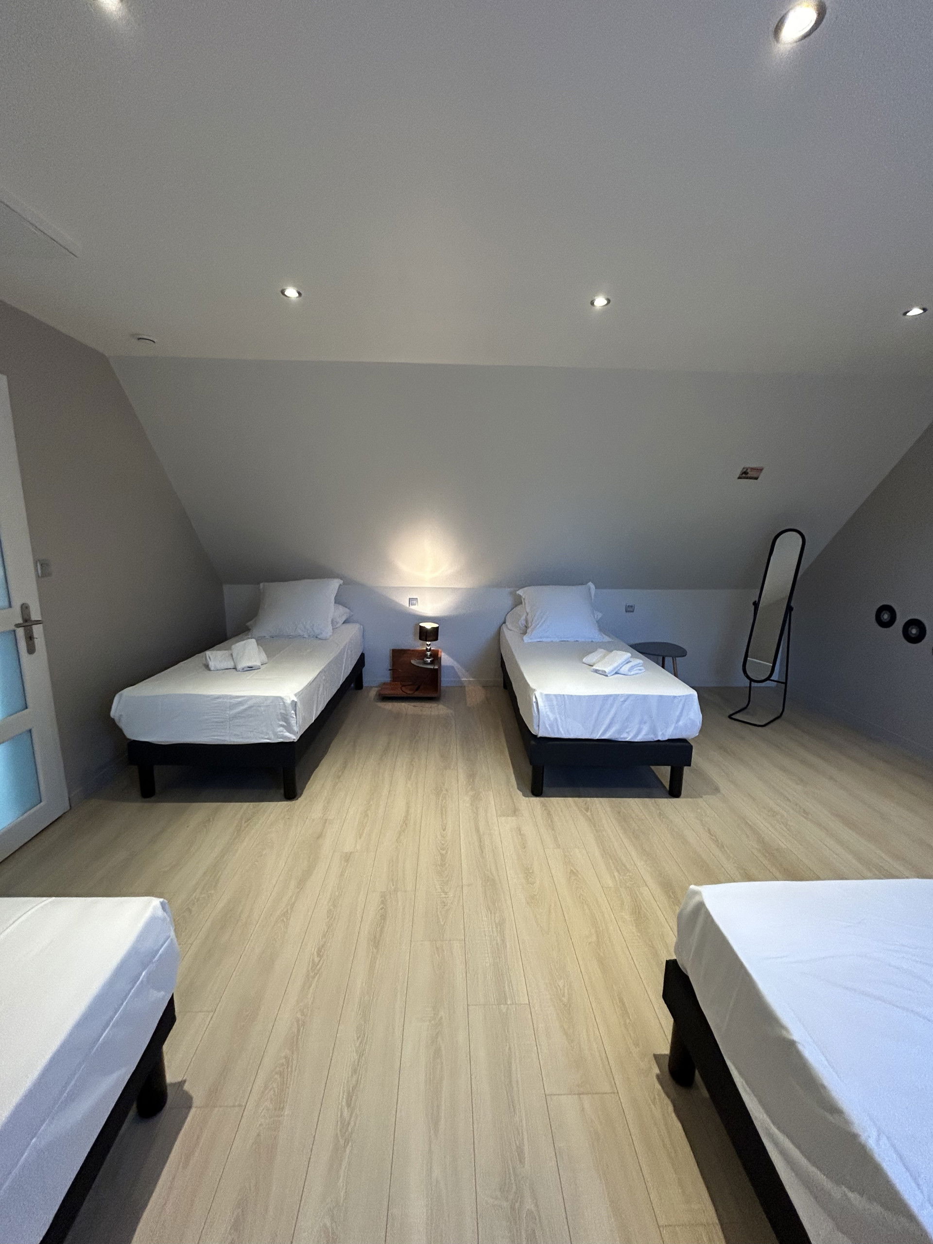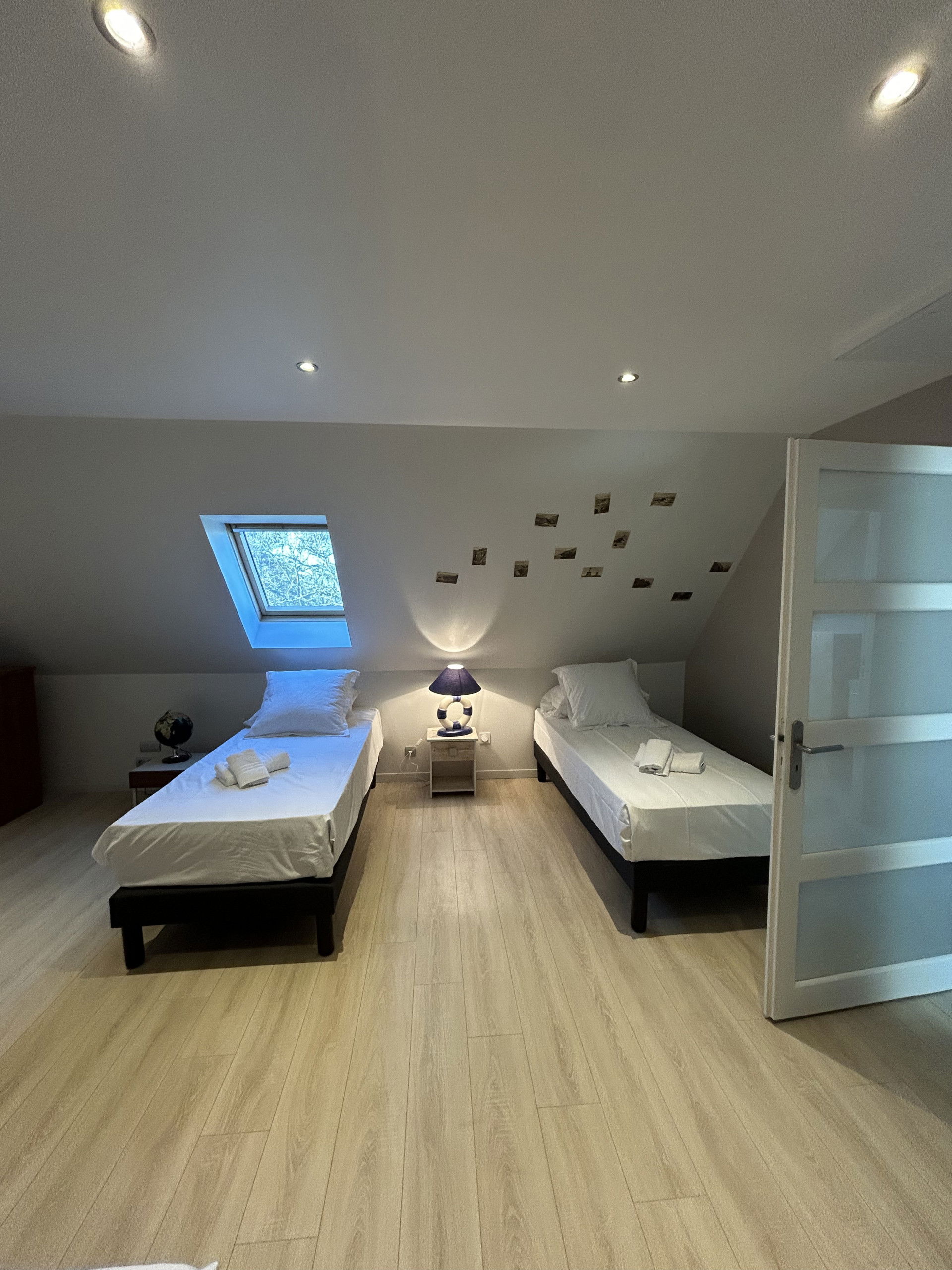 Upstairs, a large room with four single beds (90x200) has its own bathroom, ideal for children or friends.