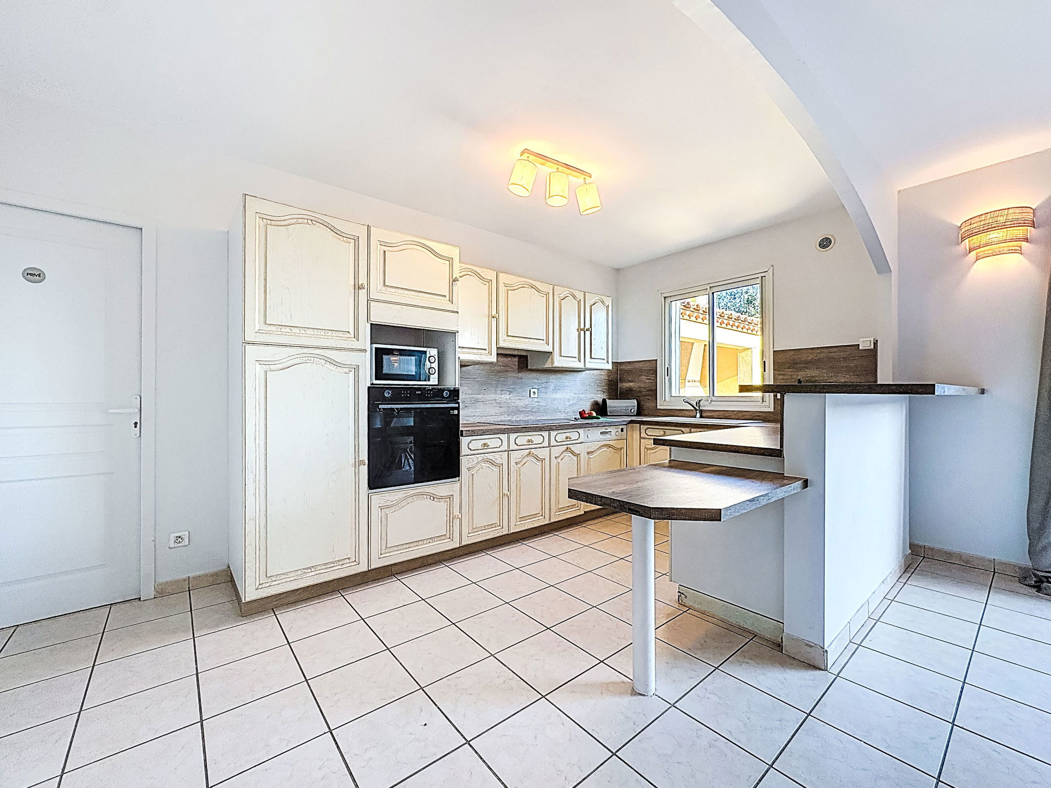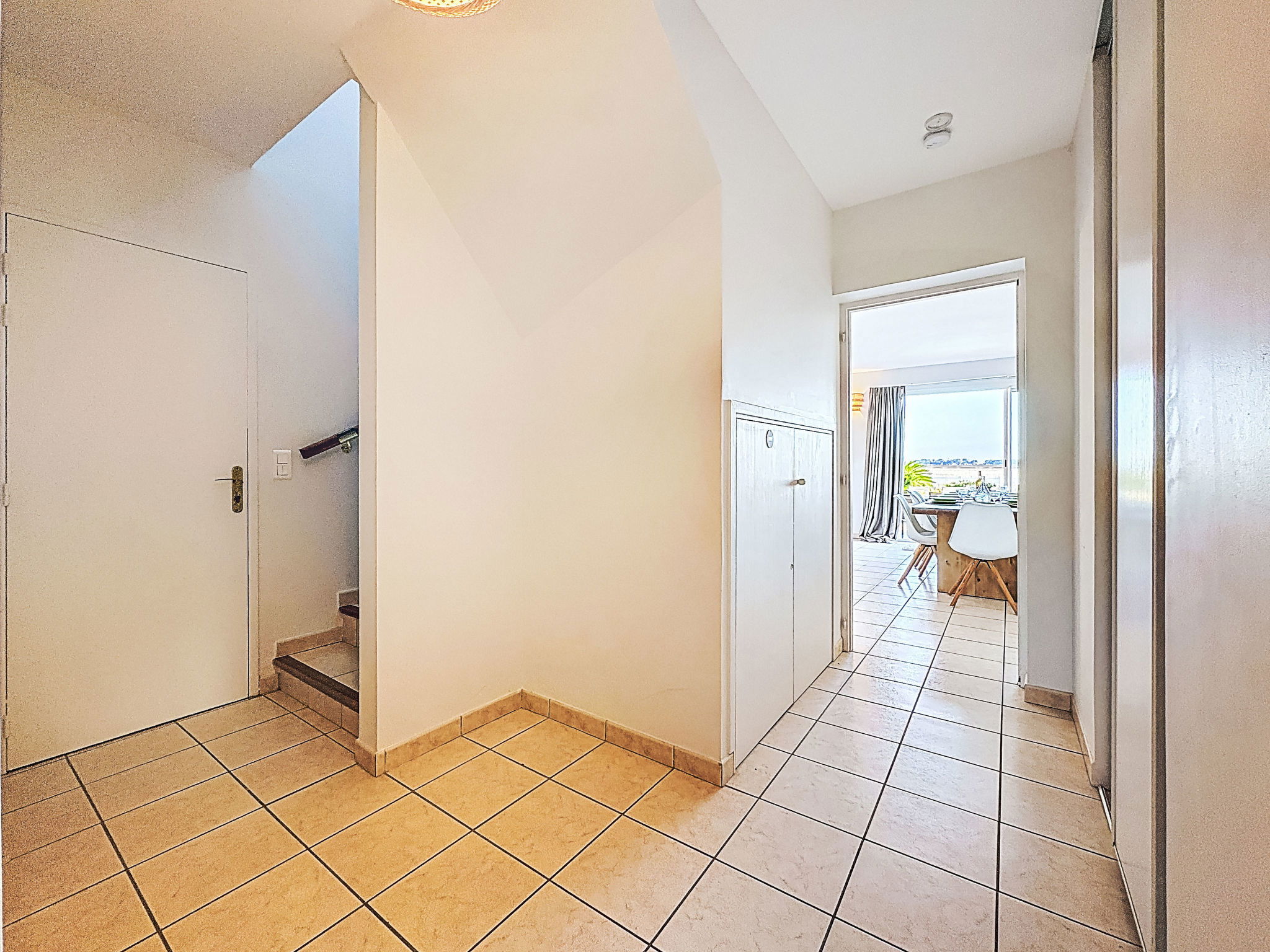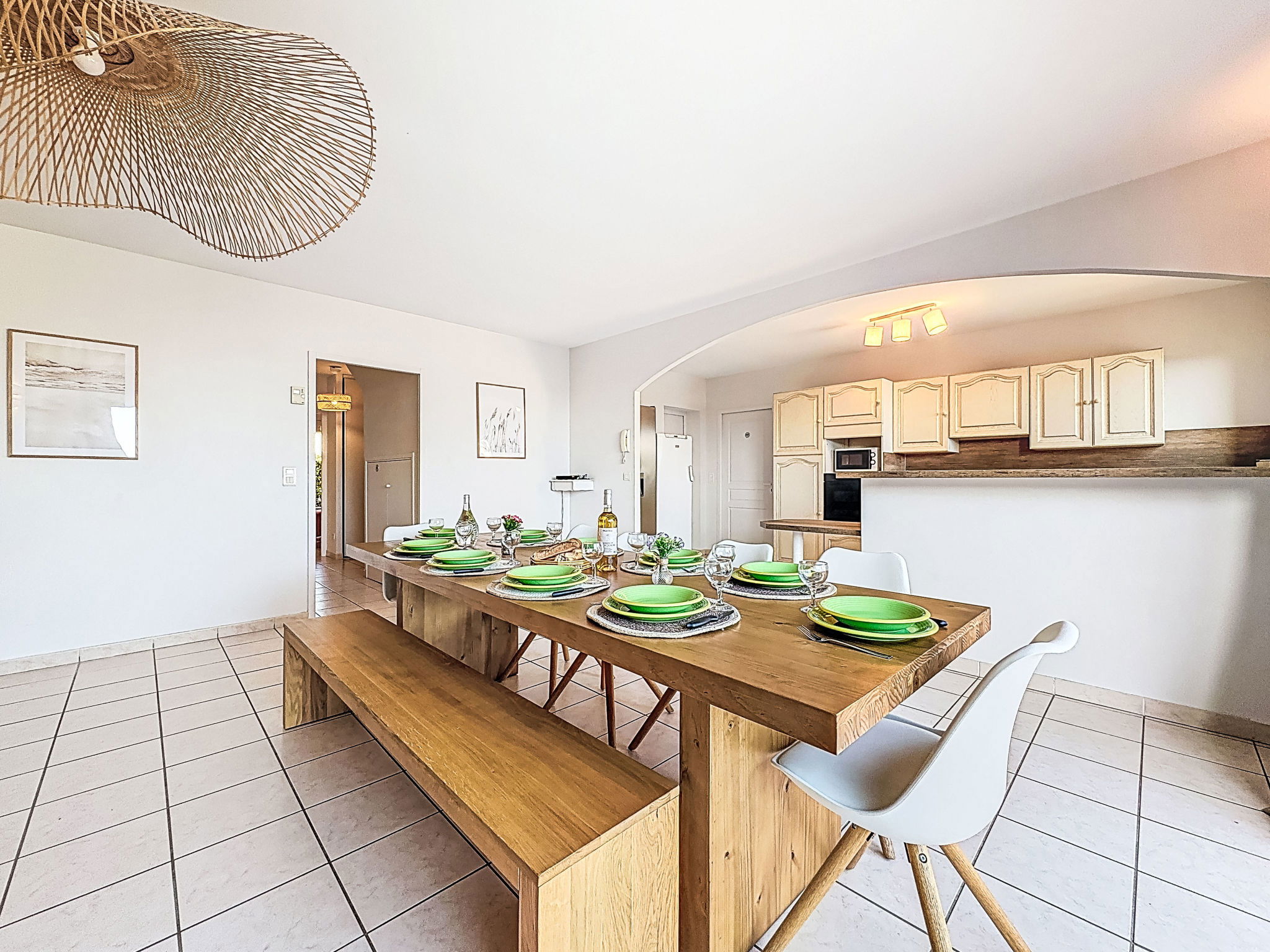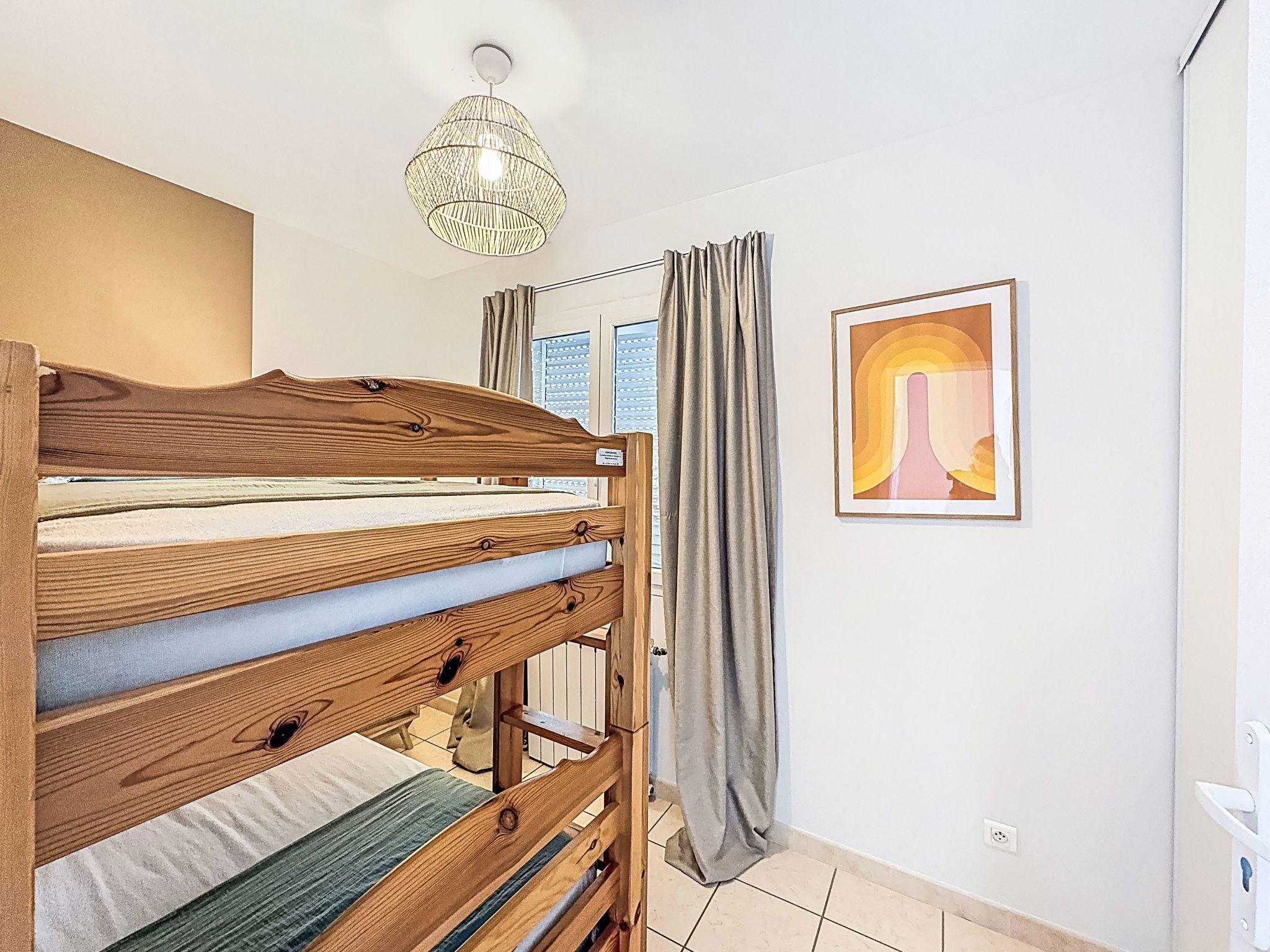 6-room villa 142 m2 on 2 levels. Beautiful furnishings: living/dining room 40 m2 with TV and DVD. 1 room with 1 french bed (160 cm, length 200 cm). 1 room with 2 beds (90 cm, length 190 cm). Open kitchen (4 hot plates, oven, dishwasher, microwave, freezer) with hatch. Bath/shower, sep. WC. Upper floor: 2 rooms, each room with 1 french bed (160 cm, length 200 cm). 1 room with 1 x 2 bunk beds (90 cm, length 190 cm). Shower/WC. Heating. Terrace 100 m2, south-east facing position. Terrace furniture, deck chairs (8). Beautiful view. Facilities: washing machine. Internet (WiFi, free). Parking, garage. Please note: maximum 1 pet/ dog allowed. Smoke alarm.