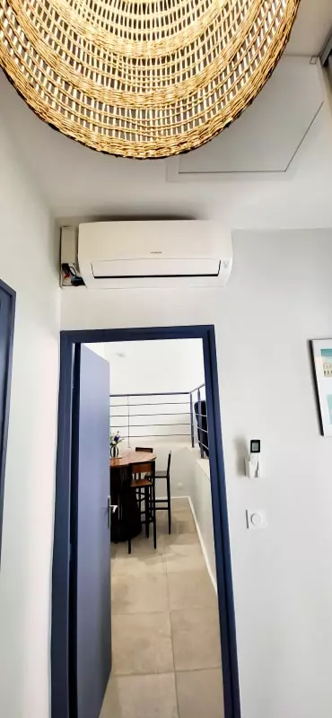 3 double bedrooms (160 cm beds) with air conditioning, 50 m from the beach and 300 m from the town centre, up to 6 people: 6 adults and/or children or young teenagers,