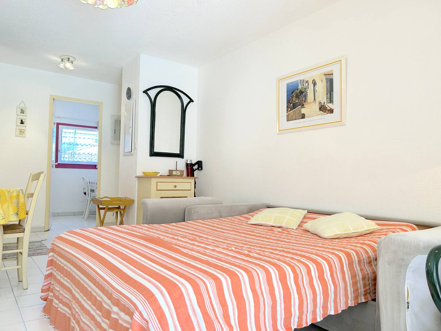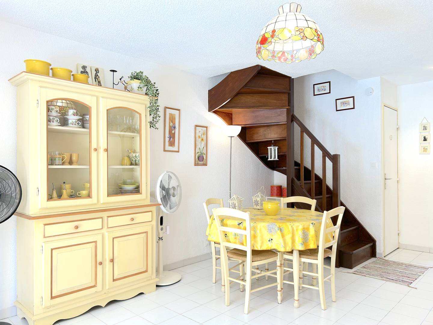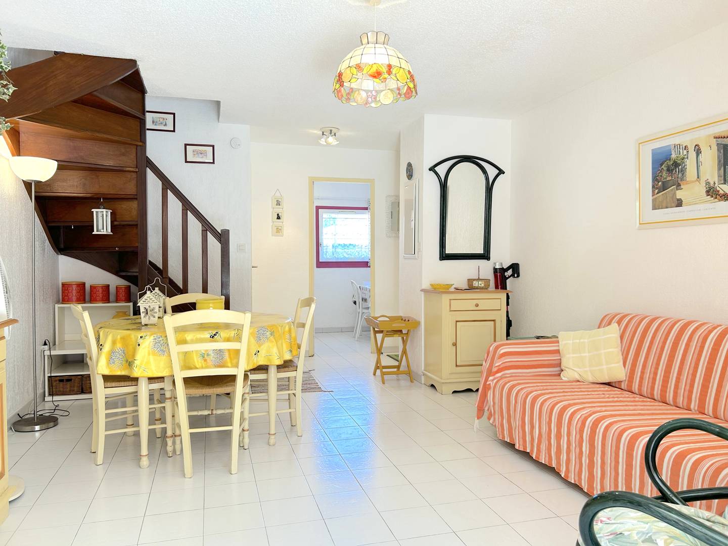 This duplex mazet offers you on the garden level a sunny terrace, a living room with convertible sofa, an equipped kitchen, a shower, a separate toilet, and upstairs a bedroom with a double bed, a bedroom with two single beds and a bathroom with toilet.