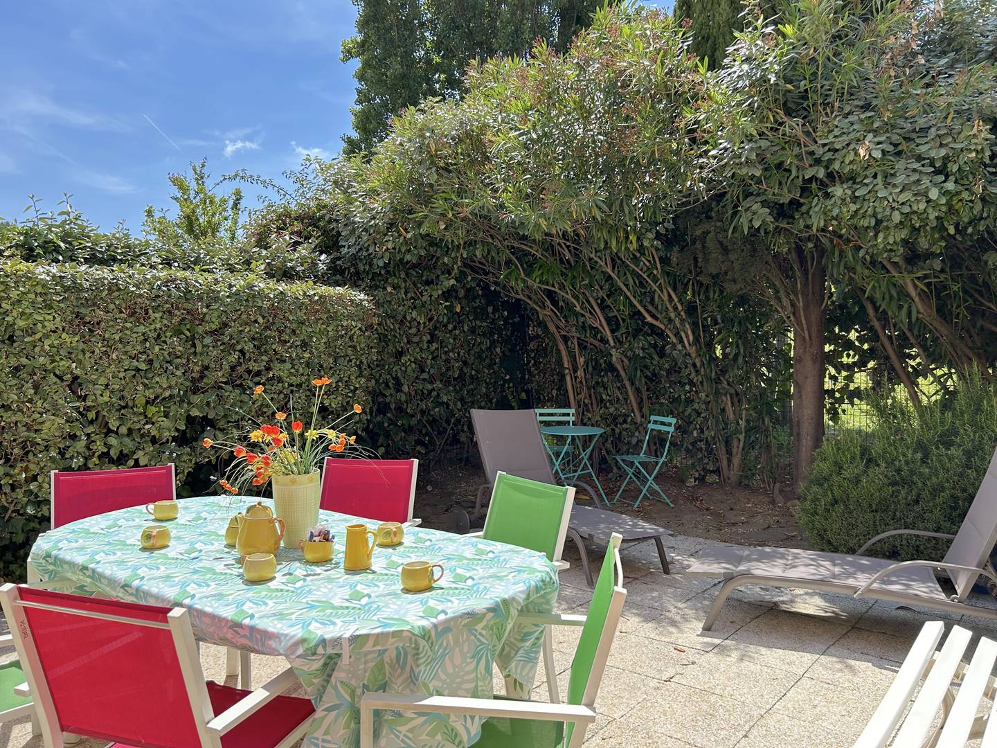 The advantages of this vacation rental: swimming pool, terrace with solar awning, view of the gardens, quiet, private parking.