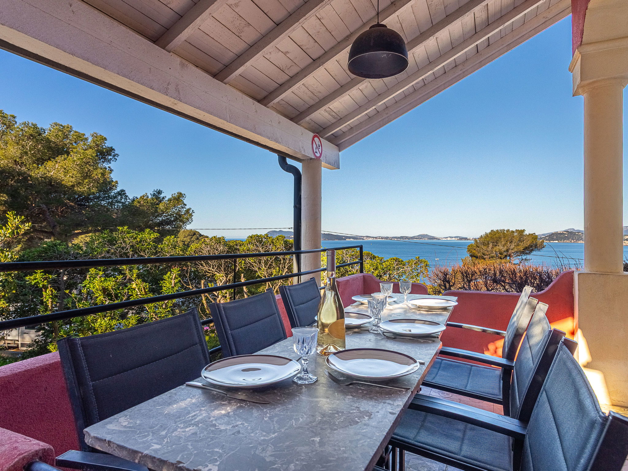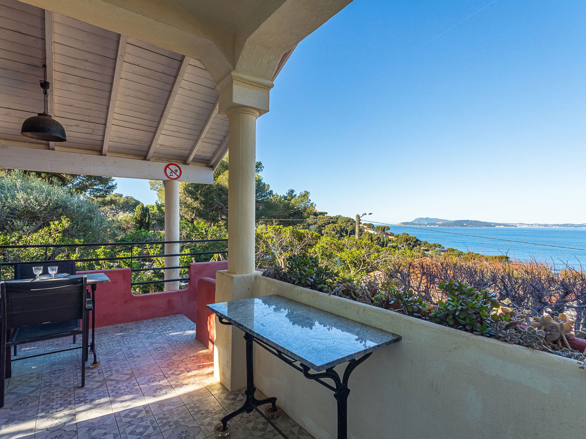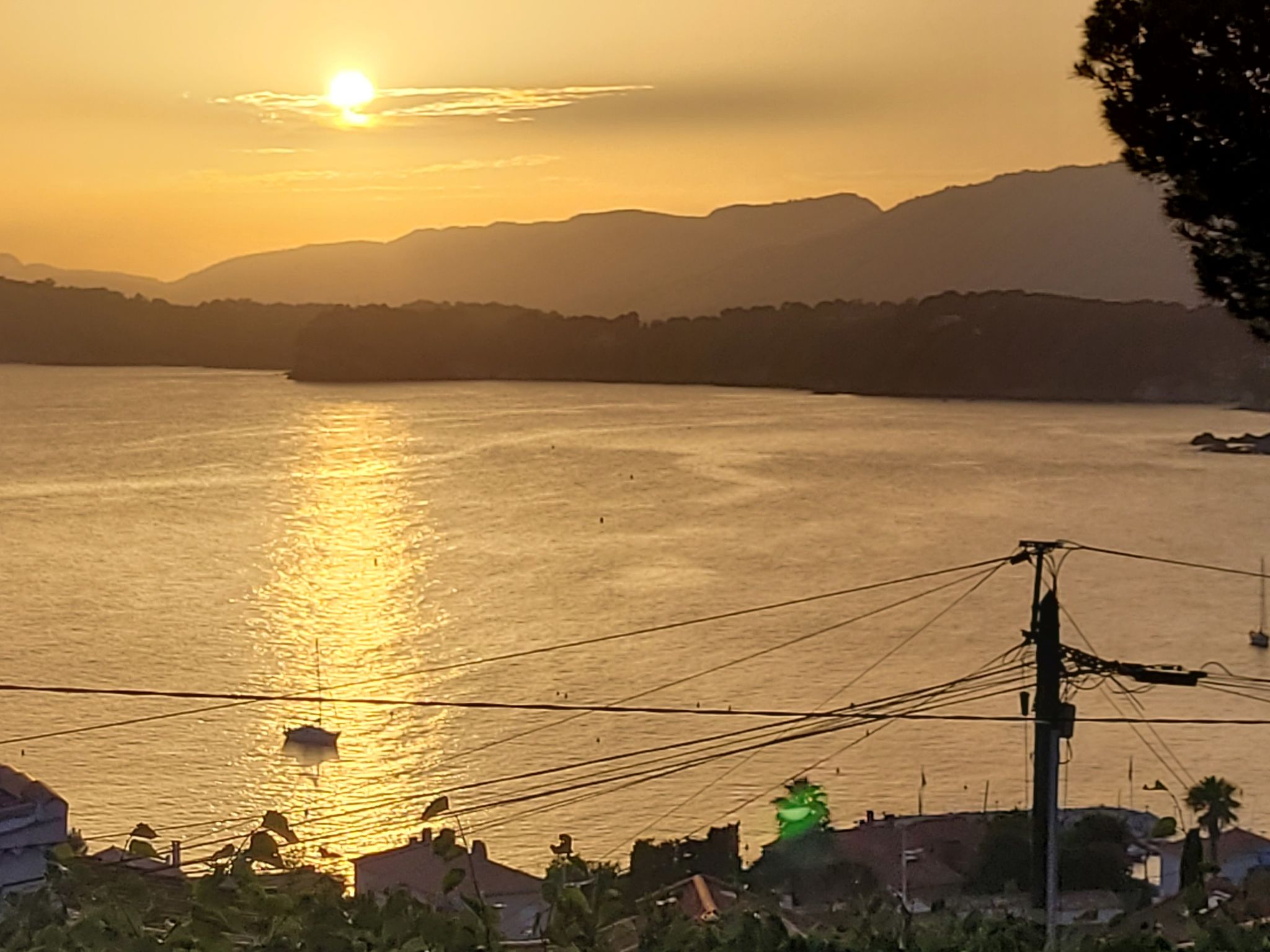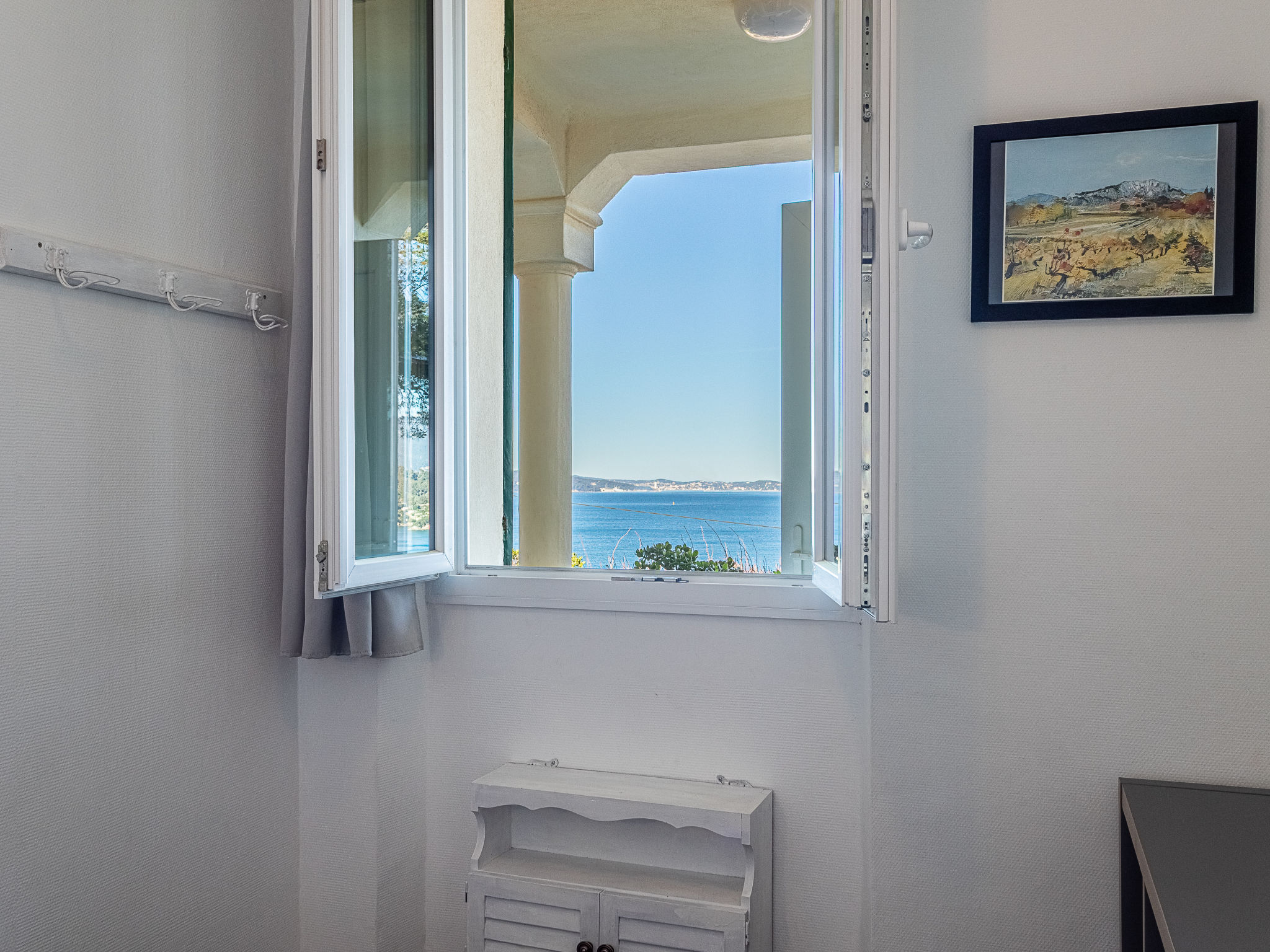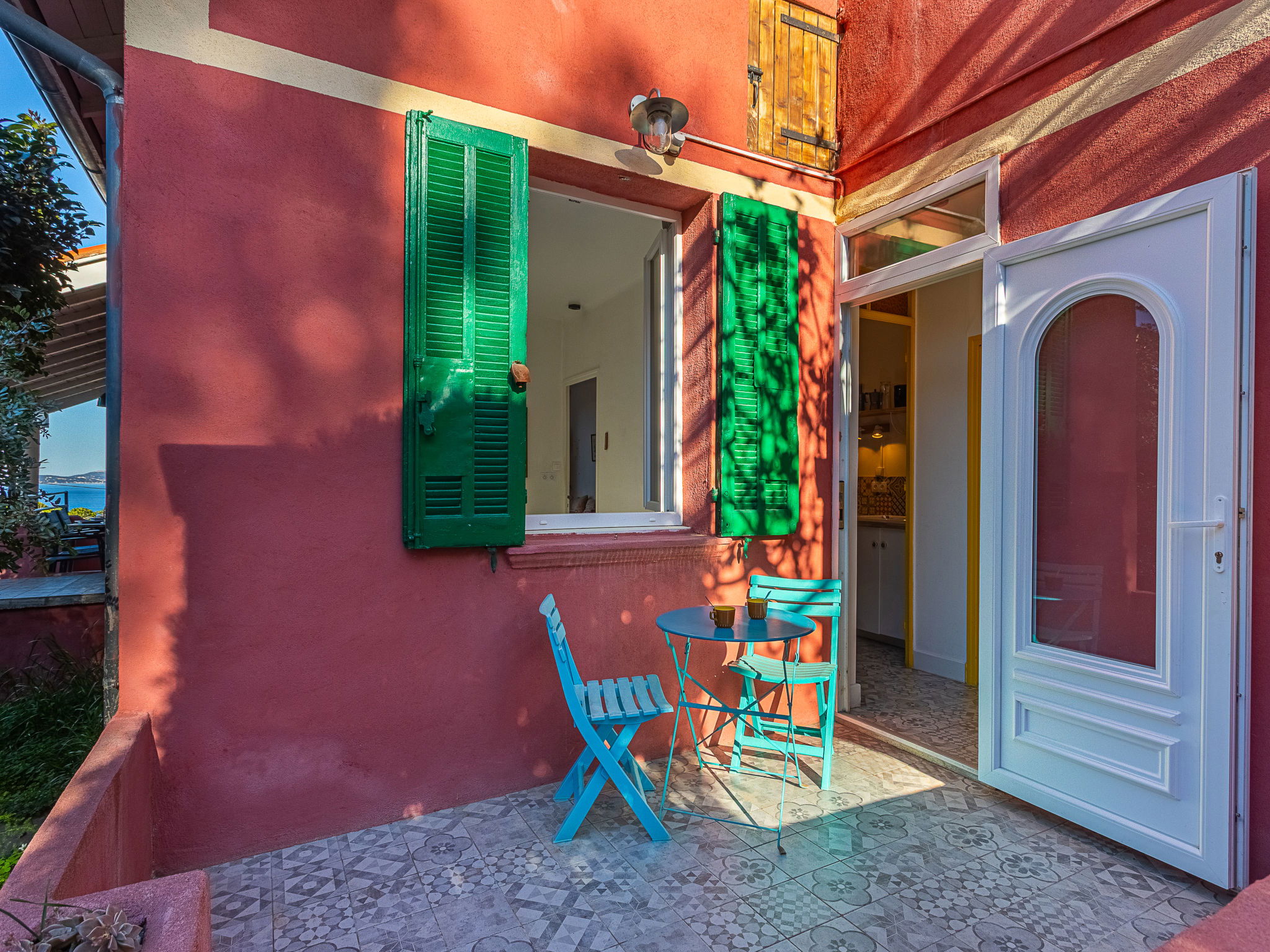 4-room villa 52 m2 on 2 levels. Spacious and bright, comfortable and beautiful furnishings: living/dining room with dining table, TV, flat screen and air conditioning. Exit to the terrace. 1 room with 1 french bed (160 cm, length 190 cm). 1 small room with 1 double bed (120 cm, length 190 cm). Kitchenette (oven, dishwasher, 3 induction hot plates, toaster, kettle, microwave, freezer, electric coffee machine). Shower, sep. WC. Electric heating. On the lower ground floor: (exterior staircase), 1 room with 1 french bed (140 cm, length 190 cm), shower/WC. Exit to the garden. Terrace 10 m2, terrace 7 m2. Terrace furniture. Very beautiful view of the sea and the garden. Facilities: washing machine, hair dryer. Internet (WiFi, free). Parking (2 cars). Please note: 1 small pet/ dog allowed. TV only FR. Smoke alarm. Offer by a private individual according to Art. 155, IV of CGI.