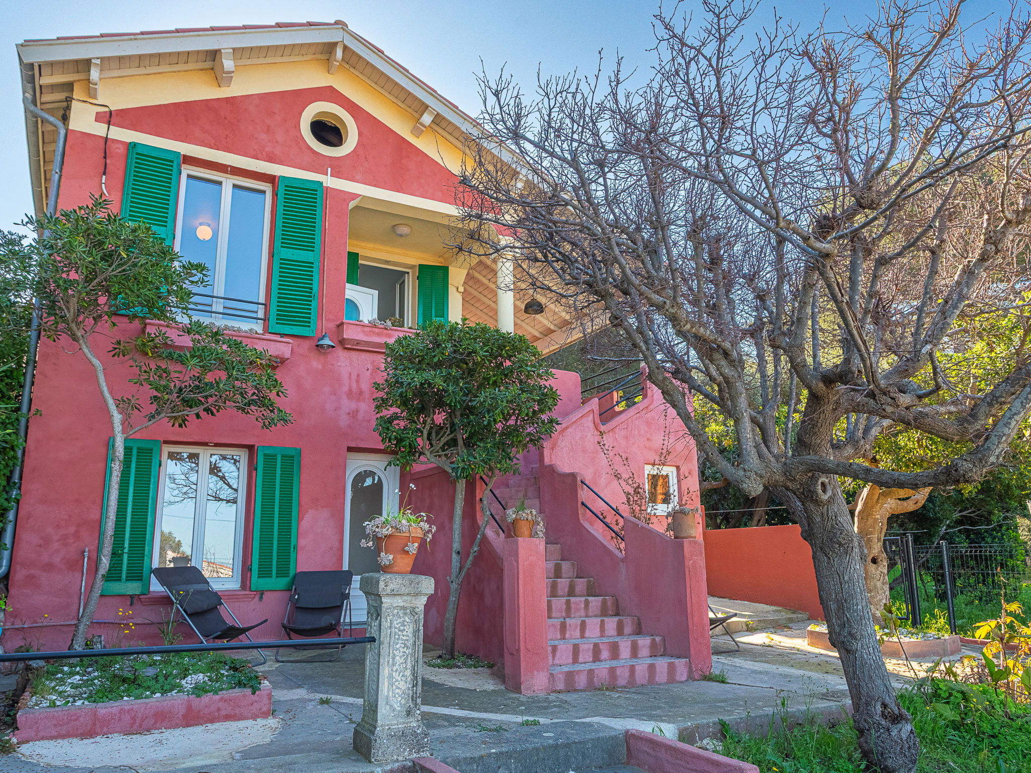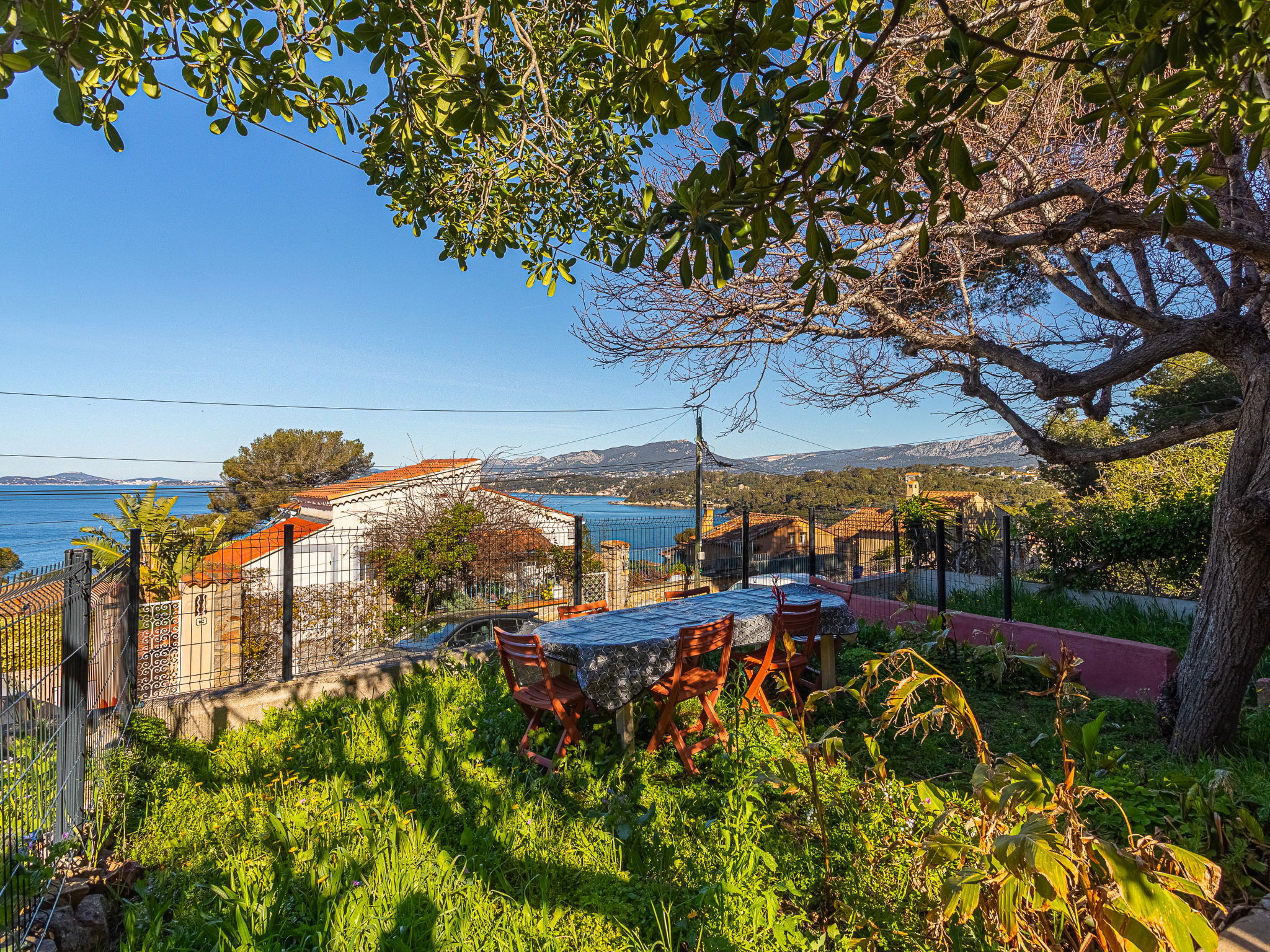 Le Pradet: Villa "Le Provençal", built in 1930, renovated in 2021, surrounded by trees. In a quiet position residential area (villas), 500 m from the sea, 900 m from the beach. Private: property 800 m2 (fenced), natural garden 200 m2 (fenced), parking on the premises. Shop 8.5 km, grocery 700 m, supermarket 3.3 km, shopping centre 8.5 km, restaurant 900 m, bakery 2.6 km, café 2.7 km, bus stop "Collet Redon" 400 m, sandy beach "plage de la Garonne". Sports harbour 2.4 km, golf course (18 hole) 6.8 km, surf school, sailing school 650 m. Nearby attractions: Musée de la mine de Cap Garonne 3.1 km. Hiking paths: Espace Nature 4.8 km. Please note: car recommended. The owner does not accept any groups. The keys‘ handover takes place by the agency in Hyères le Port, 18 km. Neighbourhood highly sensitive to noise. Quietness and good behaviour expected.