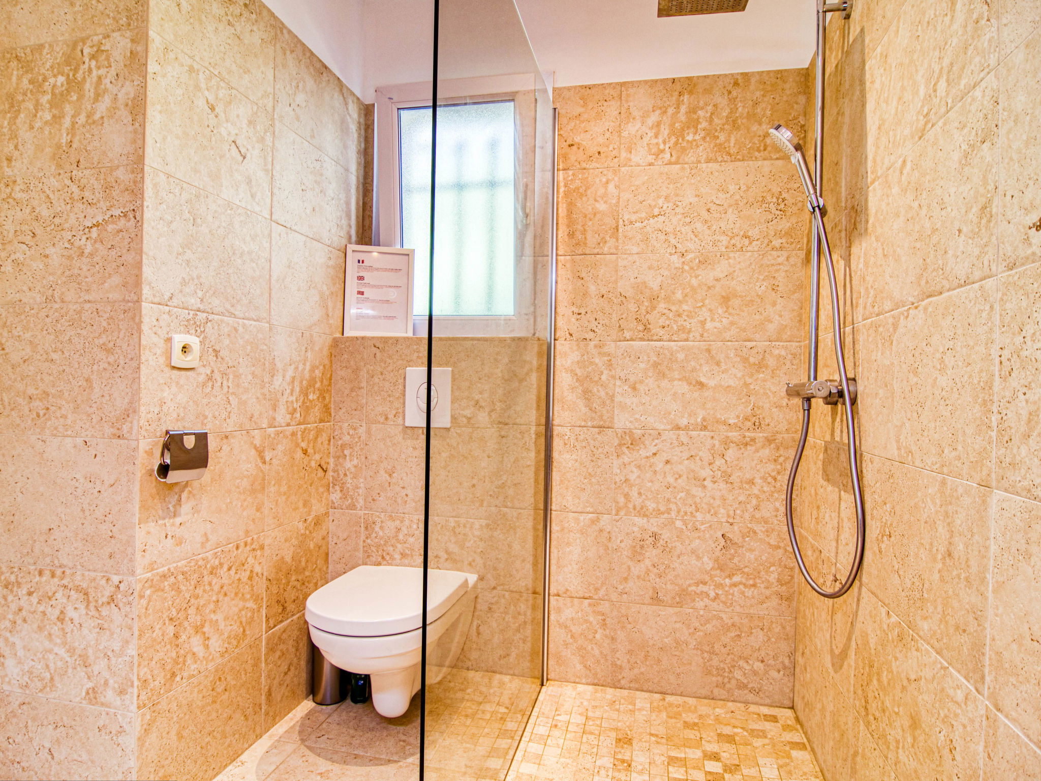 "Villa Hestia", 5-room villa 135 m2. Comfortable and beautiful furnishings: entrance hall. Living/dining room with open-hearth fireplace (only for decoration), dining table and TV (flat screen), air conditioning. Exit to the terrace. 1 room with 1 french bed (160 cm, length 200 cm), shower/WC. Exit to the terrace. 2 rooms, each room with 1 french bed (160 cm, length 200 cm), shower/WC. 1 room with 2 beds (90 cm, length 190 cm). Kitchen (oven, dishwasher, 3 induction hot plates, toaster, kettle, microwave, freezer, electric coffee machine) with small dining table. Exit to the terrace. Bathroom, sep. WC. Electric heating. 2 large terraces. Terrace furniture, electric barbecue, deck chairs (6). Facilities: washing machine, iron, baby cot for up to 3 year olds. Internet (WiFi, free). Please note: suitable for families. Non-smoking house. Maximum 1 pet/ dog allowed. Smoke alarm. Offer by a private individual according to Art. 155, IV of CGI.