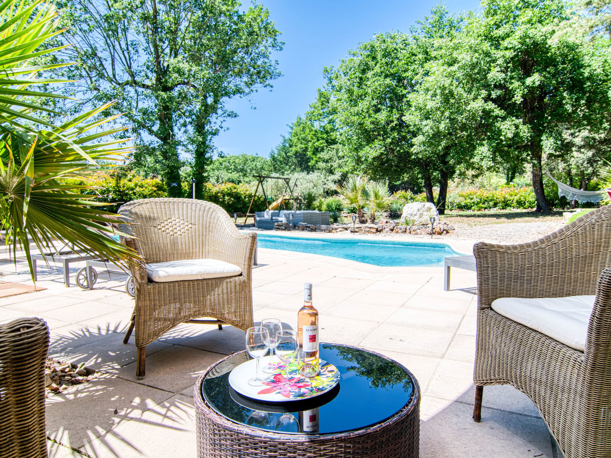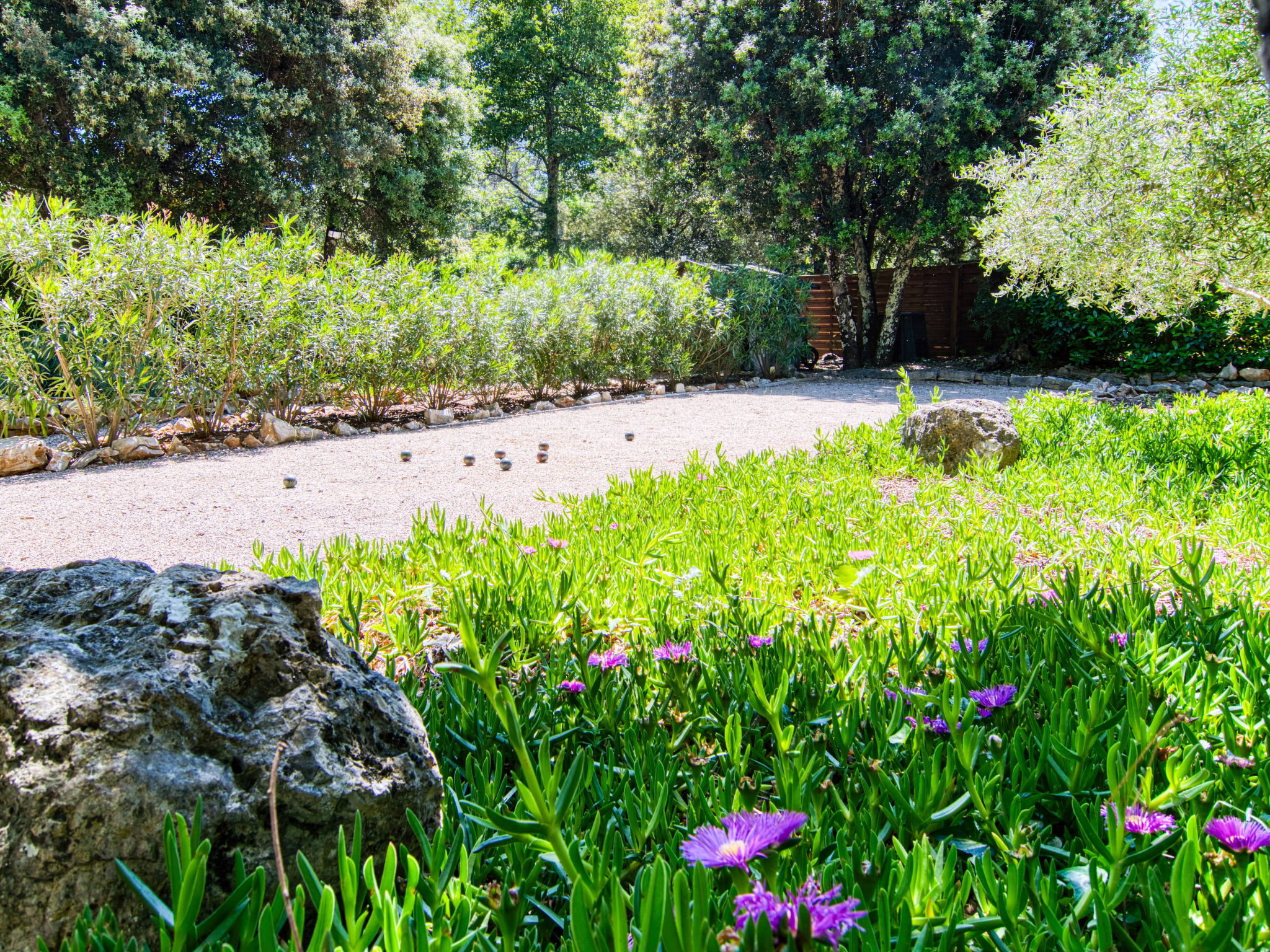 6 km from the centre of Le Thoronet, 14 km from the centre of Lorgues, 27 km from the centre of Draguignan, in the residential district. Private: property 2'500 m2 (fenced), beautiful garden to relax, swimming pool kidney shaped (10 x 4 m, seasonal availability: 01.Jan. - 31.Dec.) with alarm system. Outdoor shower, boules, parking (for 4 cars) on the premises. Grocery 6 km, supermarket 10 km, restaurant 6 km, bar 6 km, bakery 6 km, café 6 km, bus stop 8 km, railway station "Les Arcs Draguignan" 15 km, sandy beach "La Nartelle". Golf course (18 hole) 26 km, riding stable 8 km, fishing possibilities 19 km. Nearby attractions: Abbaye du Thoronet, Chute du Caramy, Vallon Sourn, Sillans la cascade, Cotignac, Tourtour. Well-known lakes can easily be reached: Lac de Carcès (pêche uniquement) 19 km, Lac de Sainte croix 57 km. Hiking paths: Plaine des Maures, Gorges du Verdon. Please note: car recommended. The owner does not accept any youth groups.