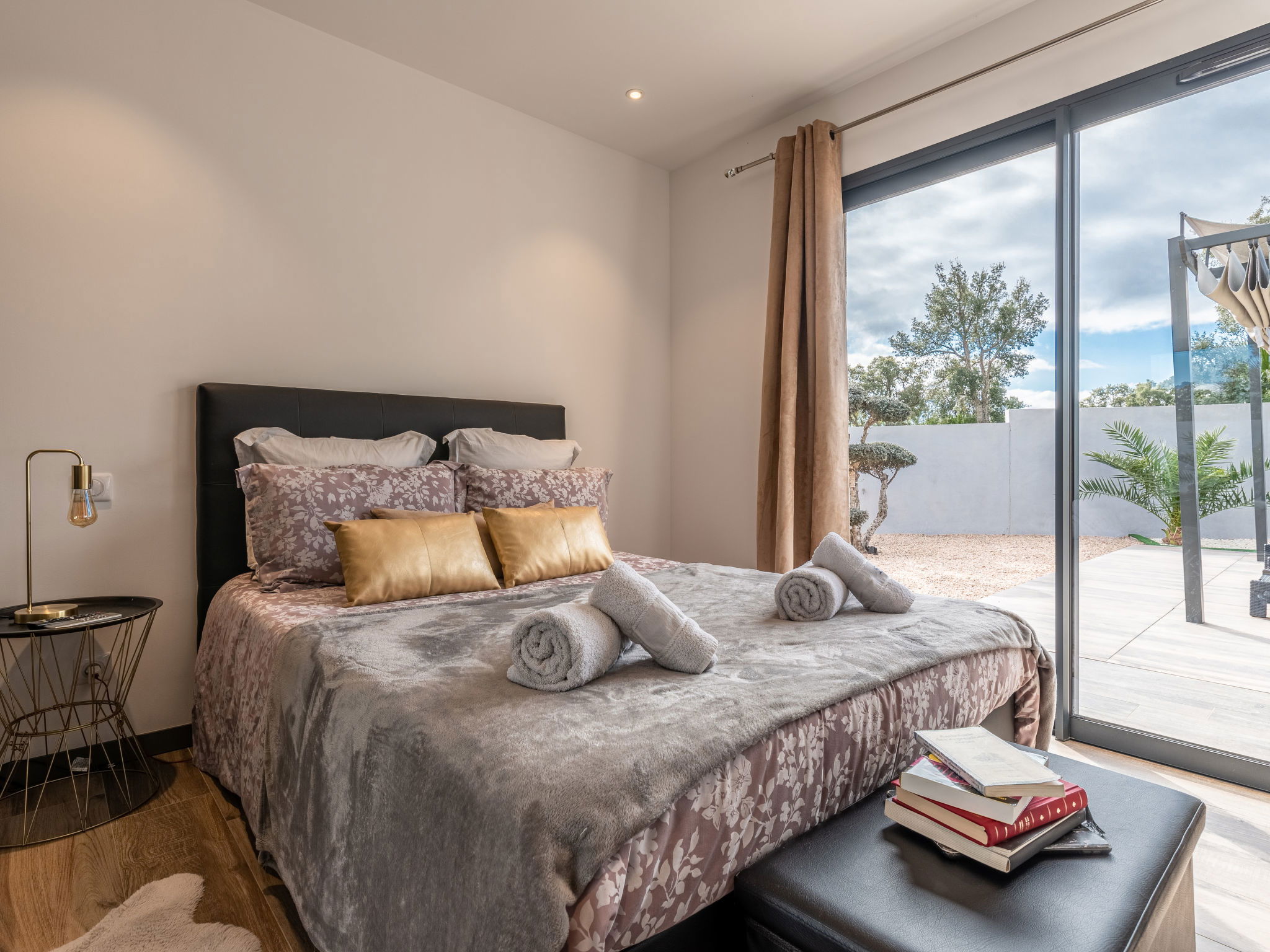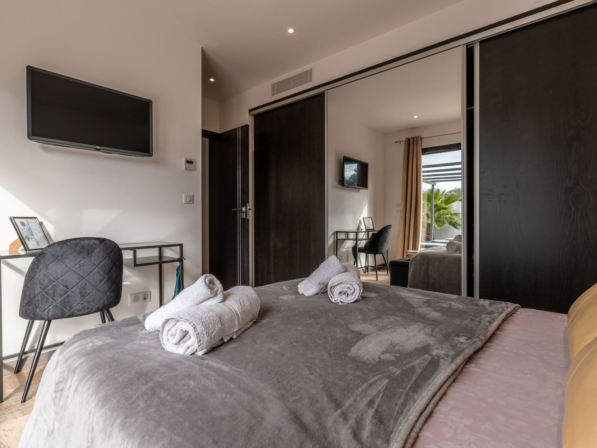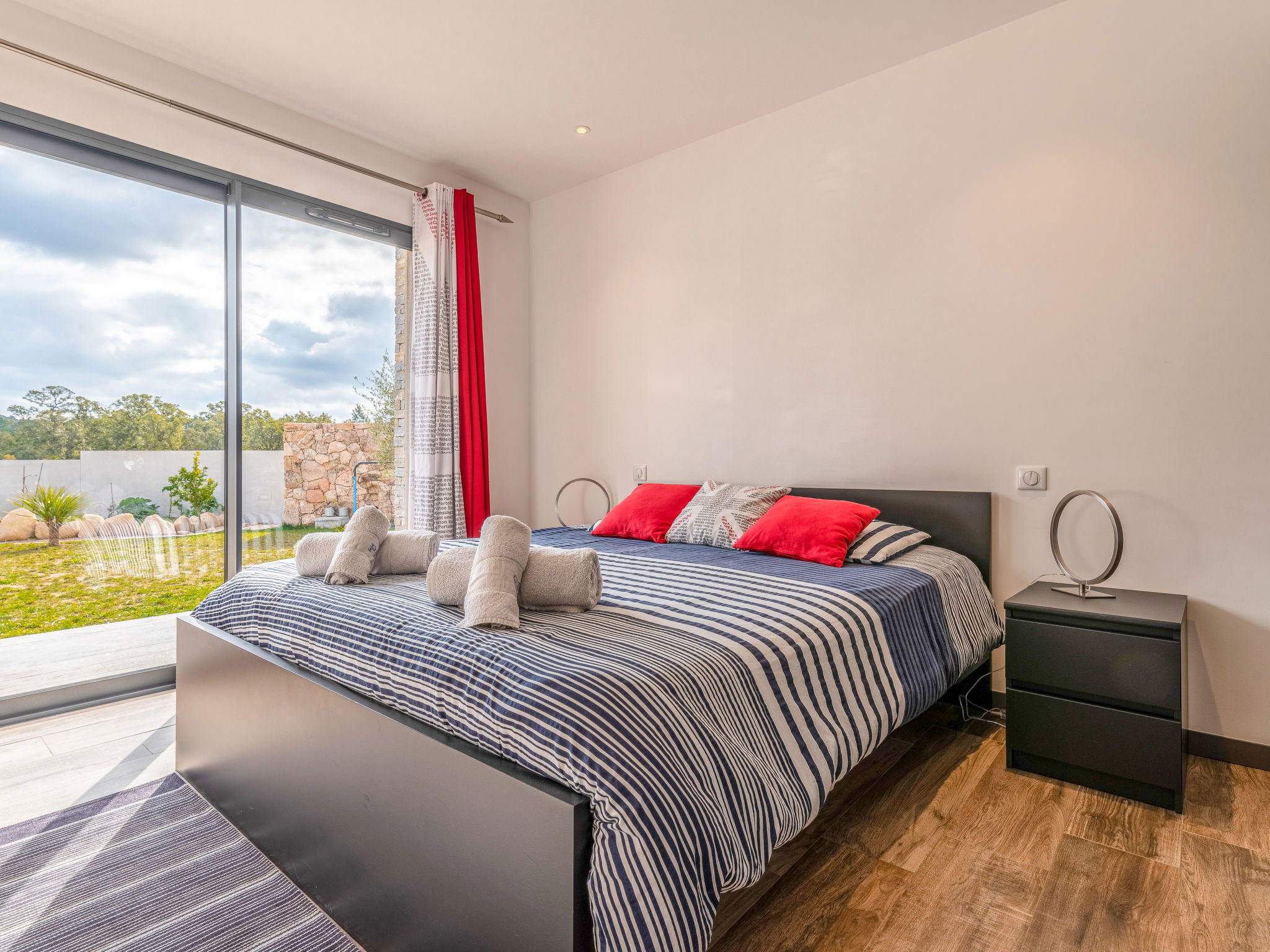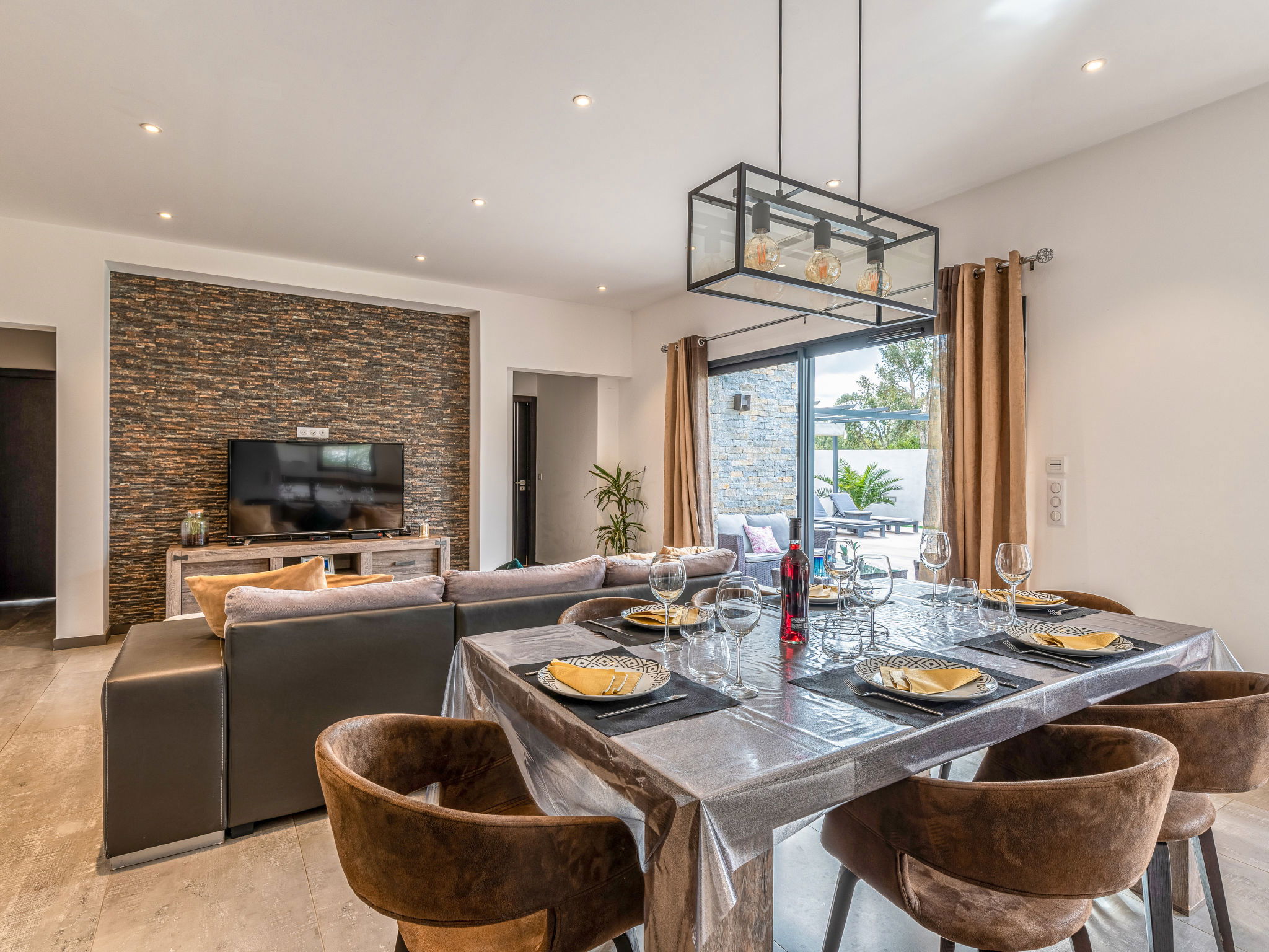 "Villa les lieges", 5-room villa 150 m2. Comfortable and modern furnishings: living/dining room with TV (flat screen), air conditioning. Exit to the terrace. 1 room with Dressing room with 1 french bed (160 cm, length 190 cm), shower/WC and TV (flat screen). 1 room with 1 french bed (140 cm, length 190 cm), shower/WC and TV (flat screen). 1 room with 1 french bed (140 cm, length 190 cm), shower/WC and TV (flat screen). 1 room with 1 french bed (160 cm, length 190 cm), bath/WC and TV (flat screen). Exit to the terrace. Open kitchen (oven, dishwasher, 1 induction hot plates, 3 gas rings, toaster, kettle, microwave, electric coffee machine) with dining table. Exit to the terrace. Sep. WC. Electric heating, air-conditioning. Large terrace 100 m2. Terrace furniture, barbecue, deck chairs (4). Facilities: washing machine. Internet (WiFi, free). Reserved parking (3 cars). Please note: non-smokers only. Smoke alarm. Offer by a private individual according to Art. 155, IV of CGI.