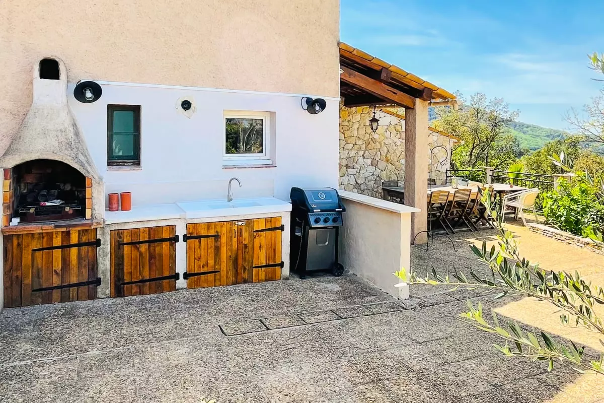 At the heart of this lush setting, you'll find a saltwater swimming pool, perfect for cooling off on hot summer days. Next door, a summer kitchen with a barbecue awaits you for preparing delicious grilled dishes, promising enjoyable moments of conviviality.