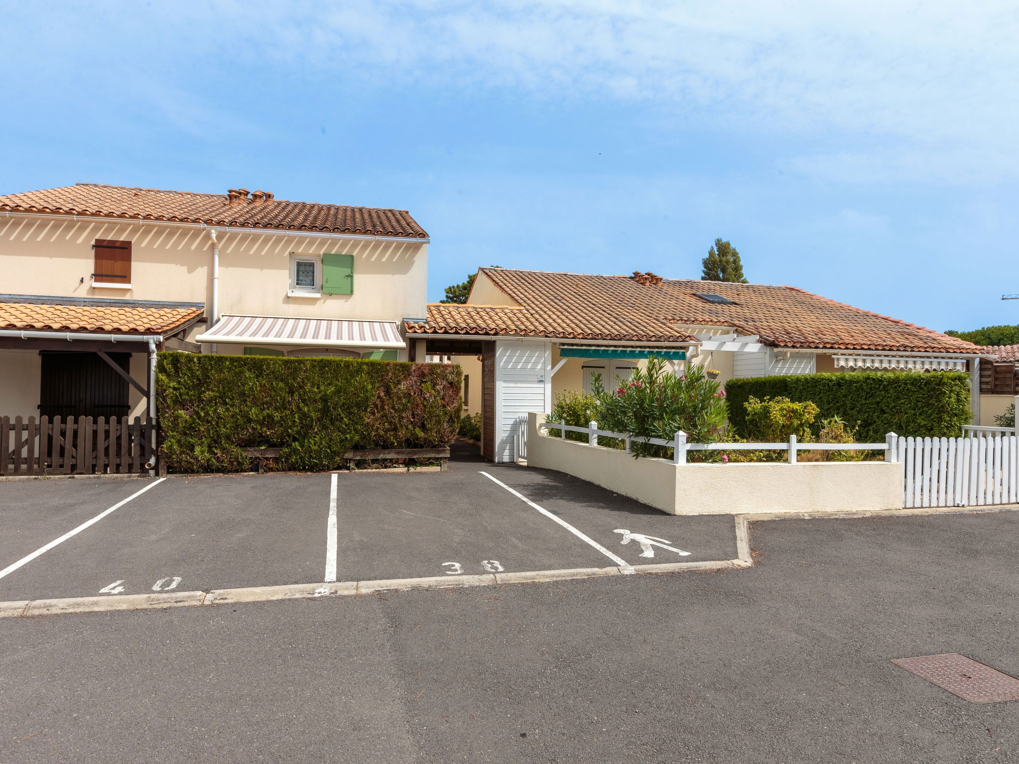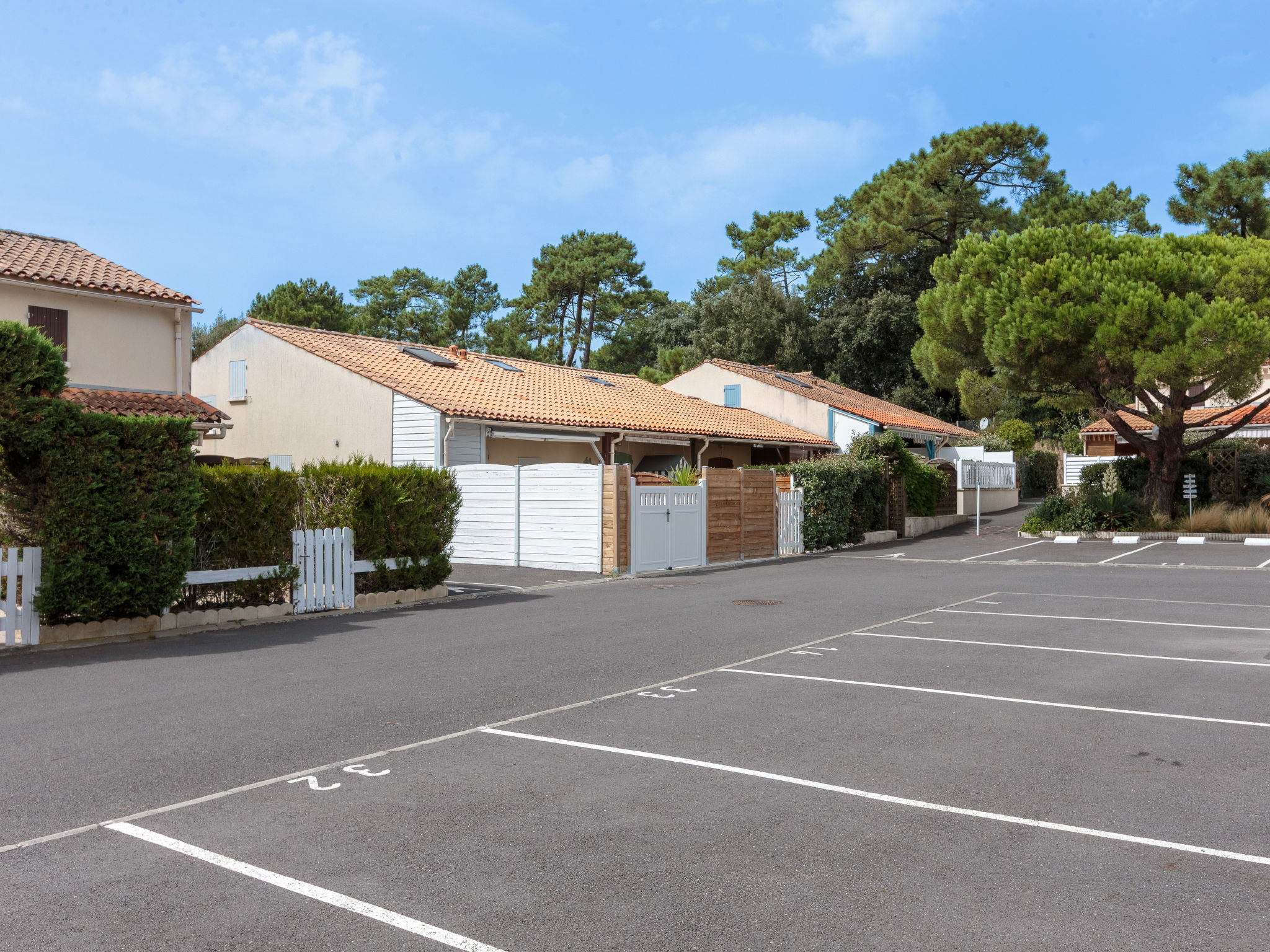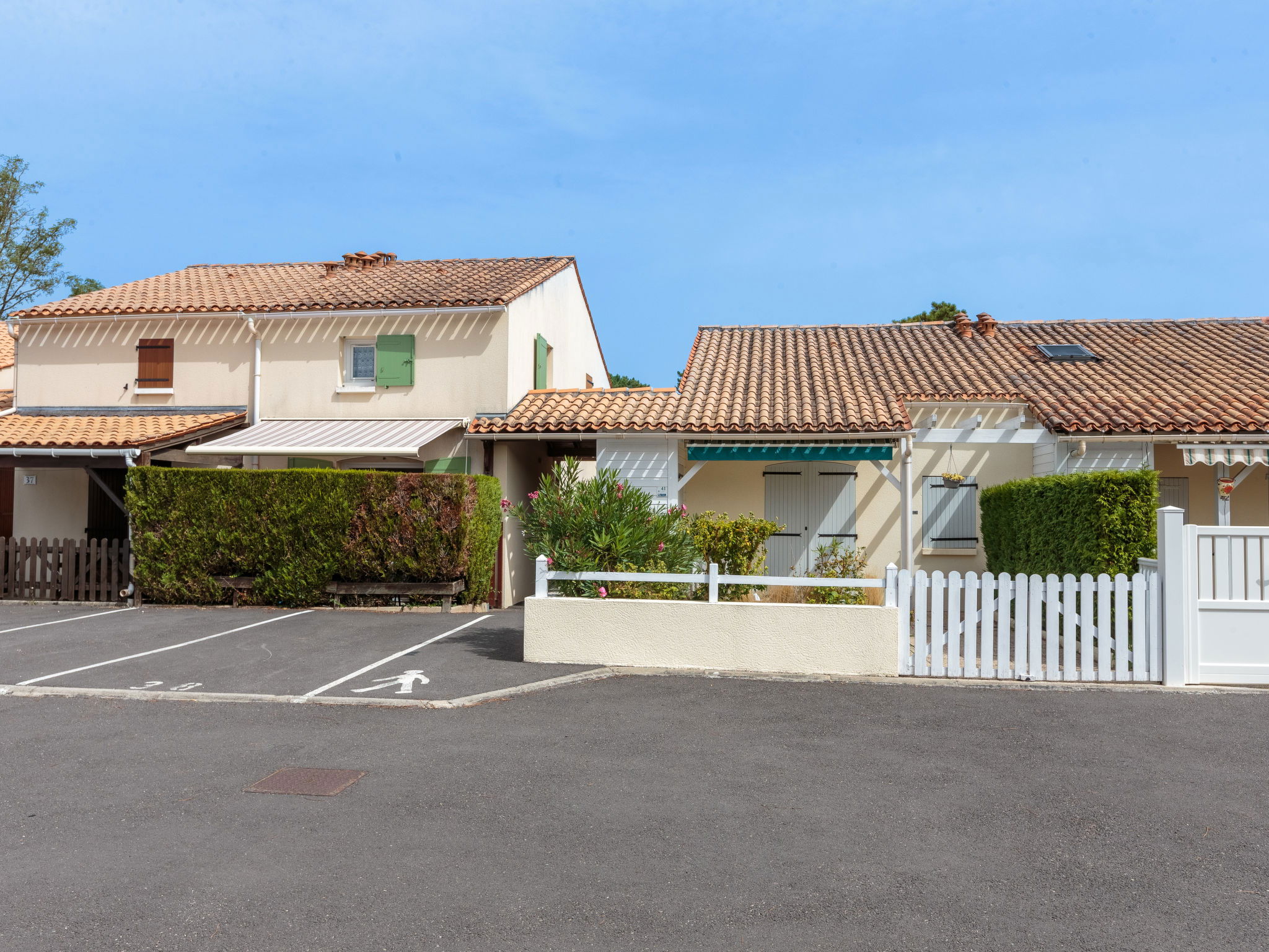 La Palmyre 15 km from Royan: Residence "Les Jardins de la Palmyre". 42 houses in the residence. In the resort 100 m from the centre of La Palmyre, in a central position, 1 km from the sea, 1 km from the beach. Grocery, supermarket, restaurant 200 m, bakery 50 m, bicycle rental 200 m, railway station "Royan" 19 km, sandy beach "La Palmyre" 1.3 km, indoor swimming pool 19 km, thermal baths "Thalassothérapie Thalazur Royan" 16 km. Sports harbour 1.4 km, golf course (9 hole) 2 km, surf school 200 m, tennis 1.2 km, riding stable 1.5 km. Nearby attractions: Zoo de La Palmyre 1.2 km, Hippodrome - La Palmyre 1 km, Luna Park (Juillet-Août) 5 km, Embarcadère Royan - Le Verdon 5 km, Centre aquatique Iléo - Ile d'Oléron 35 km, Fort Boyard - Ile d'Aix 60 km. The keys‘ handover takes place by the agency in La Palmyre, 1 km.