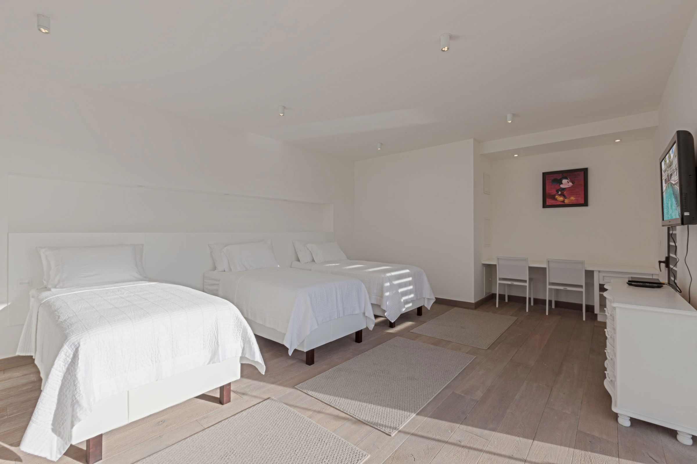The villa is built on two levels, with four of the bedrooms boasting king-size beds. Two of the bedrooms are located on the same level as the kitchen and living area, while the remaining four bedrooms are situated on the same level as the terrace and infinity pool.