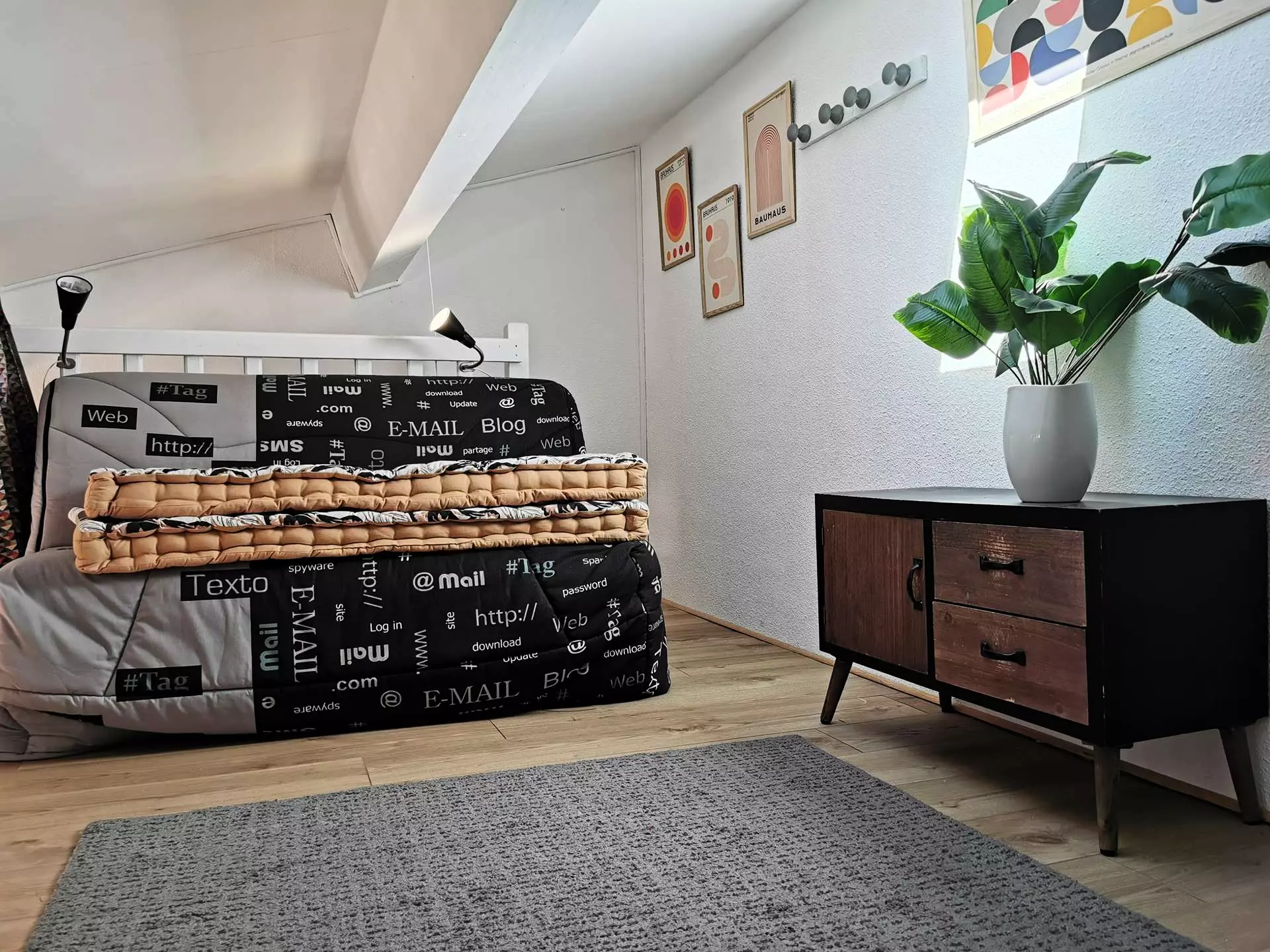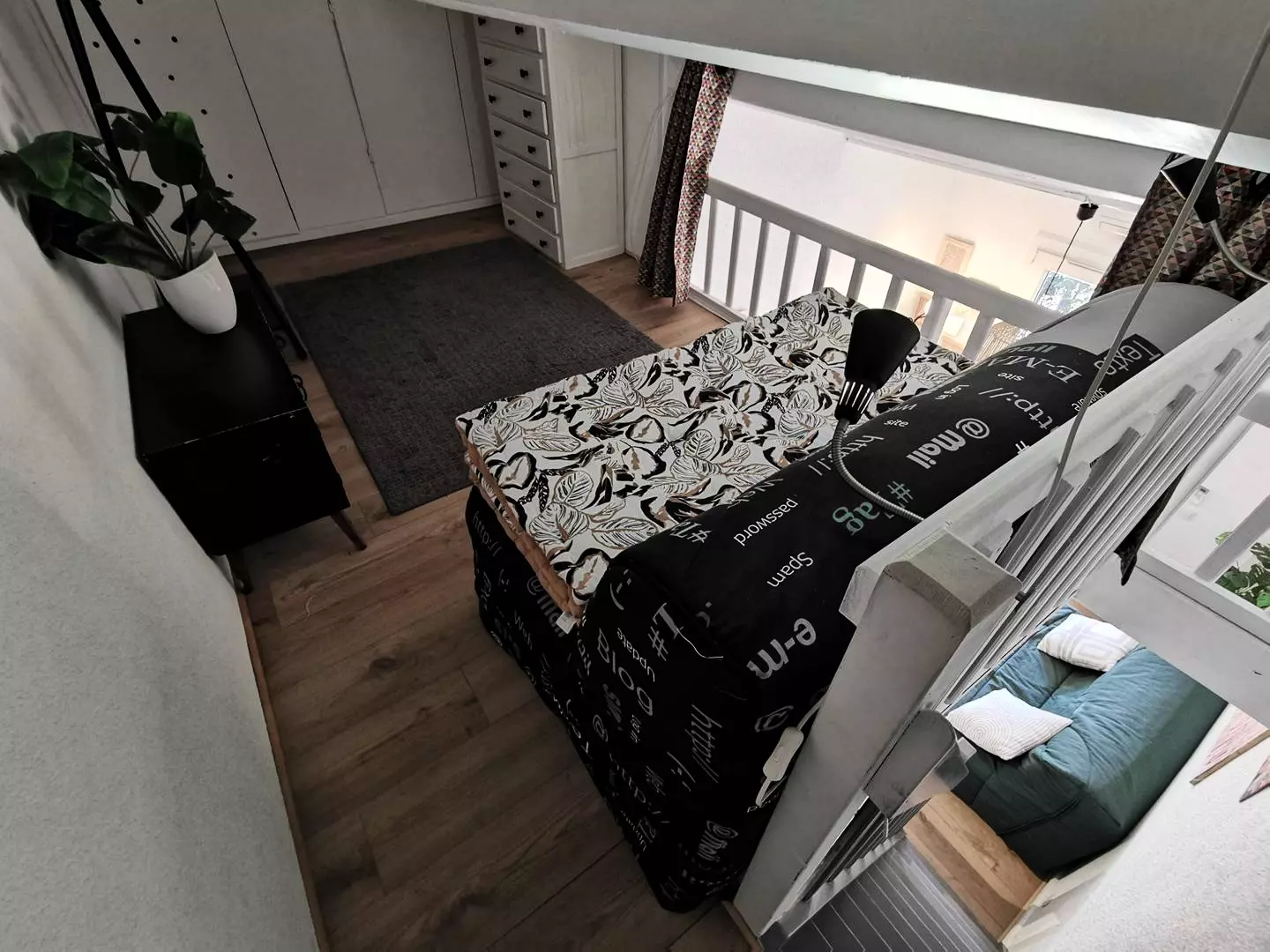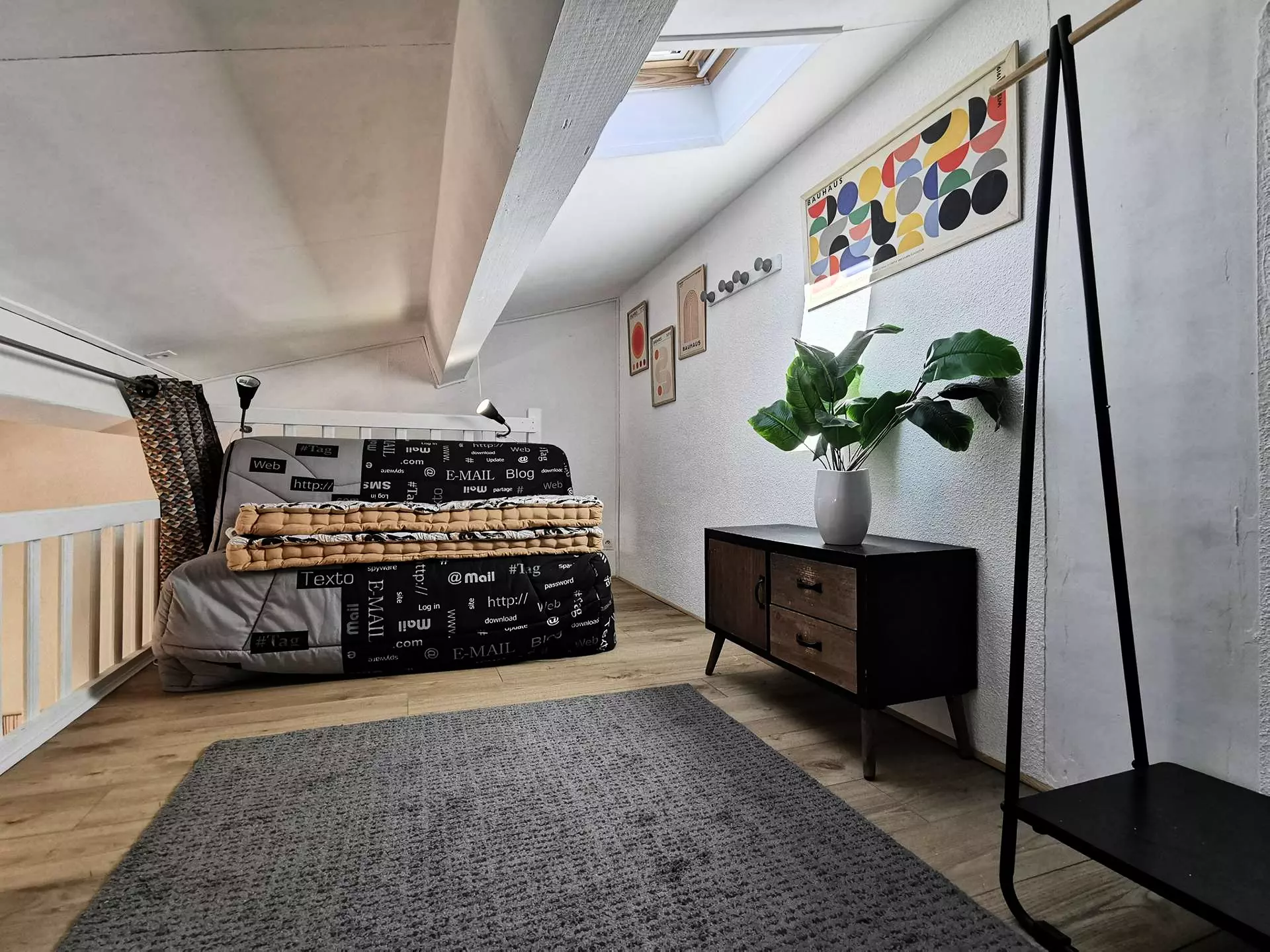 - A low mezzanine with a double sofa bed