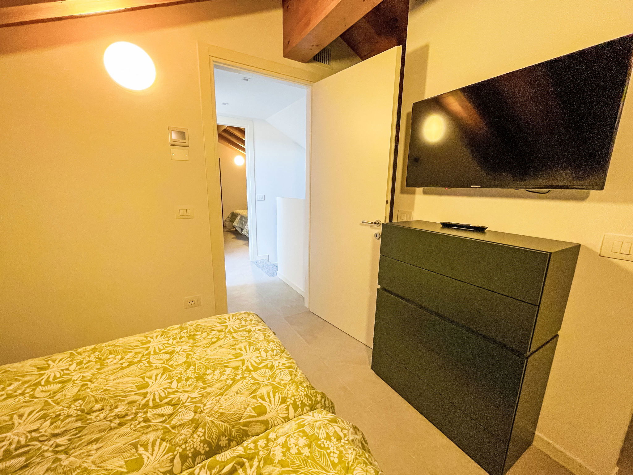 5-room terraced house 120 m2 on 3 levels. Partly renovated in 2024, tasteful and stylish furnishings: living/sleeping room with 2 sofabeds, dining table and satellite TV. Exit to the terrace. Kitchen (dishwasher, Gas stove, 4 gas rings, kettle, microwave, freezer, electric coffee machine). Exit to the terrace. Shower/WC. Upper floor: 2 double bedrooms. Shower/bidet/WC. Top floor: 2 rooms, each room with 2 beds. Shower/bidet/WC. Gas heating, air-conditioning. 3 balconies, terrace roofed, garden. Terrace furniture, barbecue, deck chairs (3). Facilities: washing machine, safe, baby cot for up to 2 year olds (extra). Internet (WiFi, free). Garage on the property (2 cars) at the house. Maximum 1 small pet/ dog allowed. Plus electric coffee machine for espresso ("Lavazza A Modo Mio"). IT030049B4FFJTA24R