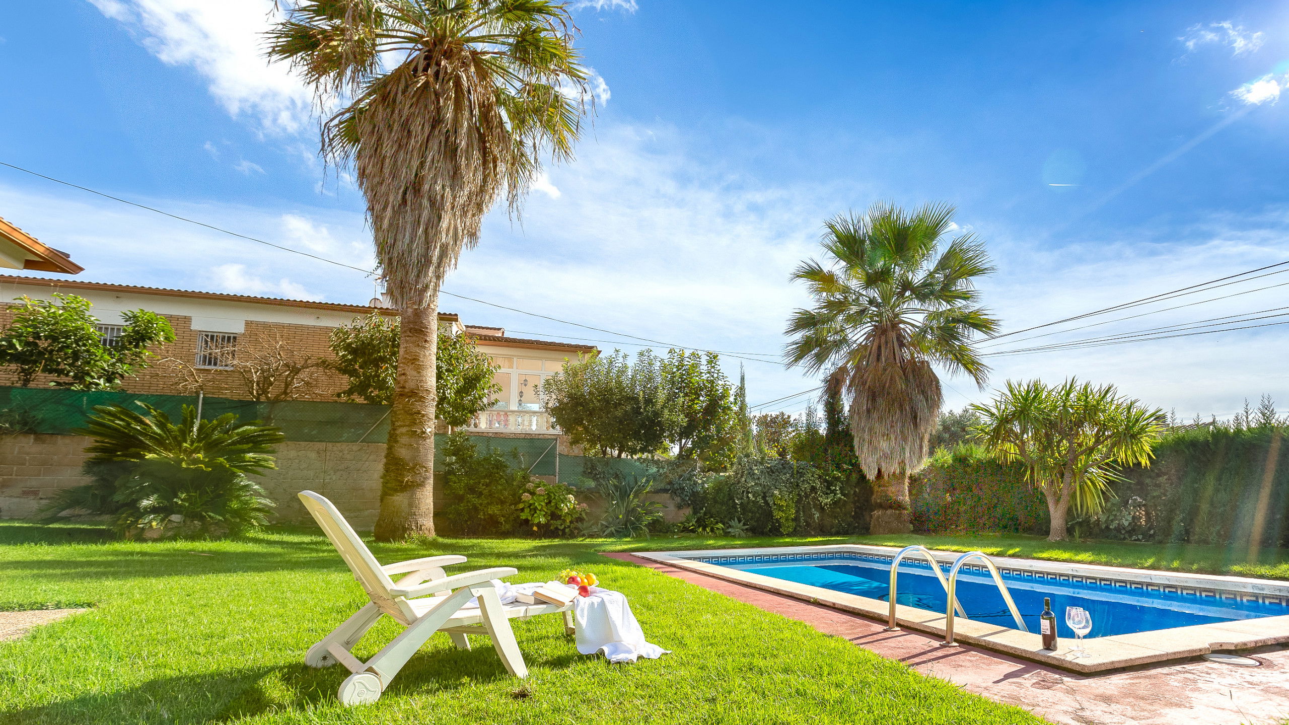Nice outdoor area with garden, private swimming pool (9x4m) and a large and lovely covered terrace where to enjoy nice meals next to the pool. Parking for 2/3 cars.