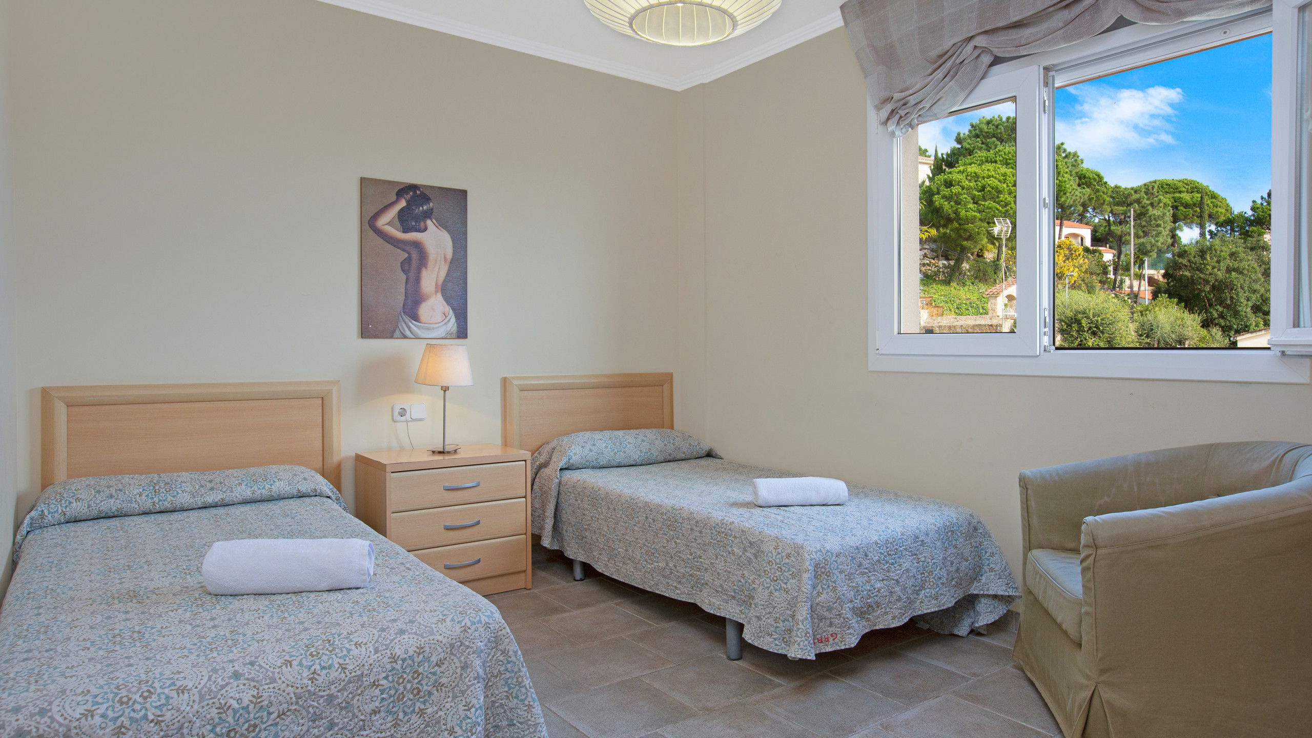 House with private pool and beautiful sea views, situated in a quiet residential area only 5km from the beautiful and quiet beach of Canyelles, 6km from Lloret del Mar town centre and 7km from Tossa del Mar, one of the most charming towns on the Costa Brava. This property is ideal for enjoying family holidays on the Costa Brava! There is an outdoor area of 700m2 with private pool (8x4m) and a barbecue area where you will be able to enjoy breakfasts with magnificent views of the sea. Interior area of 200m2 set over 2 floors: On the ground floor you will find a living room with satellite TV and access to a terrace where you will be able to enjoy wonderful sea and mountain views, open kitchen (microwave, oven, dishwasher, washing machine), 1 single room (90 x 190 bed) and a WC. On the floor above, you will find 1 double bedroom (150 x 190cm bed), 3 bedrooms with 2 single beds in each (90 x 190cm), 1 bathroom with bathtub and 1 bathroom with shower. Optional heating: (100 €/week). Parking 1 car.