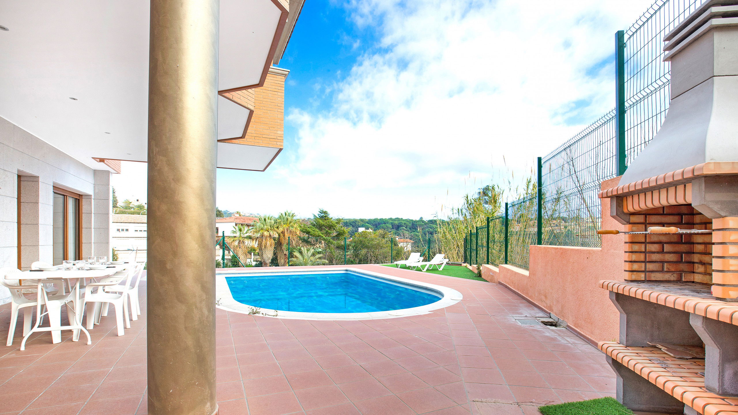 Nice house, located in Lloret de Mar. Only 1.5 km from the beach and the center of town, just 10km from Tossa de Mar, near all services. The 300m2 house is on two separate floors. Upstairs there is a spacious living room (TV, satellite) with fully equipped kitchenette (microwave, dishwasher, washing machine). Two double bedrooms, one with twin beds (90x190cm) and another with double bed (150x190cm) (suite with shower), plus a bathroom with shower. Downstairs there is another living room (TV), kitchen (microwave, dishwasher, washing machine) with dining area and exit to the outside area. A double room with double bed (150x190cm) (suite with shower), plus a bathroom with shower. In the outdoor area there is a private pool with terrace, bathroom and barbecue of work. A/C and heating optional. Extra price for using it 150€/week.